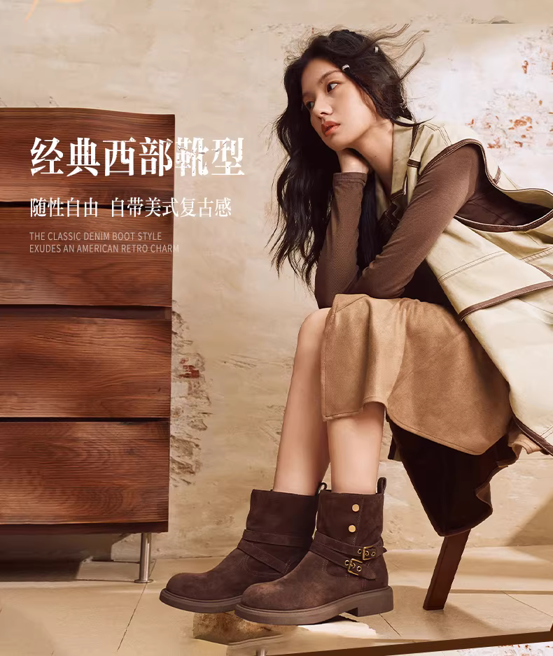 - Giày bốt nữ kiểu Tianmeiyi Barn, phong cách retro, đế dày, kiểu Tây, đế mềm, thời trang, bốt ngắn, kiểu mới mùa đông 2025