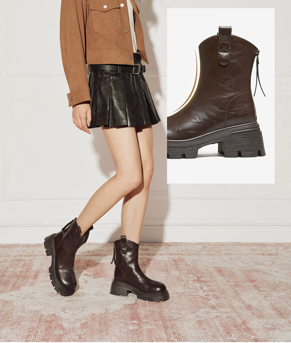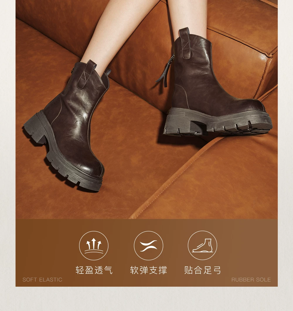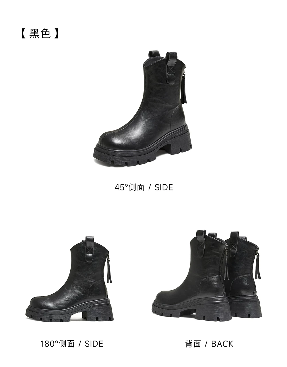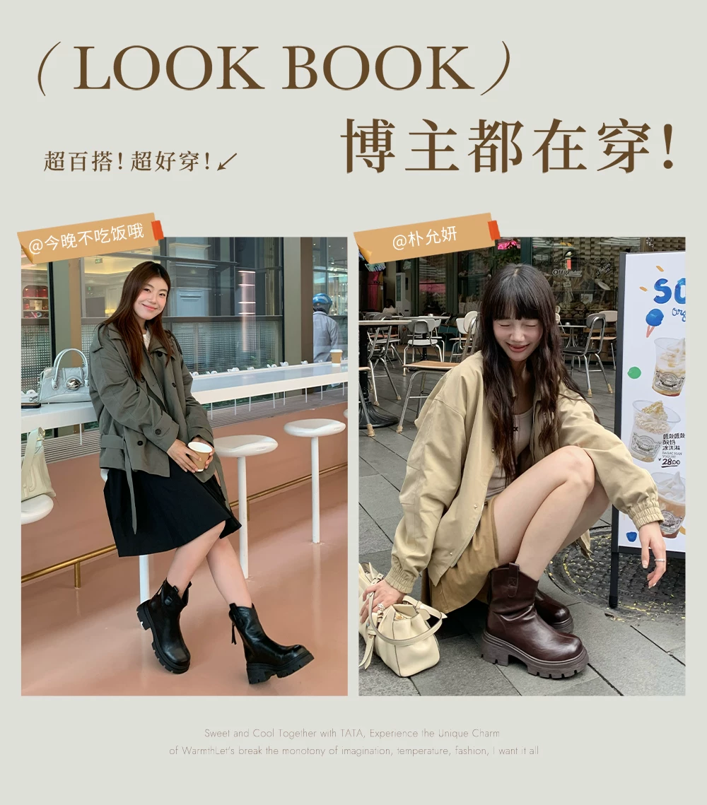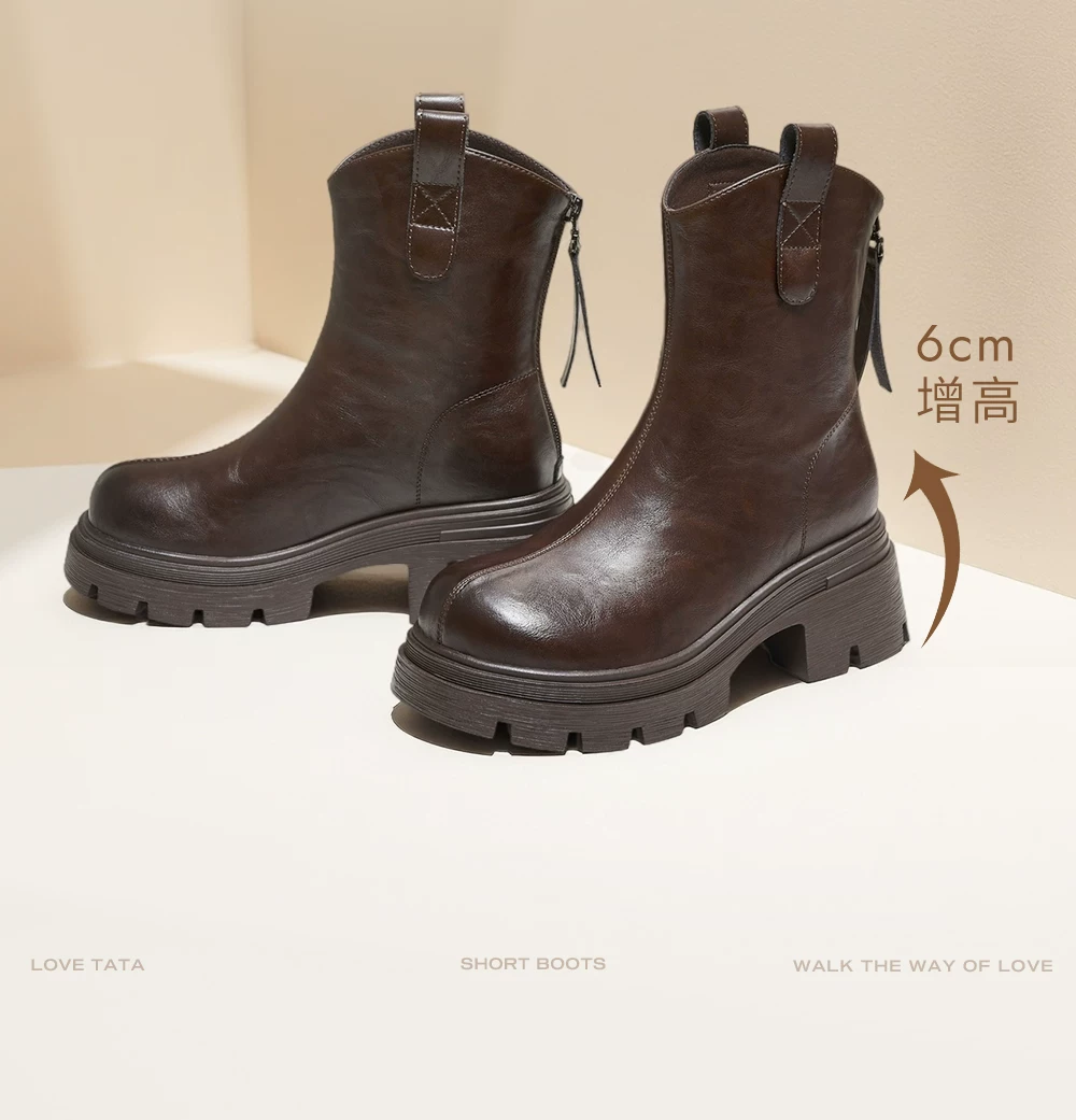 - Giày bốt nữ TATA 2025 Giày bốt co giãn mùa đông có lông cừu Giày bốt thời trang Giày bốt ngắn tăng chiều cao giảm béo CE401DZ5