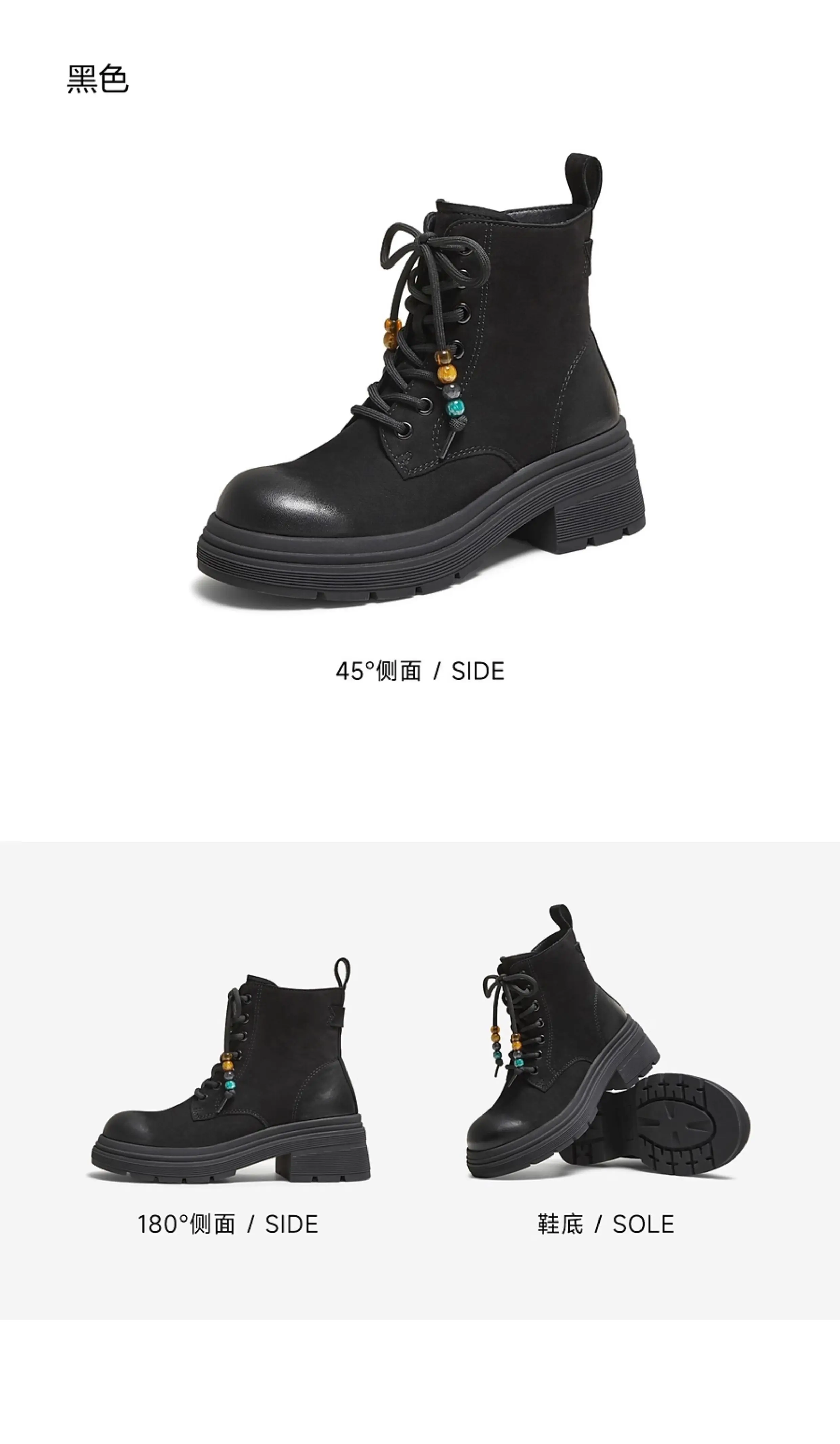 - Giày bốt nữ TATA 2025 Giày bốt da cừu mùa đông Giày bốt đi làm Giày bốt Martin đế dày Giày bốt ngắn mới W3M04DD5