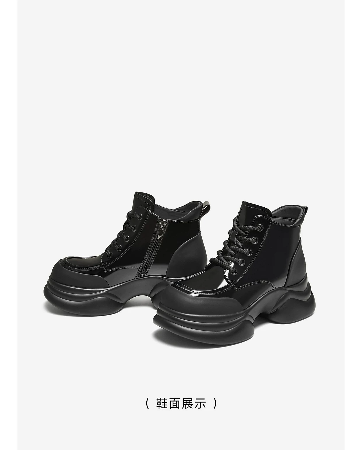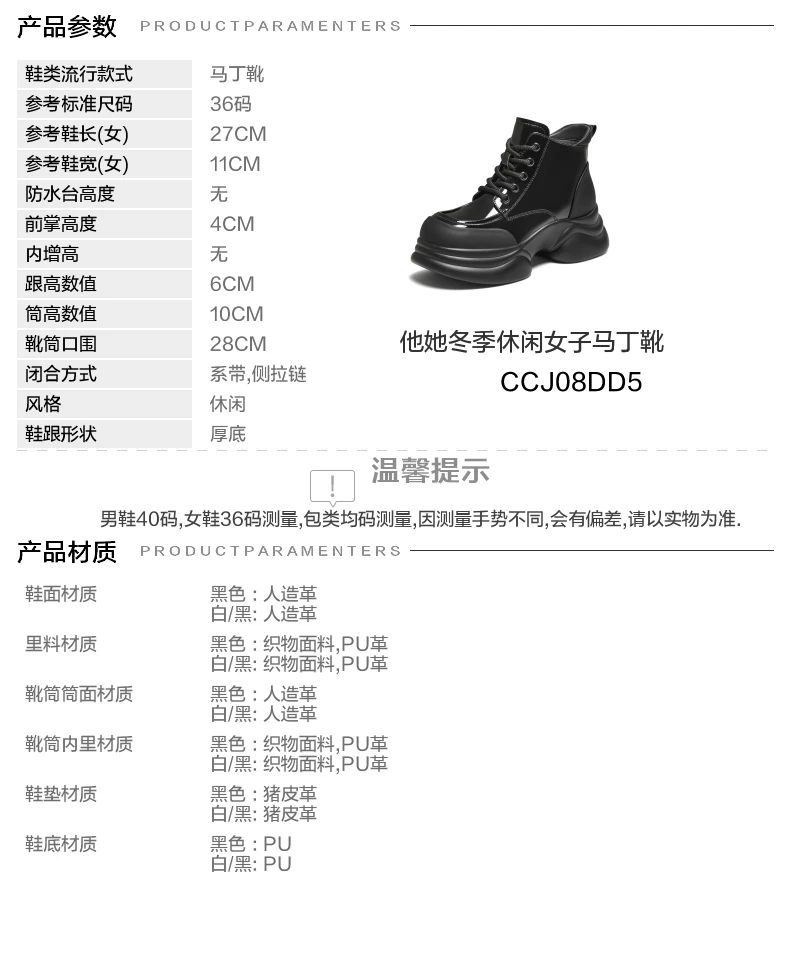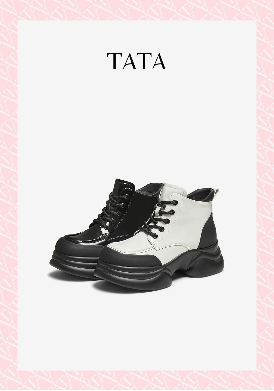 - Giày bốt nữ TATA 2025 Giày bốt Martin đa năng Giày bốt ngắn màu đen mới Giày bốt công sở đế dày CCJ08DD5