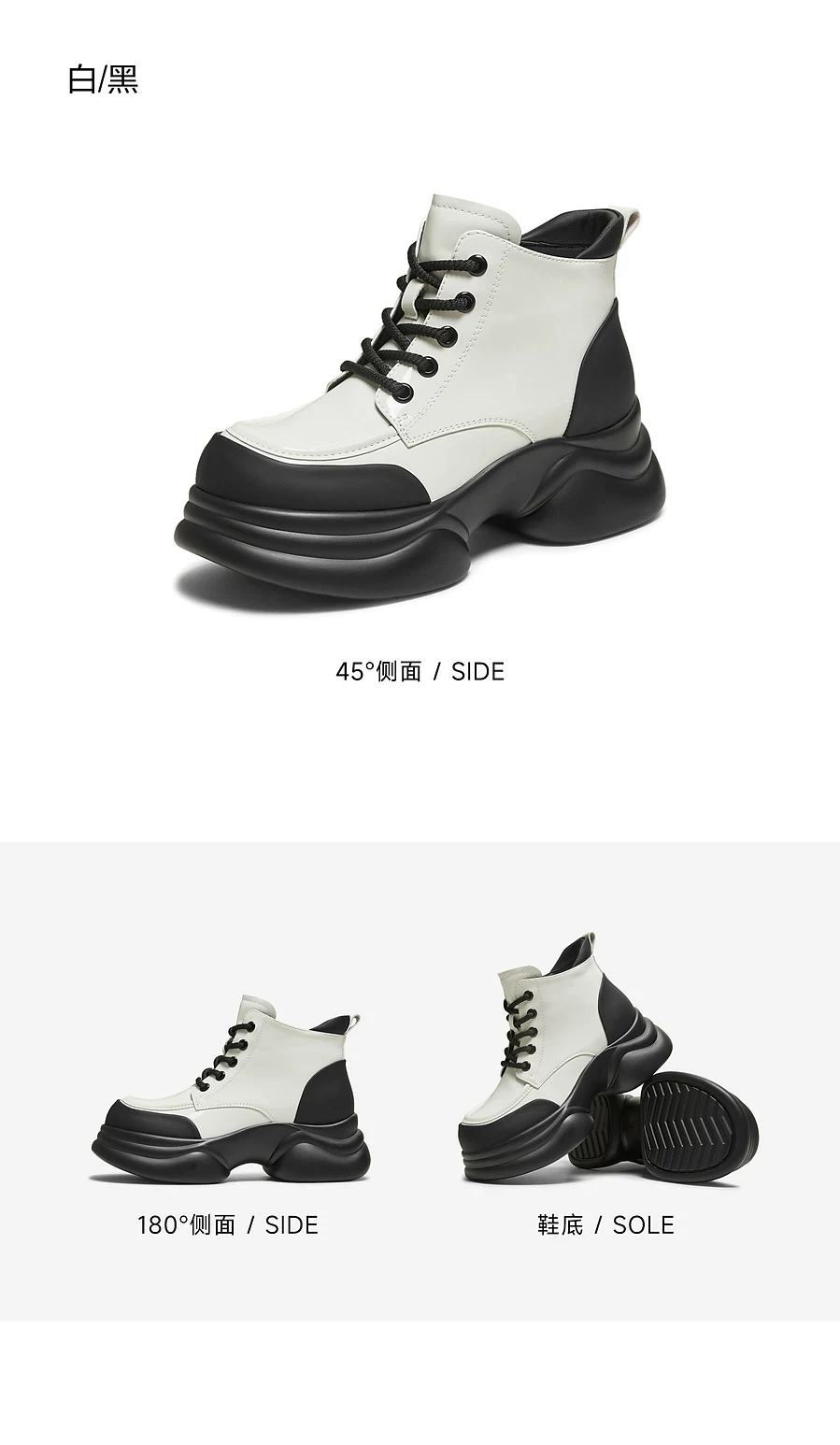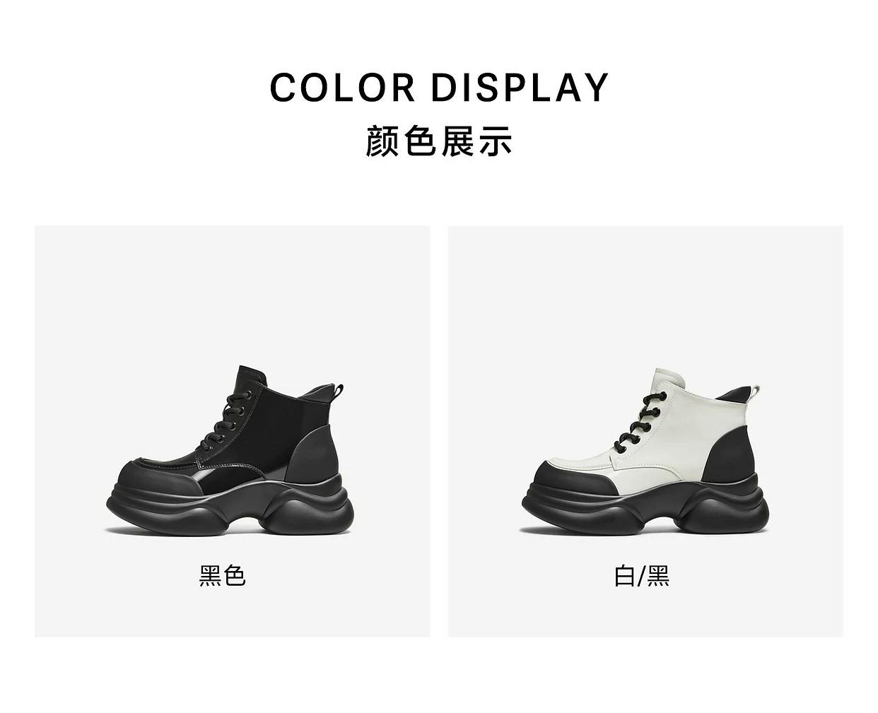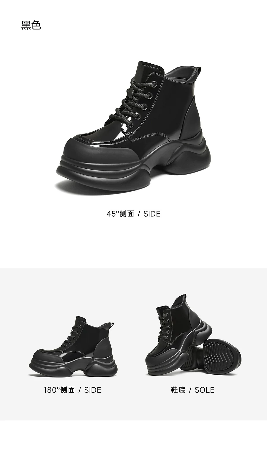 - Giày bốt nữ TATA 2025 Giày bốt Martin đa năng Giày bốt ngắn màu đen mới Giày bốt công sở đế dày CCJ08DD5