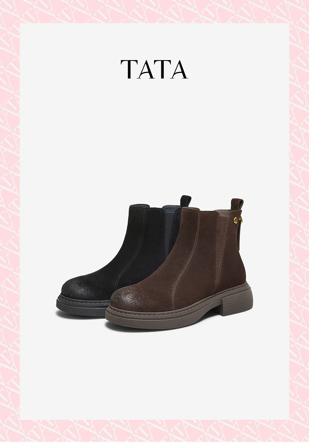 - Giày bốt nữ TATA 2025 Giày bốt ngắn dáng ôm mùa đông Giày bốt Chelsea Giày bốt thời trang giảm béo CHZ01DD5