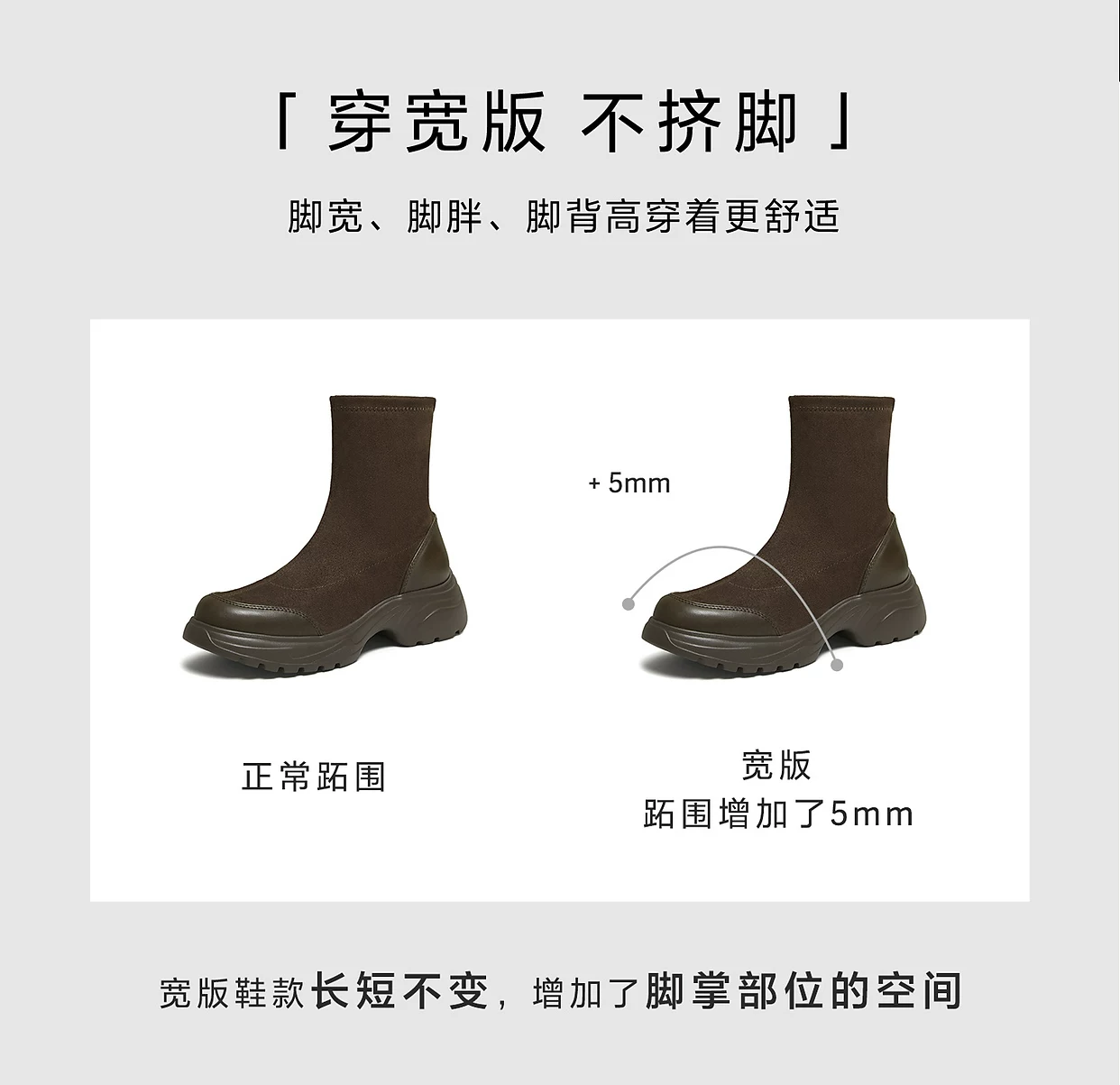 - Giày bốt nữ TATA 2025 Giày bốt tất đen Giày bốt cổ ngắn đế dày Giày bốt thon gọn Giày bốt tăng chiều cao Giày bốt co giãn 7PJ60DZ5
