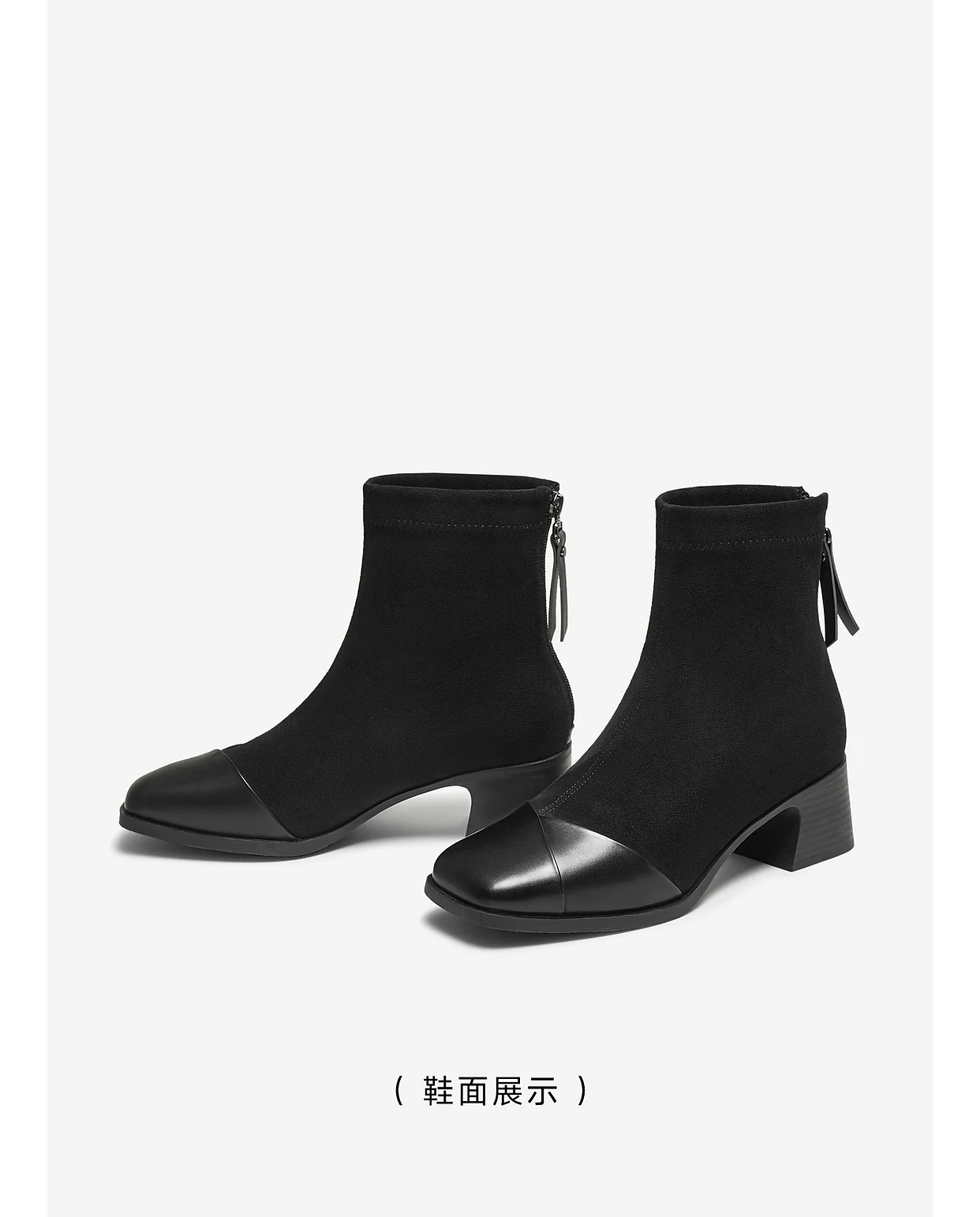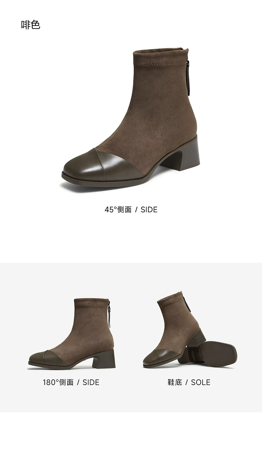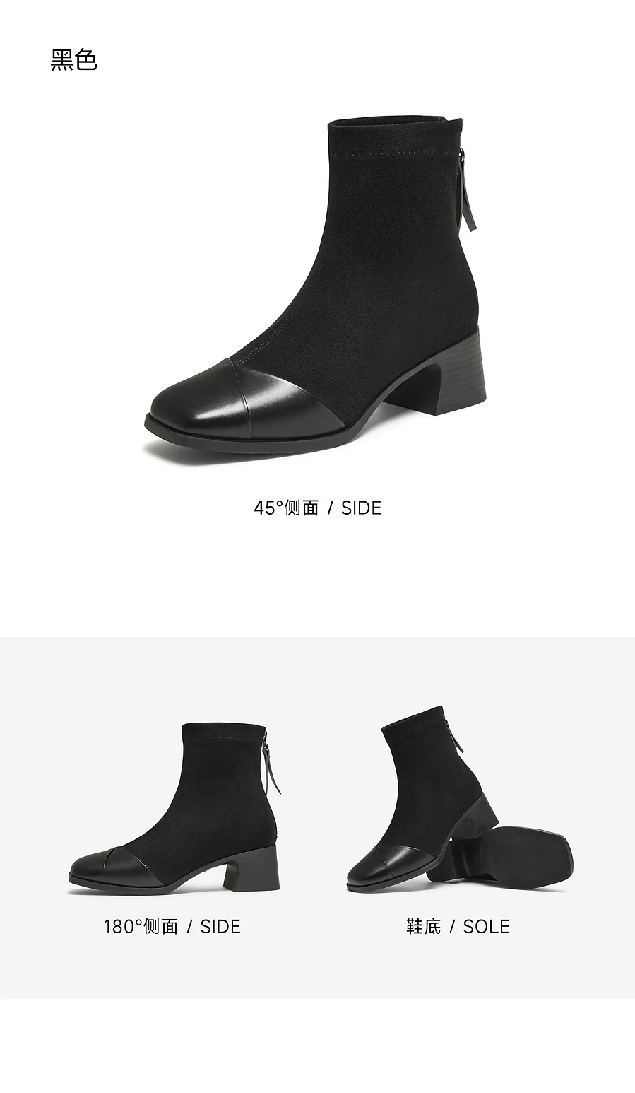 - Giày Bốt Nữ TATA 2025 Giày Bốt Thời Trang Mới Đa Năng Giảm Béo Giày Bốt Ngắn Gót Chunky CE501DD5