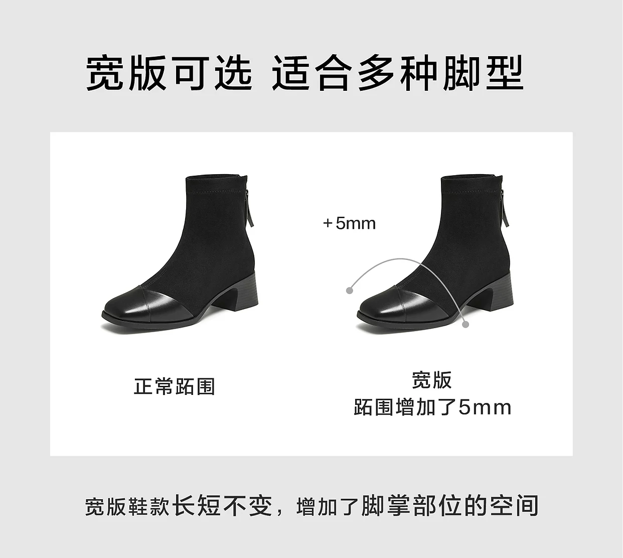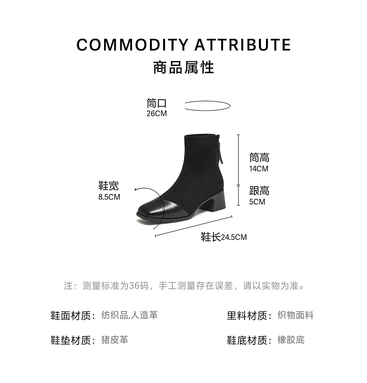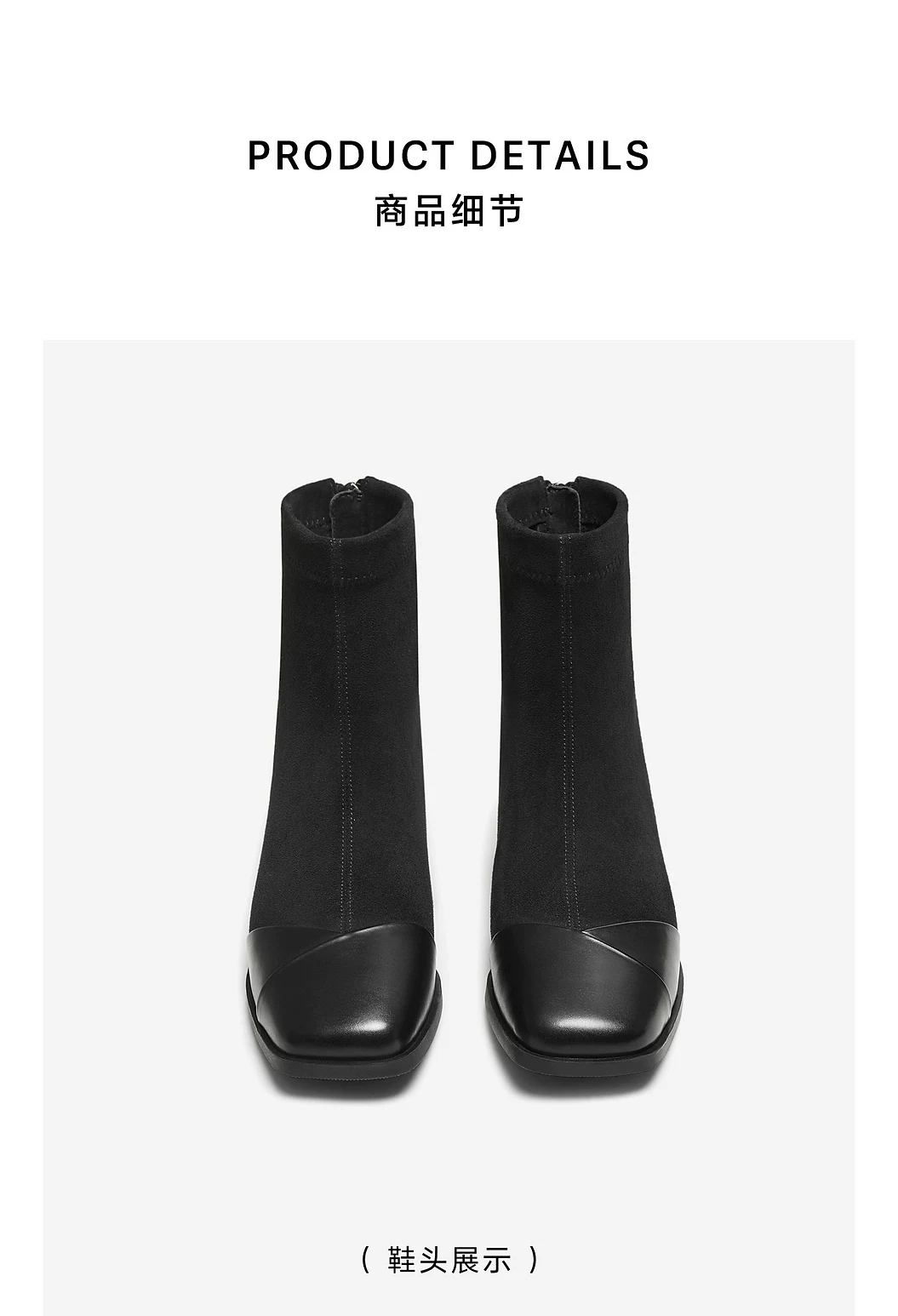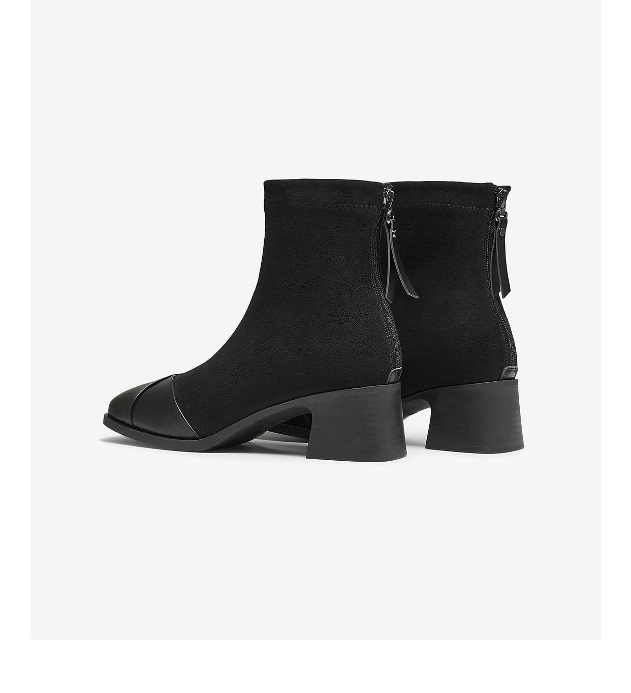 - Giày Bốt Nữ TATA 2025 Giày Bốt Thời Trang Mới Đa Năng Giảm Béo Giày Bốt Ngắn Gót Chunky CE501DD5