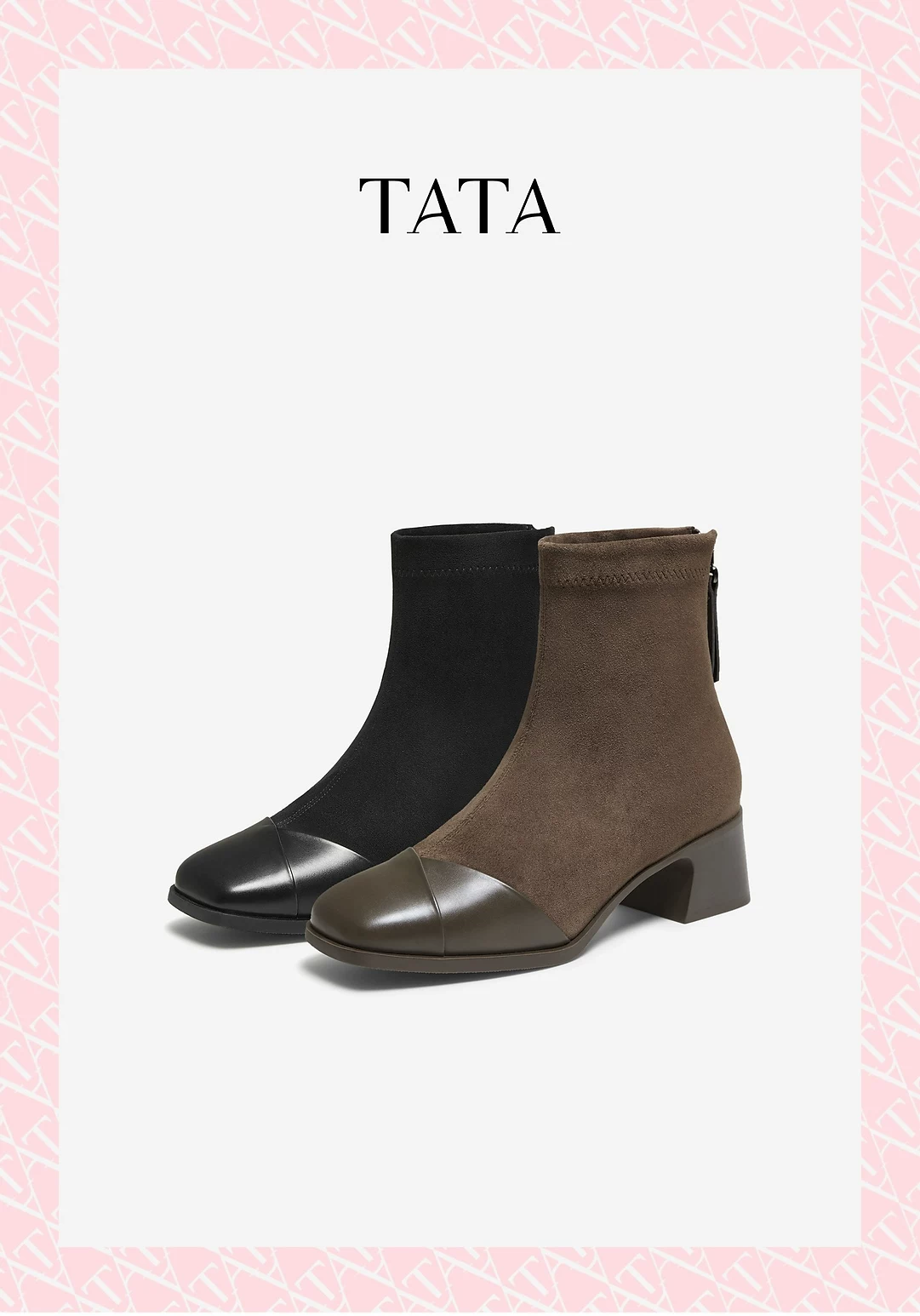Giày Bốt Nữ TATA 2025 Giày Bốt Thời Trang Mới Đa Năng Giảm Béo Giày Bốt Ngắn Gót Chunky CE501DD5