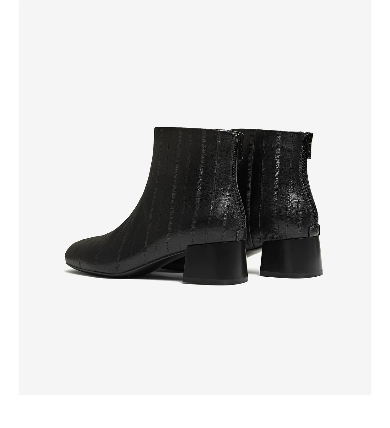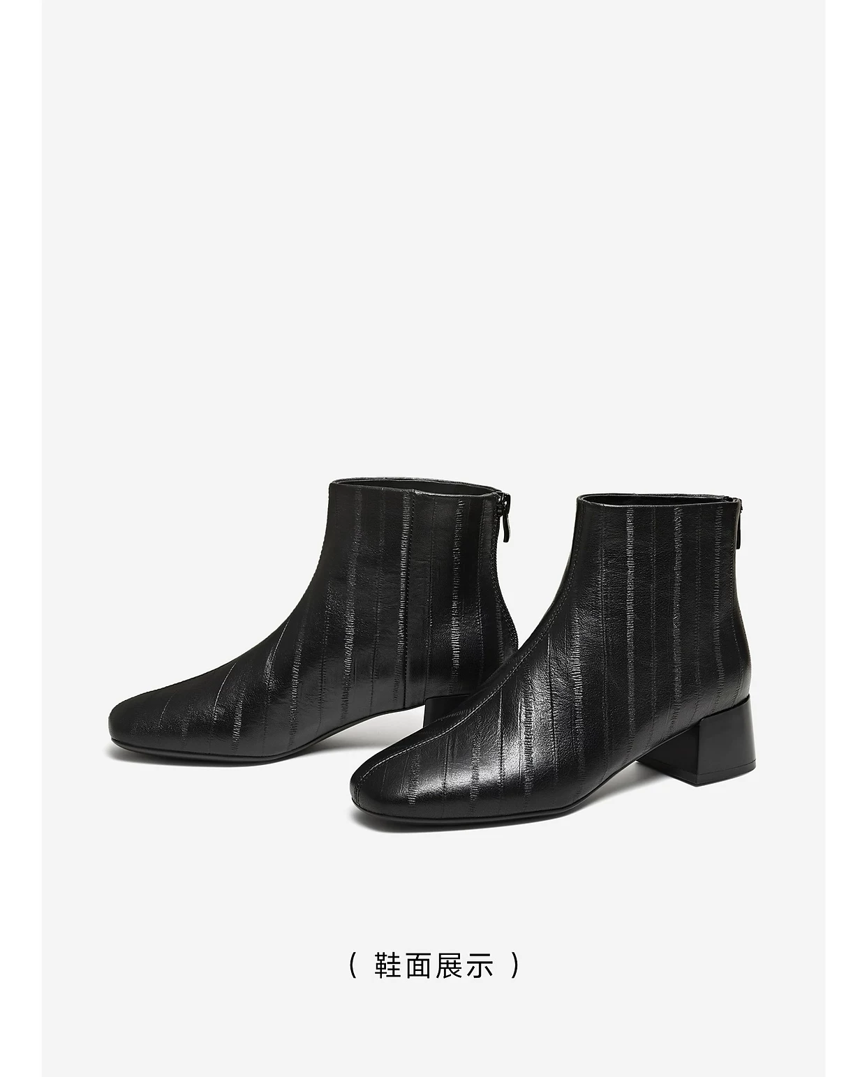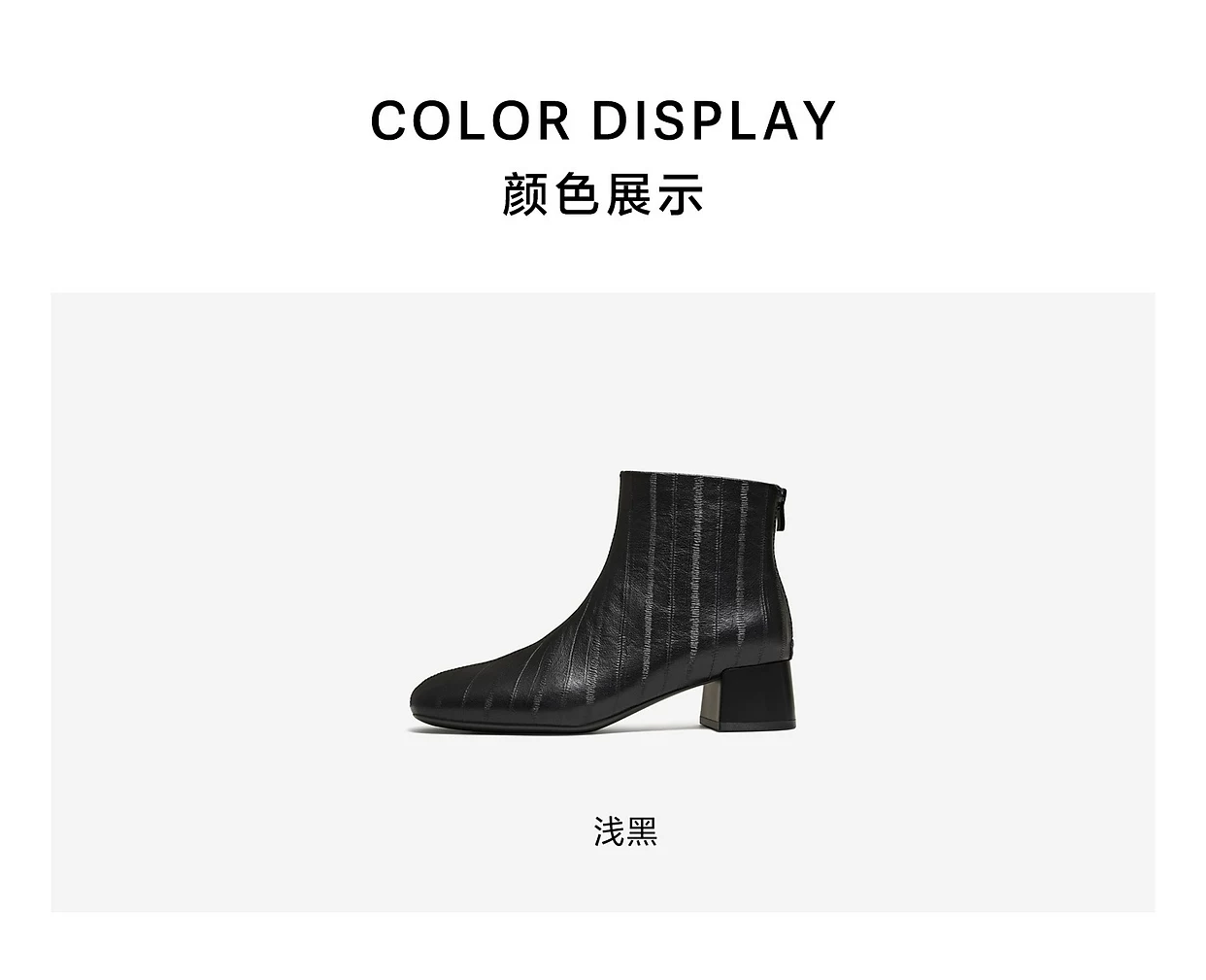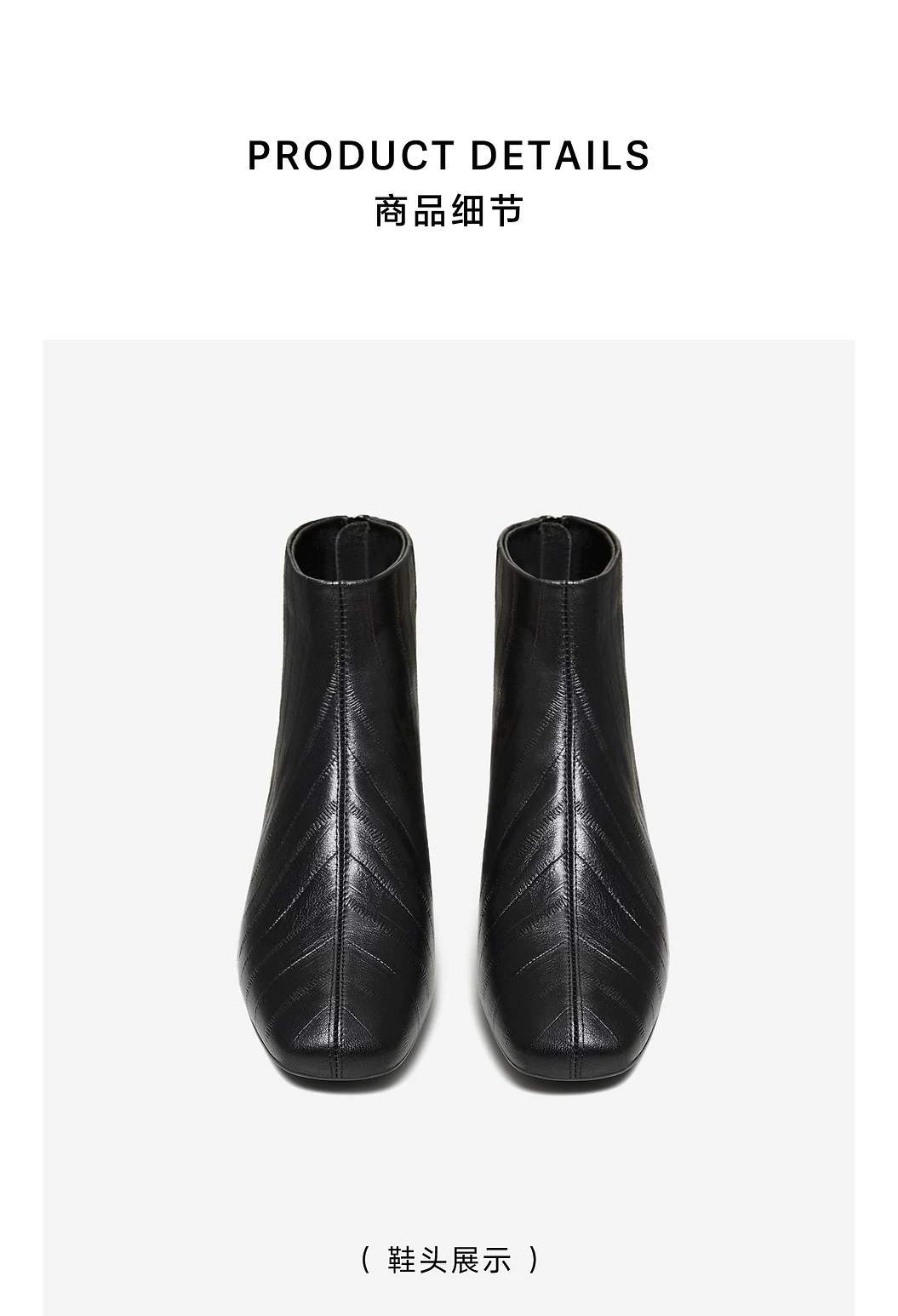 - Giày bốt nữ TATA 2025 Giày bốt thời trang mới mùa đông Giày bốt da đen gót nhọn 7ACF4DD5
