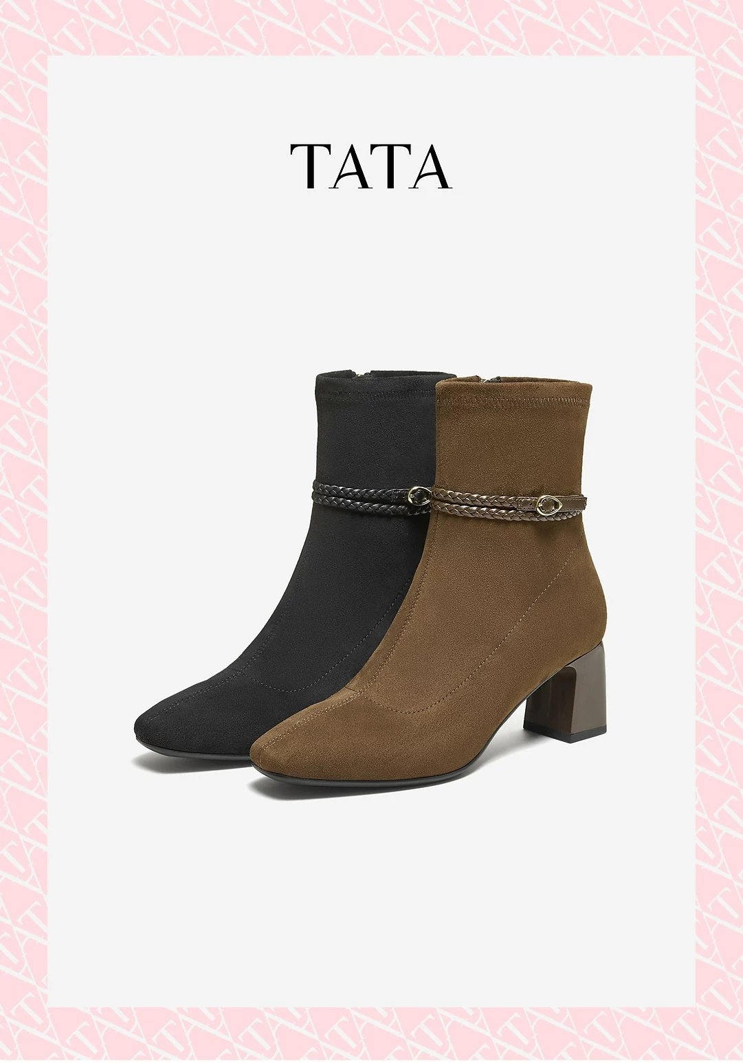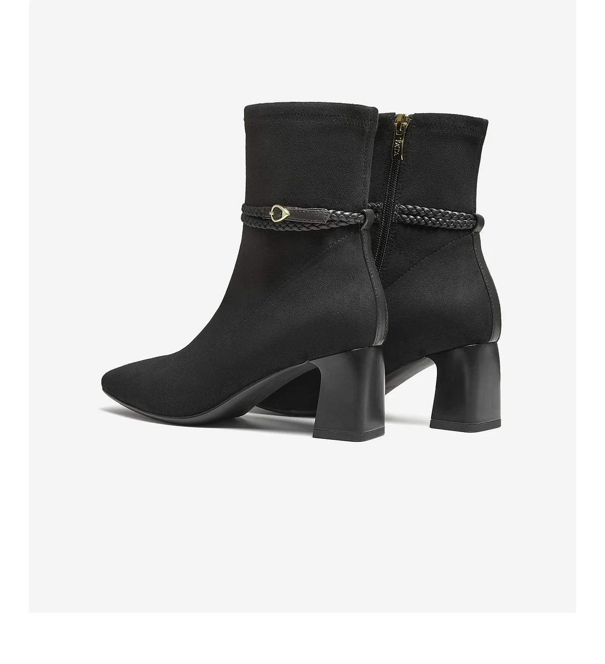 - Giày Bốt Nữ TATA 2025 Giày Bốt Thời Trang Mùa Đông Màu Đen Giày Bốt Cổ Ngắn Tăng Chiều Cao Giày Bốt Gót Chunky Giày Bốt Mỏng XWY01DZ5
