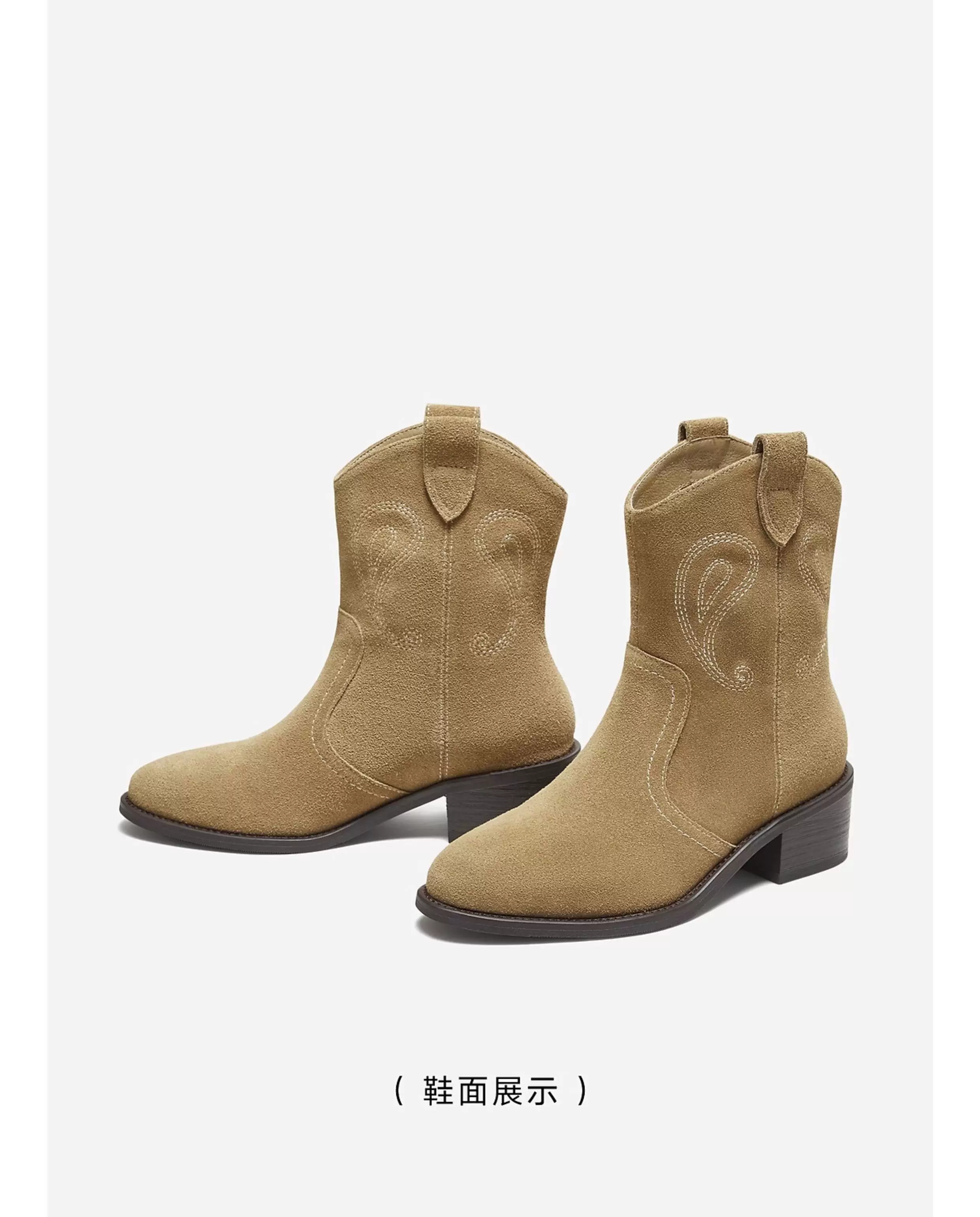 - Giày Bốt Nữ TATA 2025 Mùa Đông Retro Giày Bốt Phương Tây Đế Dày Giày Bốt Thời Trang Chunky Gót Giày Bốt Ngắn UVW01DZ5
