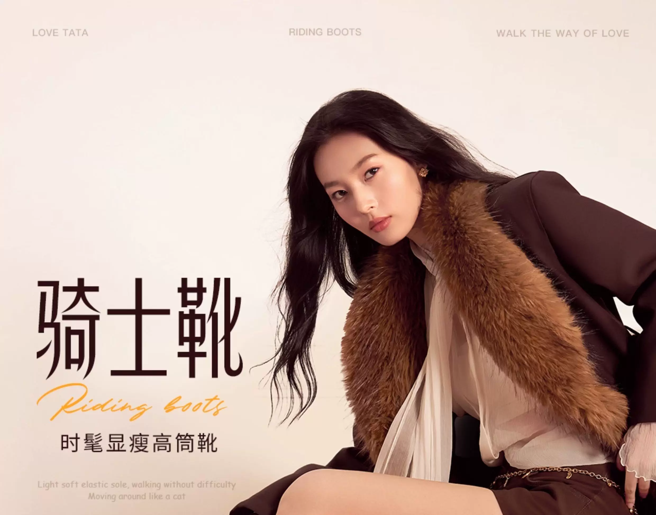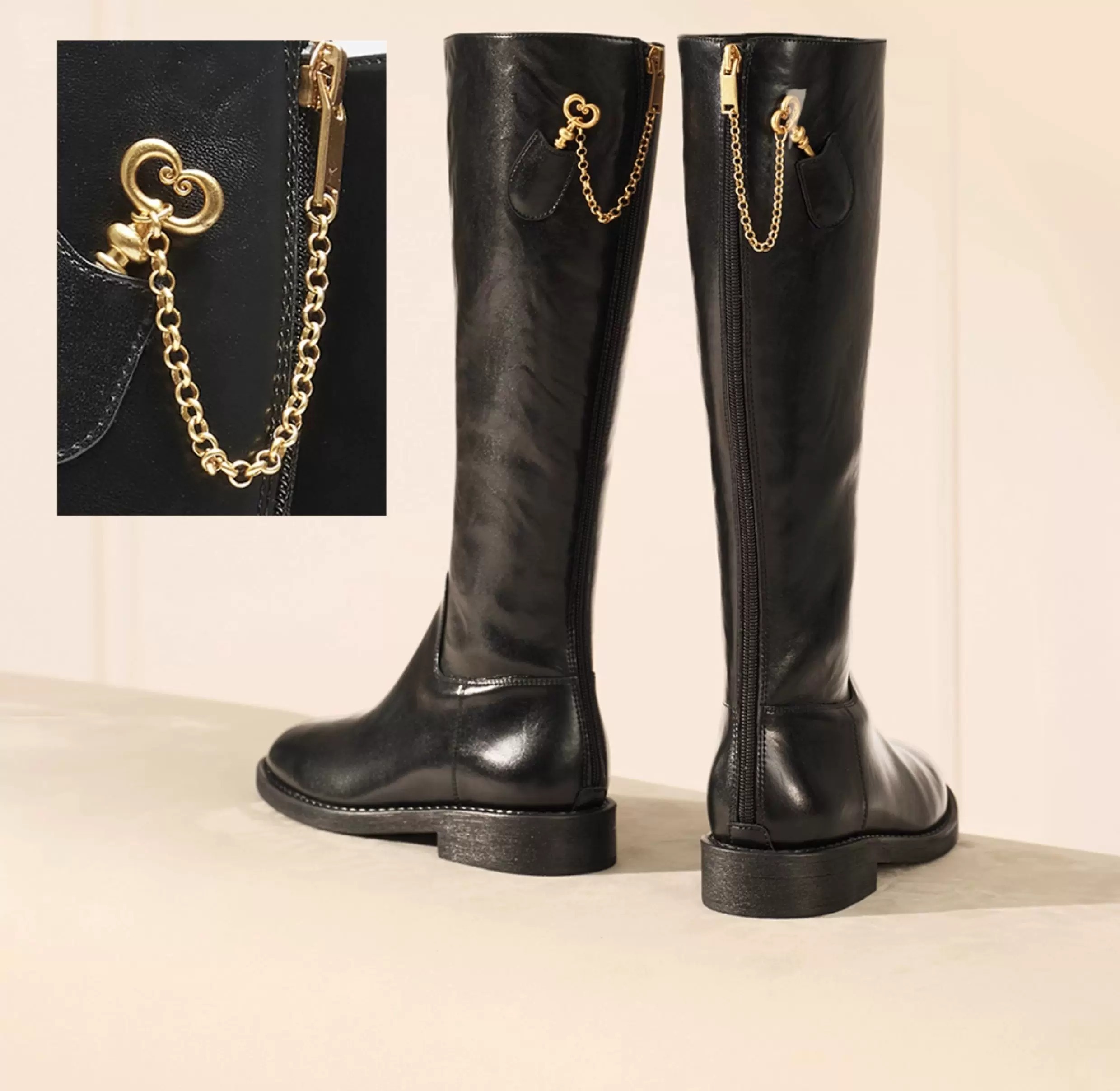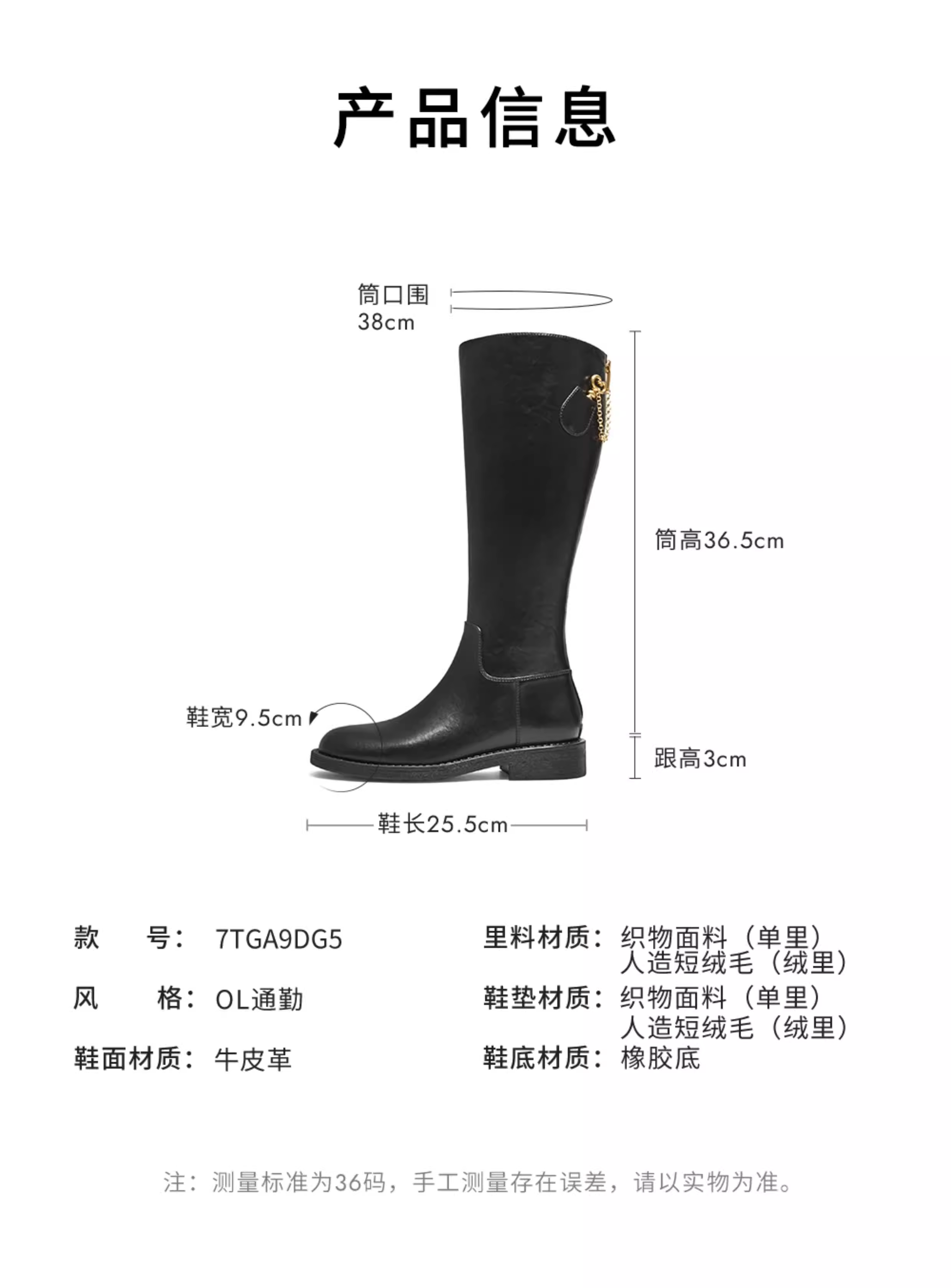 - Giày bốt nữ TATA Da bò có lông cừu Giày bốt thời trang Giày bốt cưỡi ngựa 2025 Giày cao cổ mới Giày bốt dài 7TGA9DG5