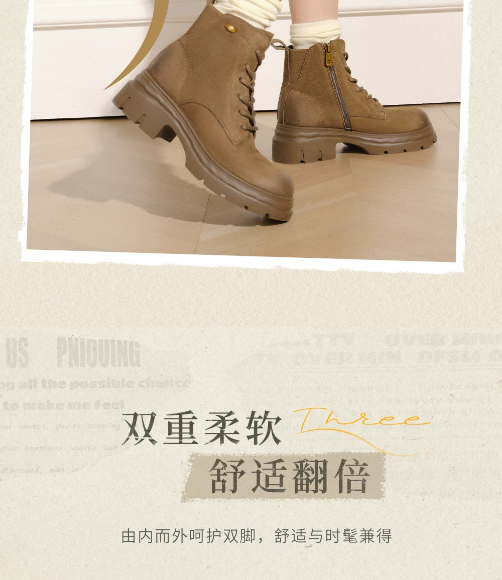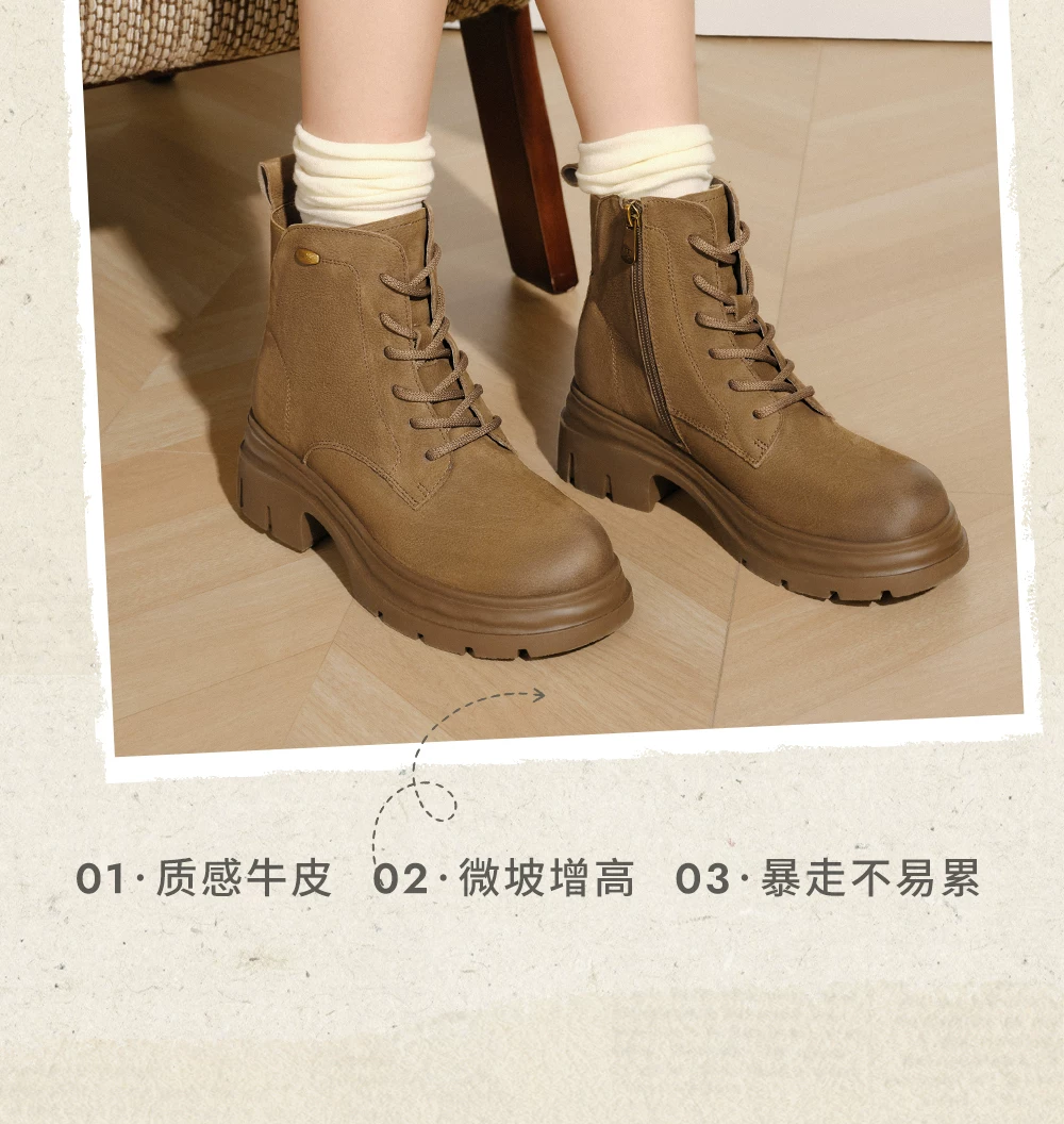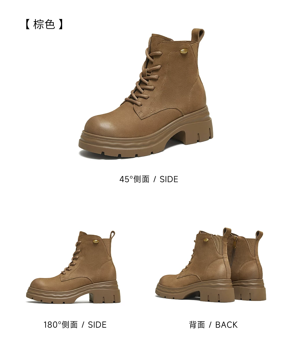 - Giày bốt nữ TATA Giày bốt da mùa đông Giày bốt Martin đa năng Giày bốt công sở lót lông cừu Giày bốt đế dày ngắn CHK01DD5