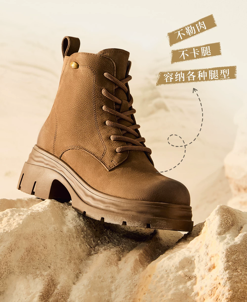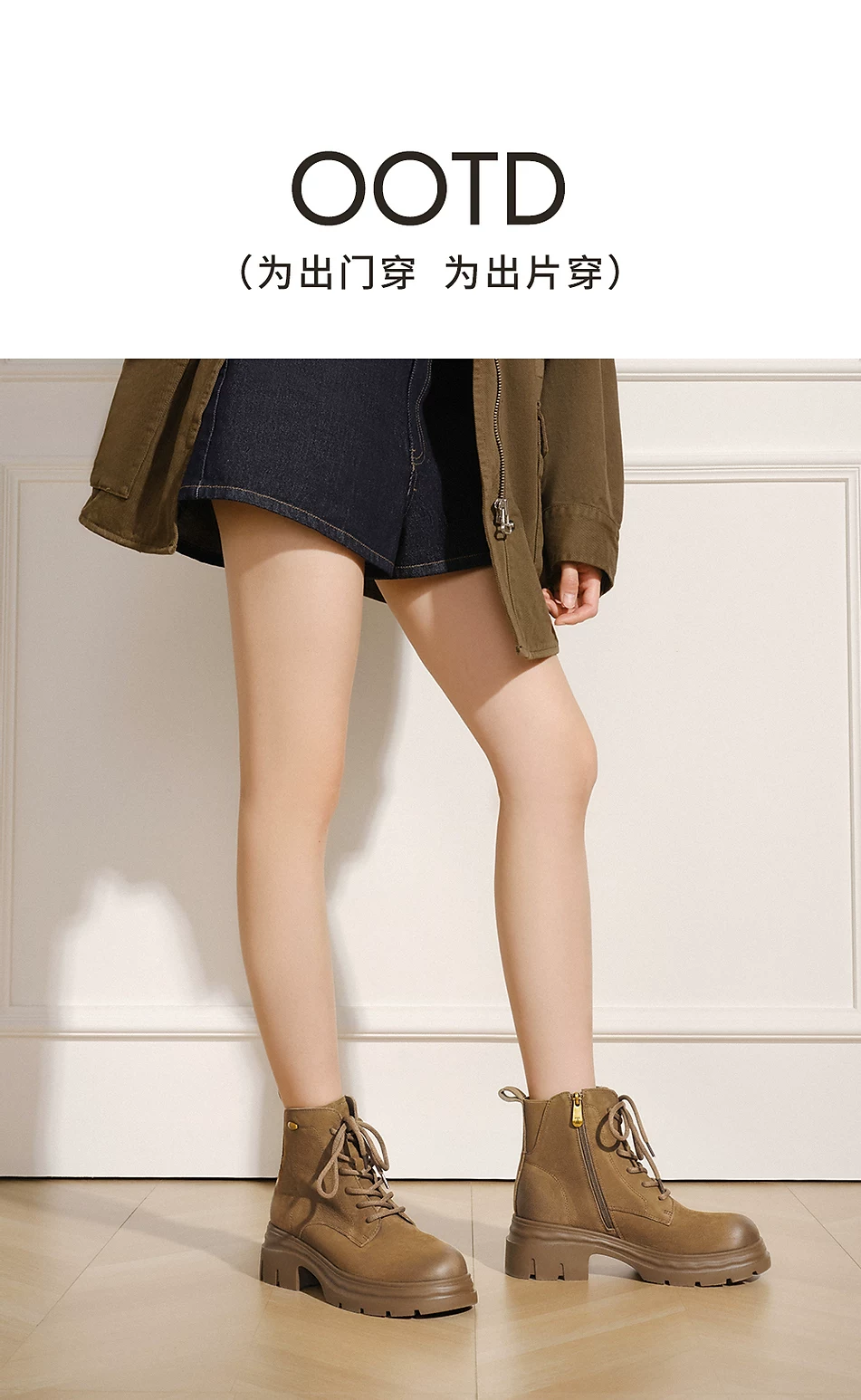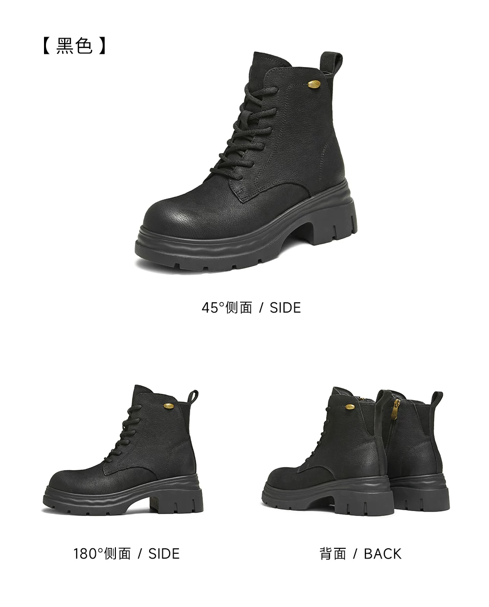 - Giày bốt nữ TATA Giày bốt da mùa đông Giày bốt Martin đa năng Giày bốt công sở lót lông cừu Giày bốt đế dày ngắn CHK01DD5