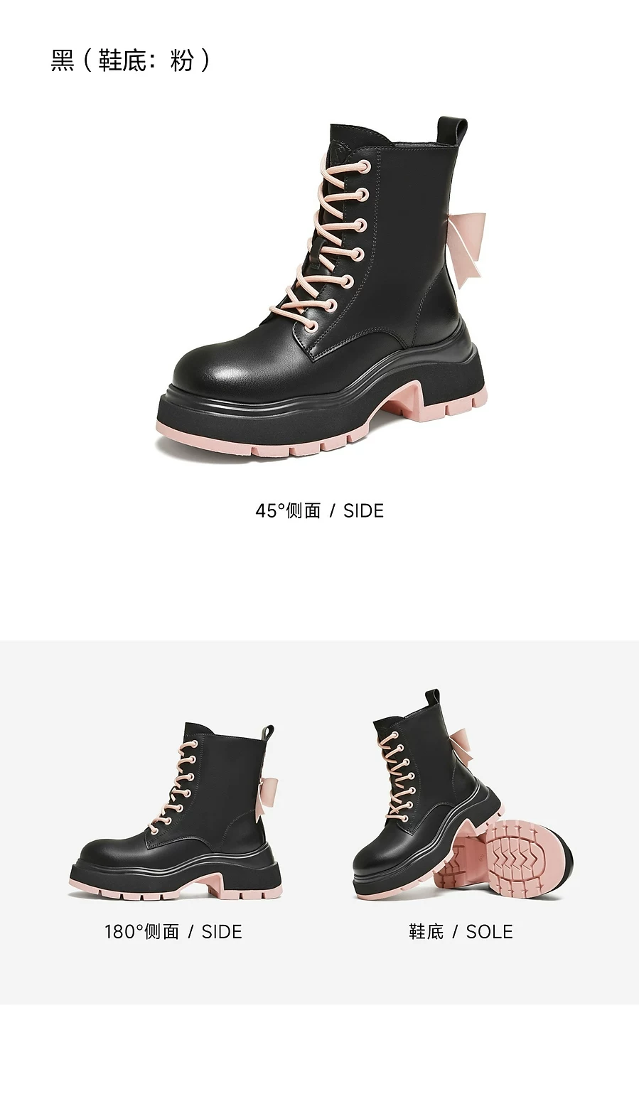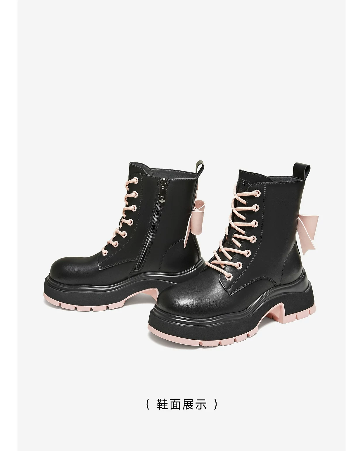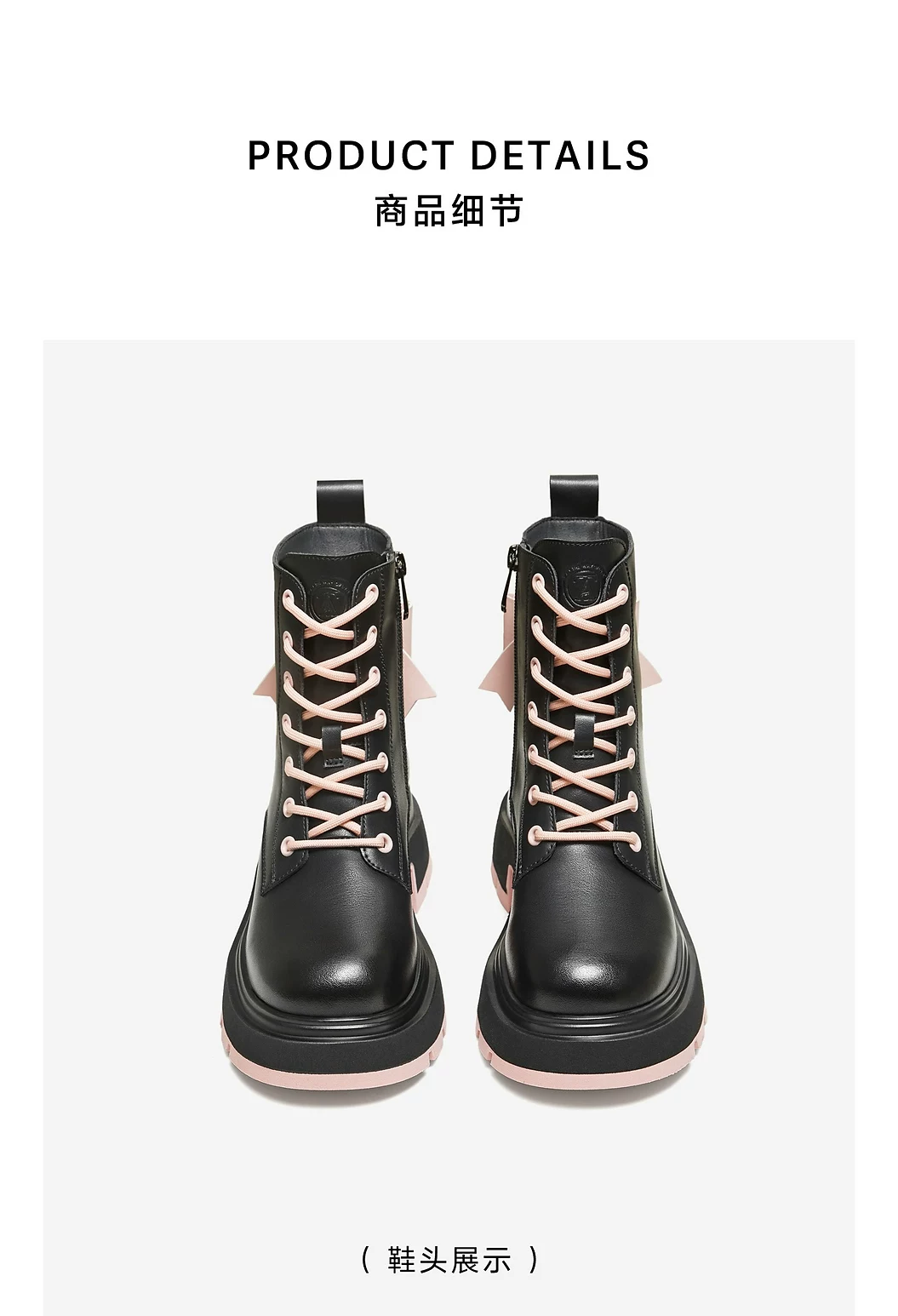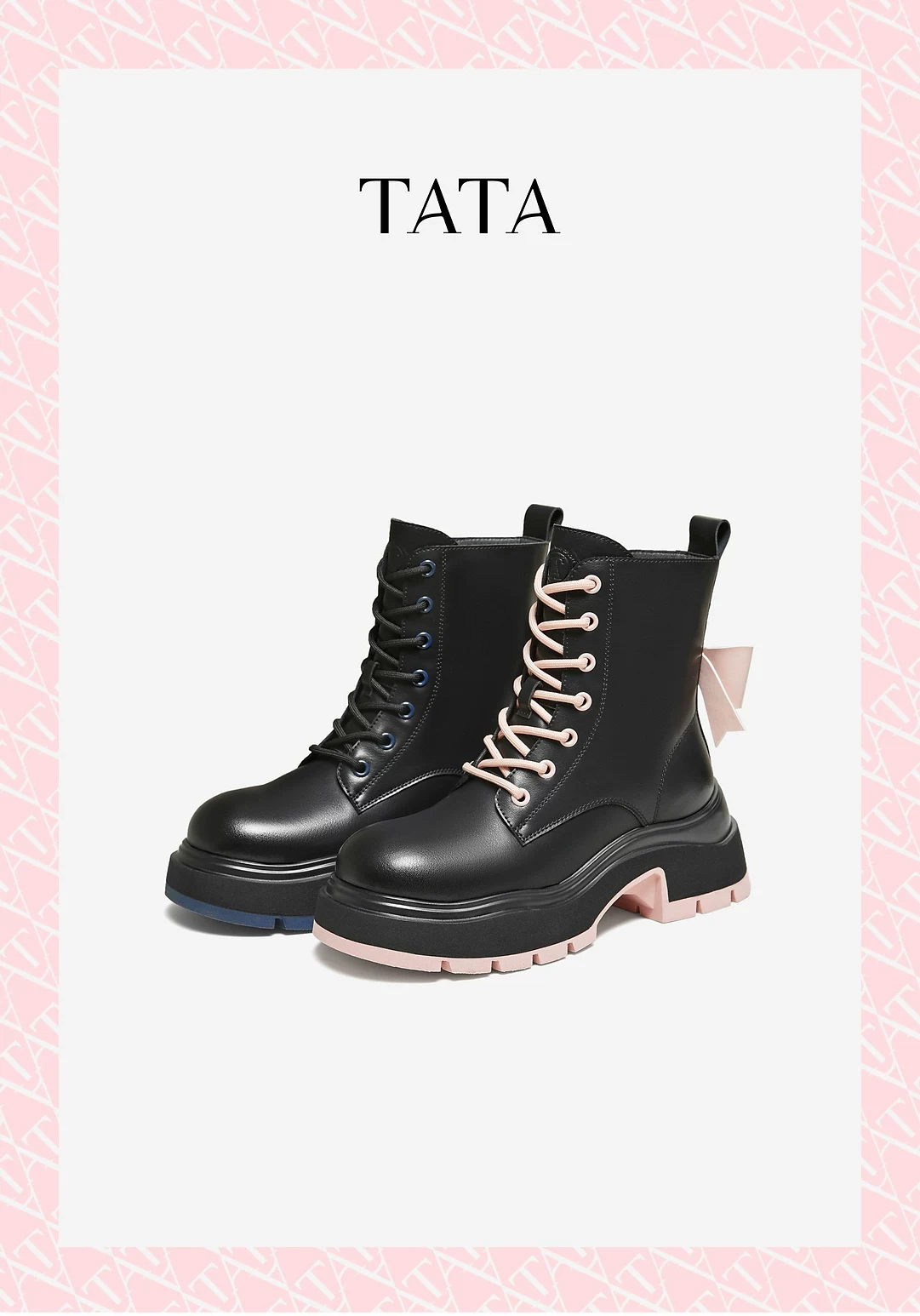 - Giày bốt nữ TATA Martin mùa đông 2025 đa năng thời trang đơn giản, kiểu dáng mới tăng chiều cao, bốt ngắn WJZ07DD5
