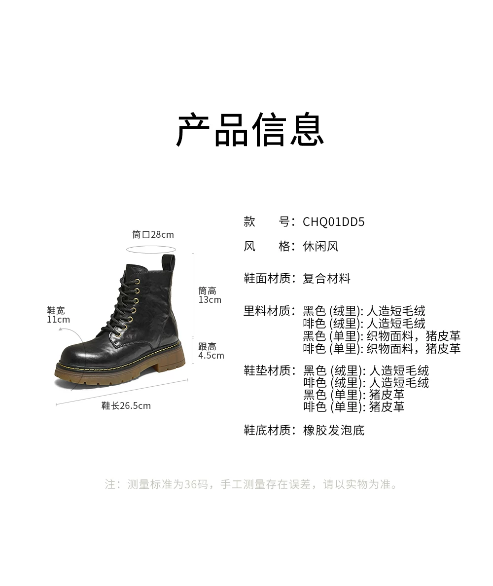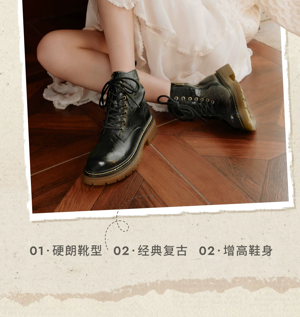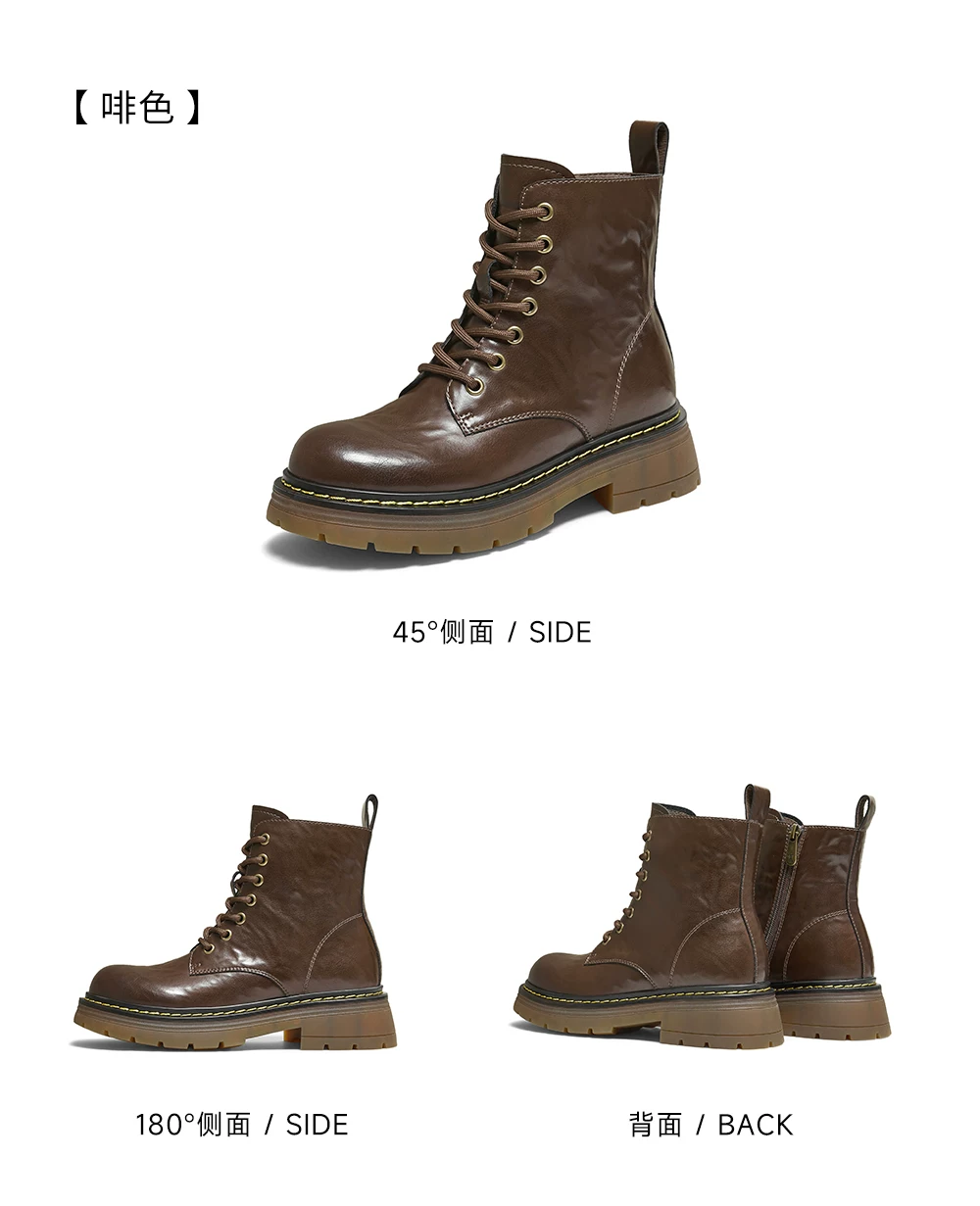- Giày Bốt Nữ TATA Retro Martin Boots 2025 Phong Cách Anh Quốc Da Thật Chính Hãng Da Lót Lông Cừu Giày Bốt Ngắn Giày Bốt Công Sở CHQ01DD5