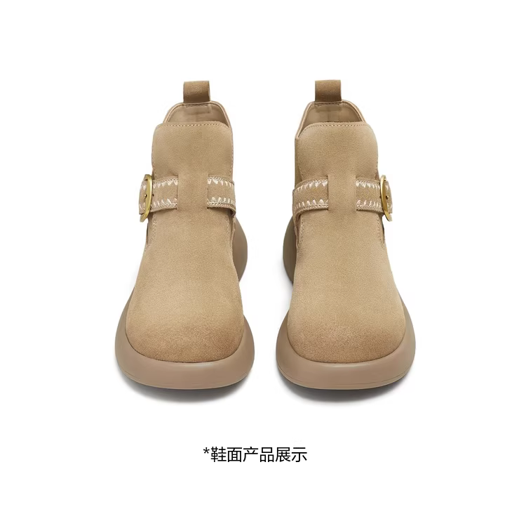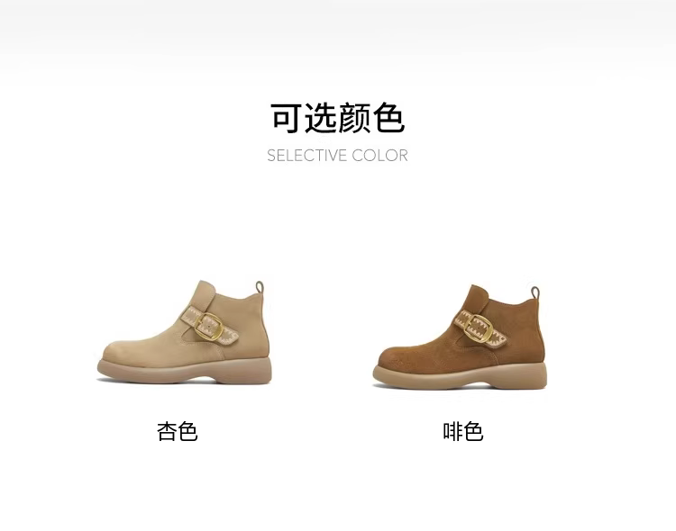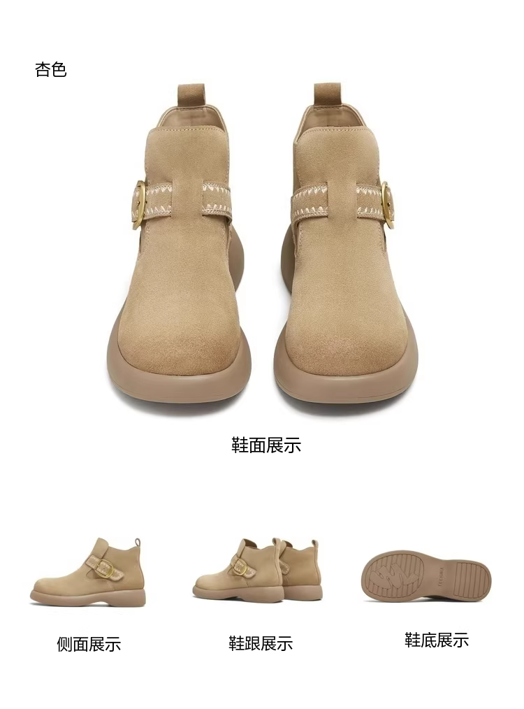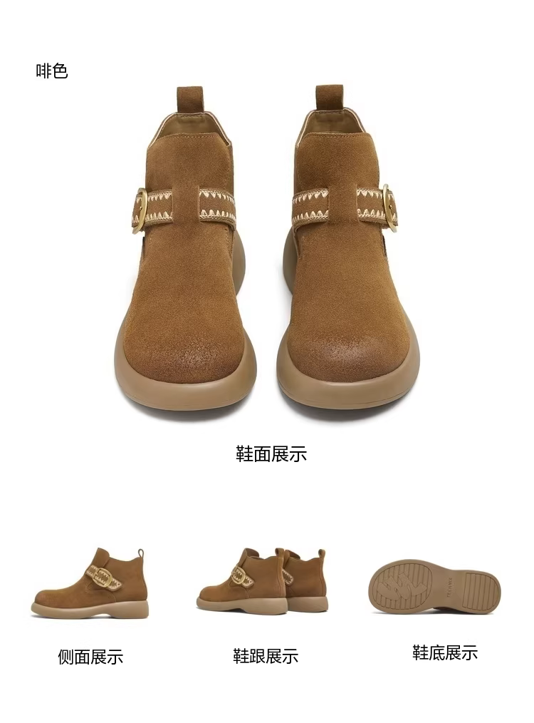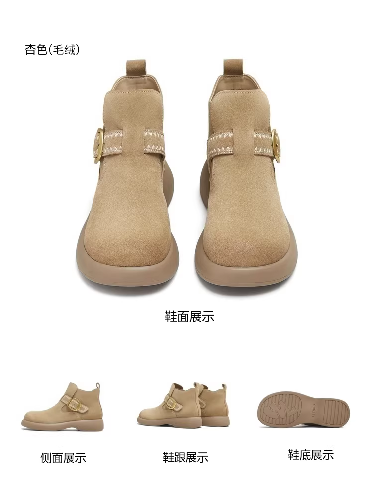 - Giày bốt nữ thời trang dã ngoại đế dày kiểu cổ điển Tianmeiyi, lót lông, kiểu ngắn, mùa đông 2025, kiểu mới