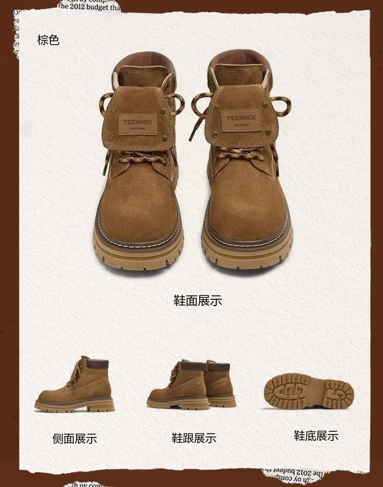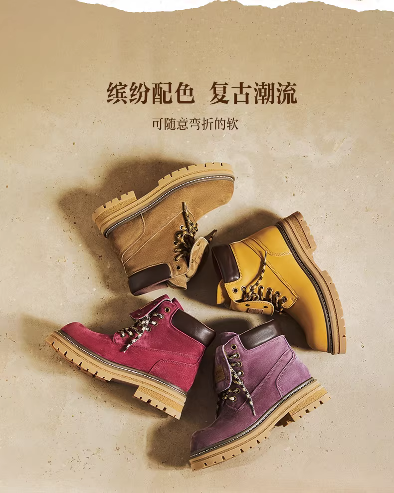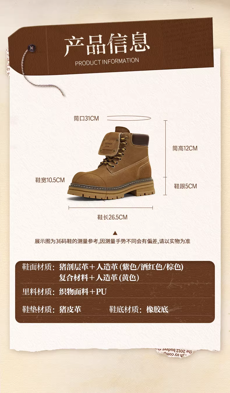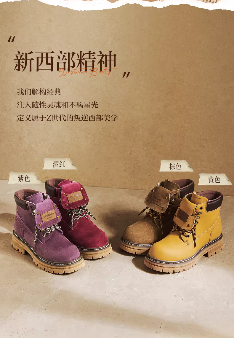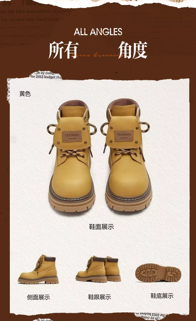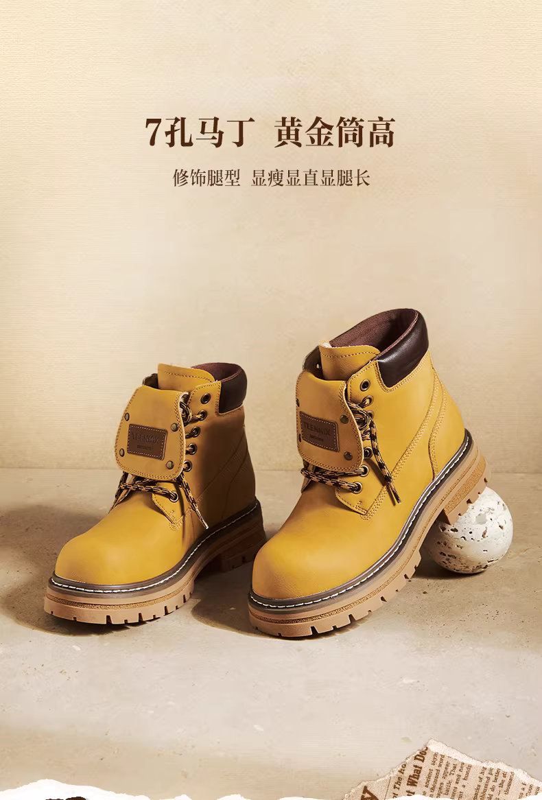 - Giày bốt nữ Tianmeiyi đế dày cổ điển màu vàng, giày bốt làm việc ngoài trời, giày bốt Martin, giày bốt da ngắn, kiểu mới thu 2025