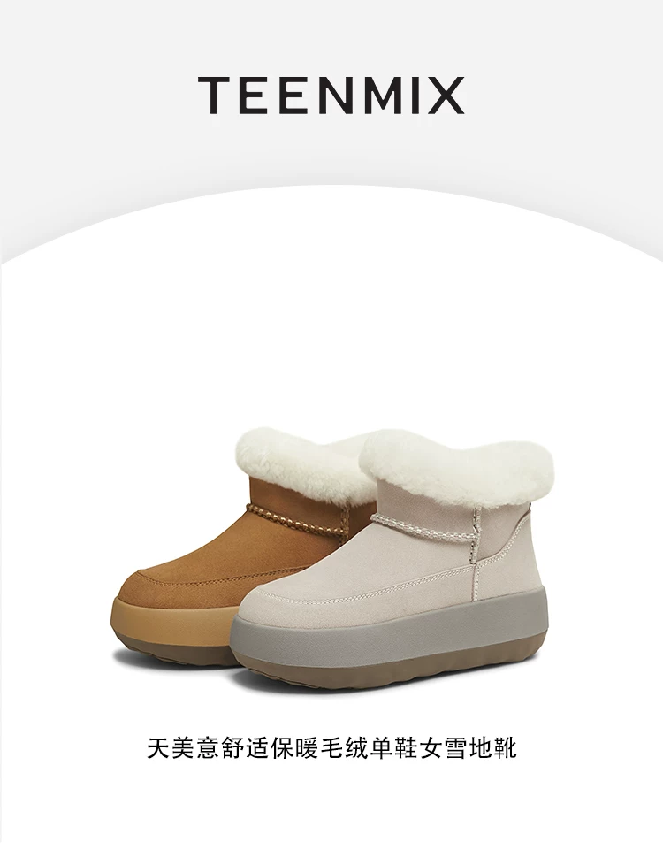 - Giày bốt nữ Tianmeiyi đế dày tăng chiều cao, lót lông cừu giữ ấm, đi tuyết, chất liệu cotton, kiểu dáng thường ngày, cổ ngắn, mẫu mới mùa đông 2025