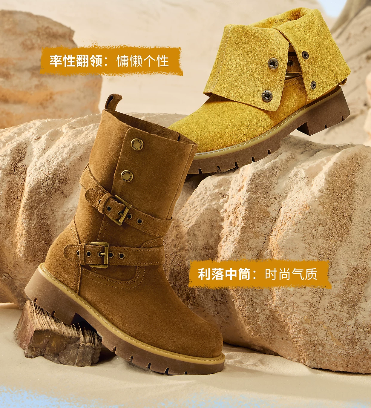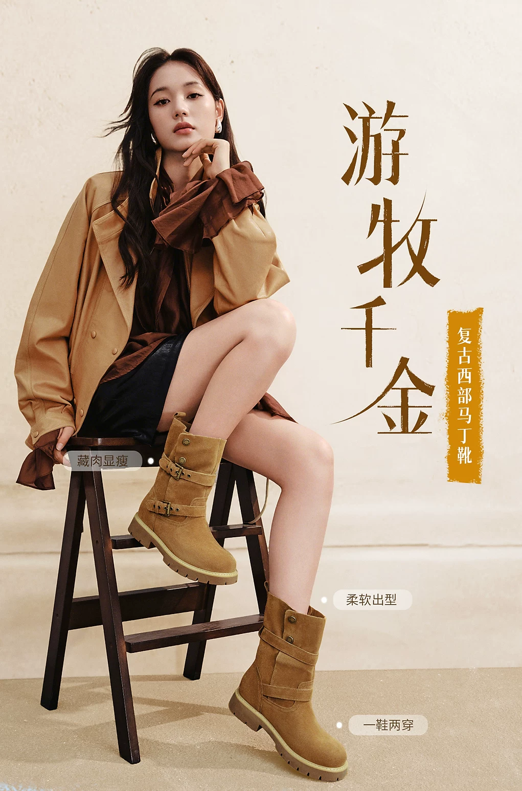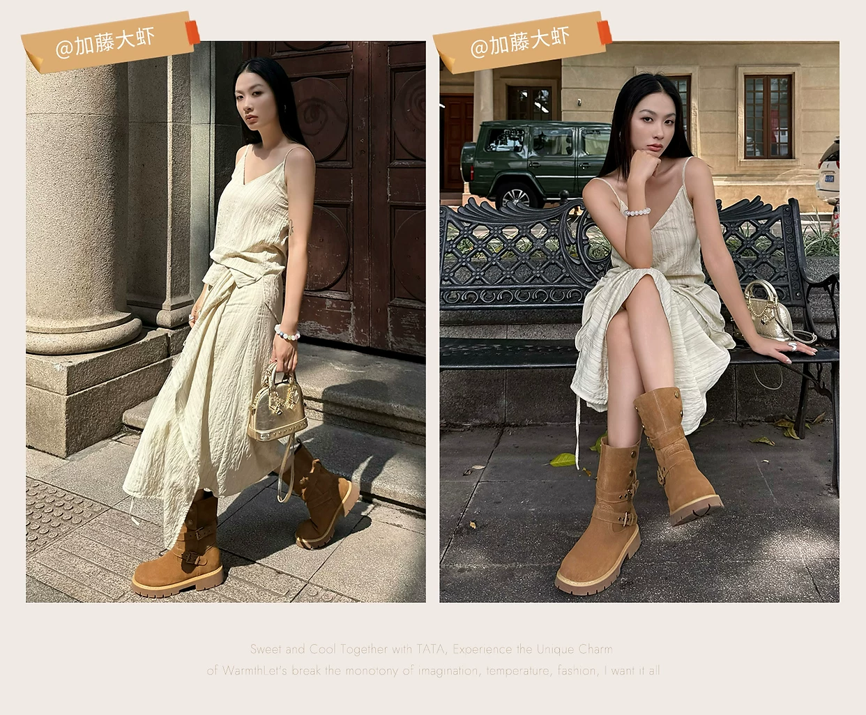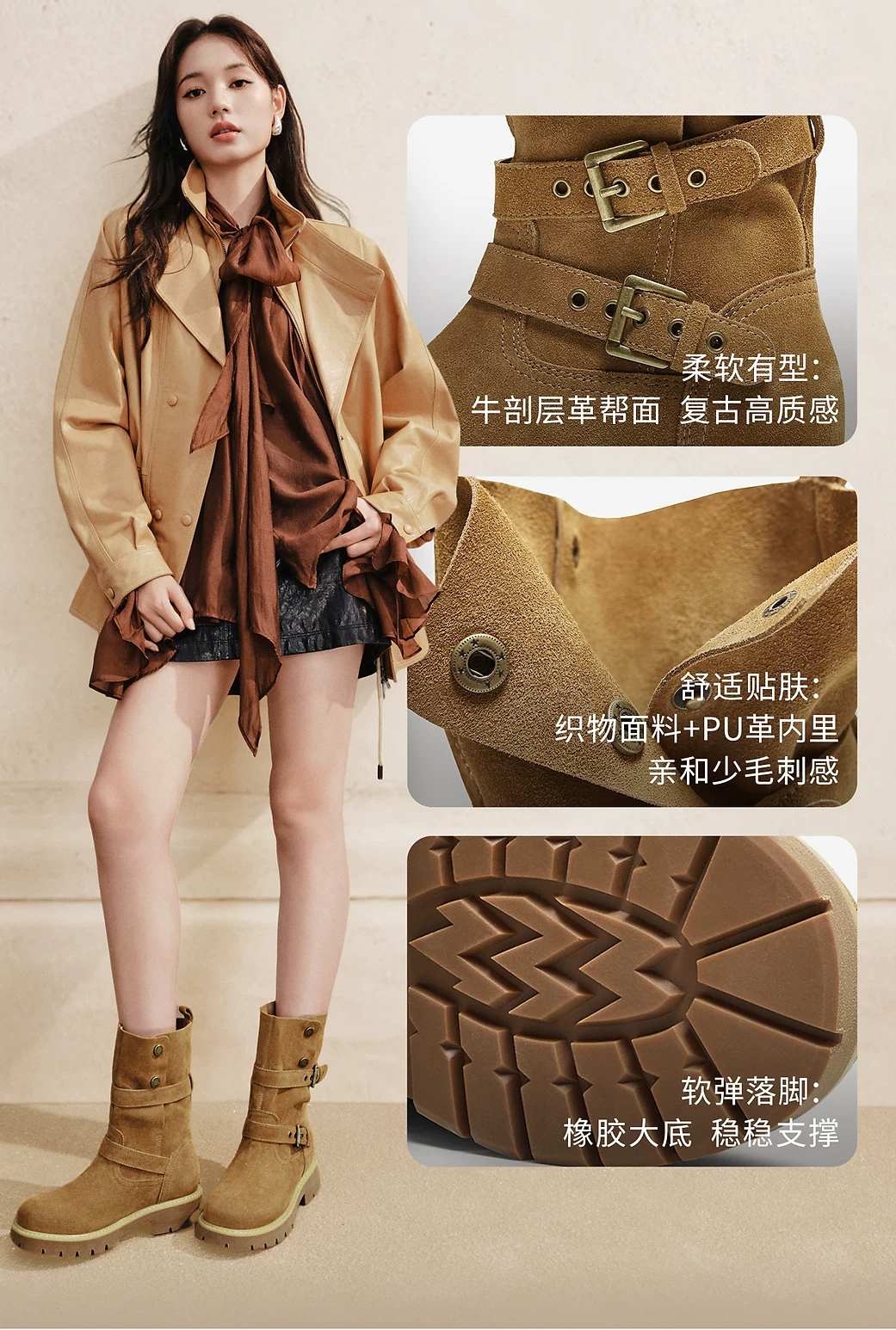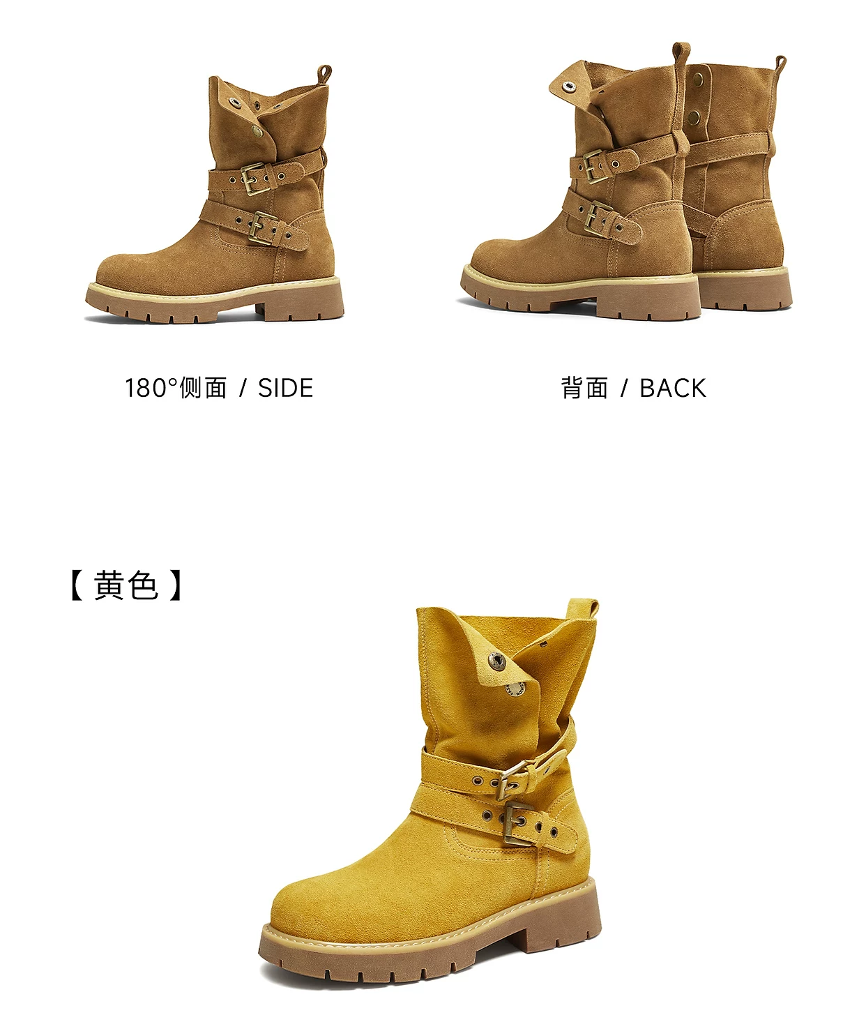 - Giày bốt phương Tây TATA dành cho nữ Giày bốt màu vàng mùa đông Giày bốt cao đến giữa bắp chân thời trang Giày bốt ngắn CF501DZ5