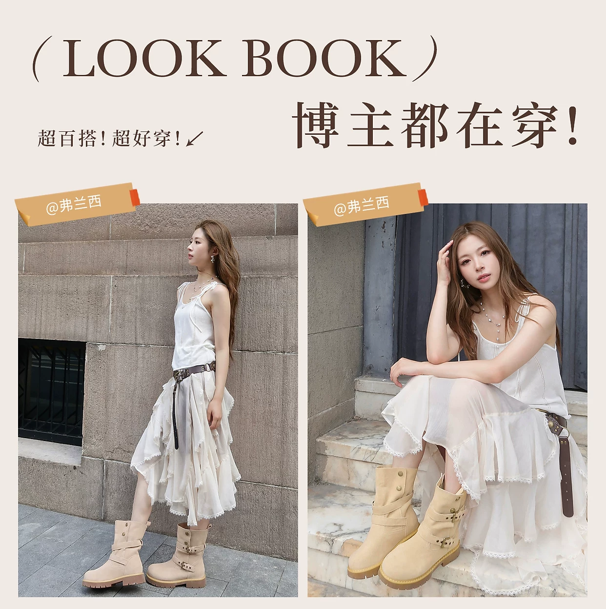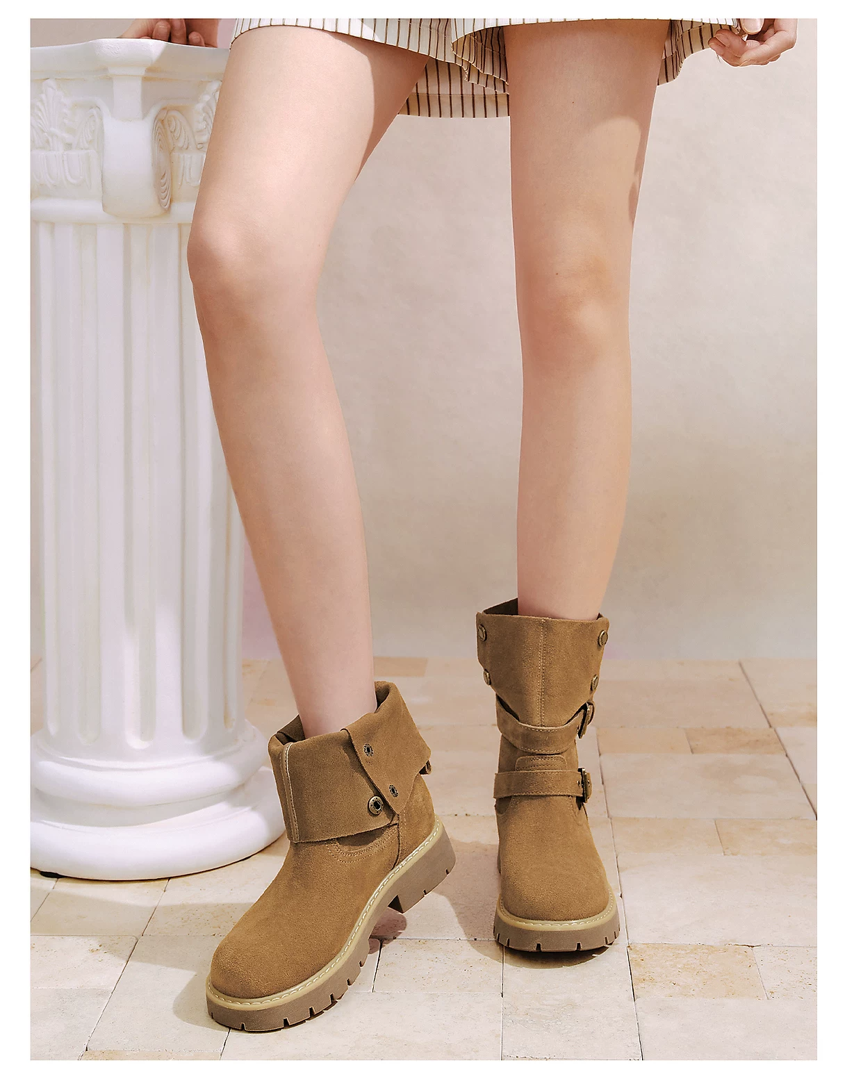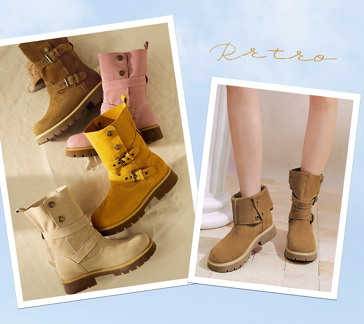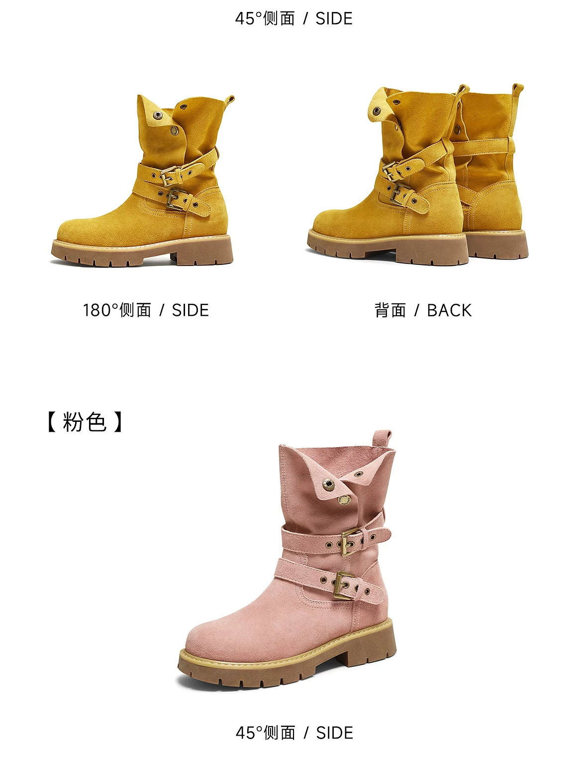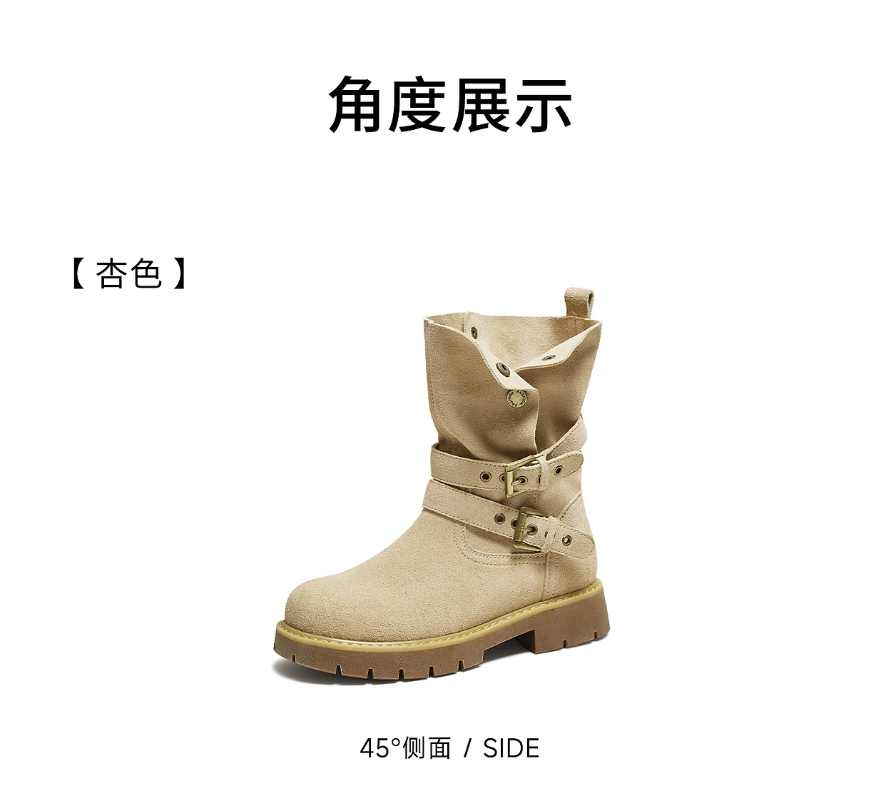 - Giày bốt phương Tây TATA dành cho nữ Giày bốt màu vàng mùa đông Giày bốt cao đến giữa bắp chân thời trang Giày bốt ngắn CF501DZ5