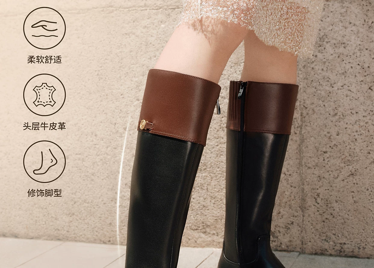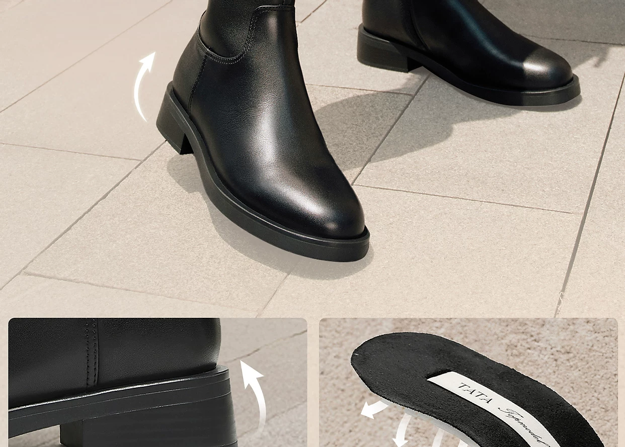 - Giày bốt siêu mẫu TATA, bốt da mùa đông đa năng đế dày, bốt da cổ cao 7TGC1DG5