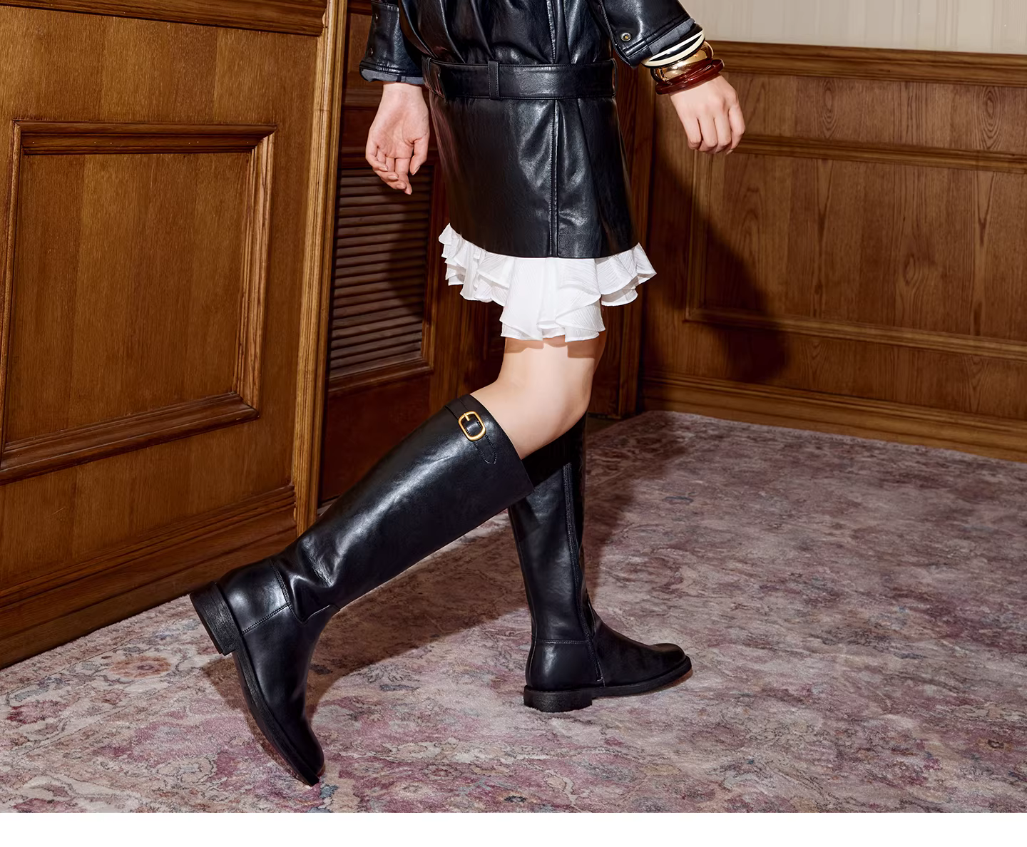 Giày bốt siêu mẫu TATA cùng kiểu dáng của Sun Leyan, bốt cưỡi ngựa, bốt dài thon gọn bắp chân rộng, bốt lót lông cừu 7TGA8DG5