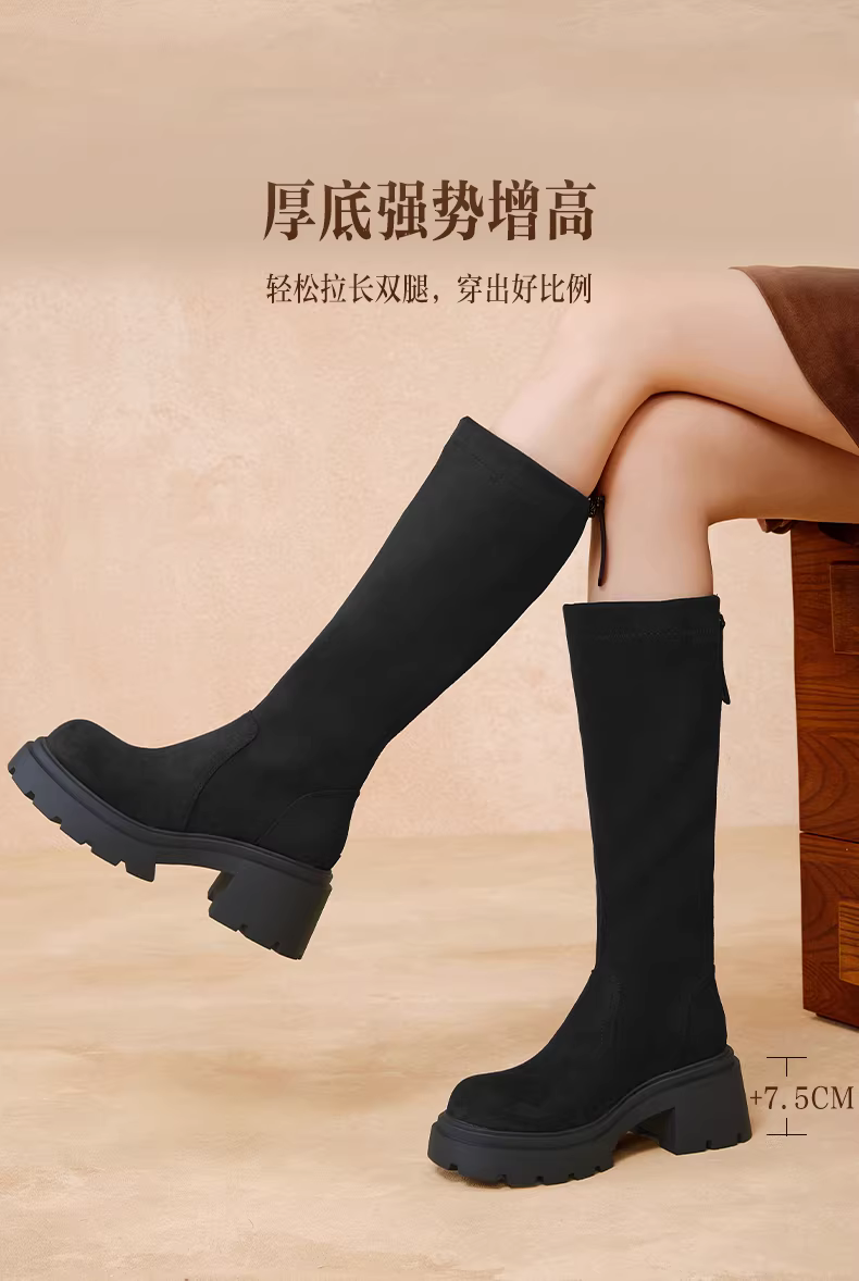 - Giày bốt tăng chiều cao đế dày Tianmeiyi có lông cừu, bốt thời trang ống cao, giày nữ, bốt thon gọn, bốt dài, mẫu mới mùa đông 2025.