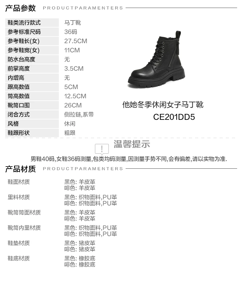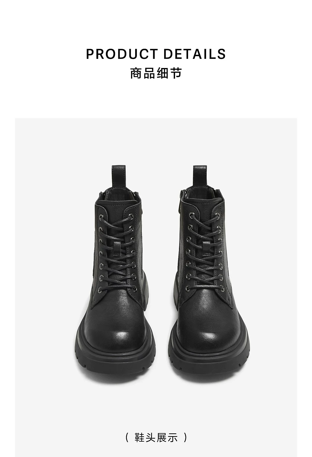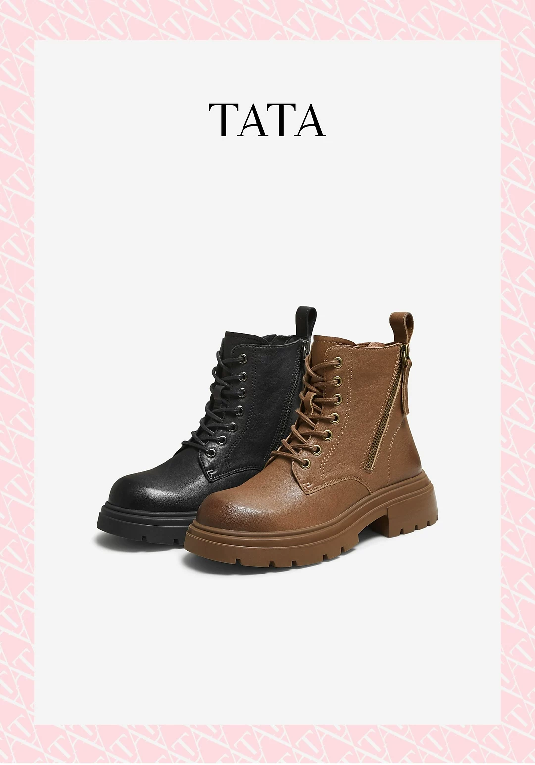 - Giày bốt TATA 2025 da cừu kiểu Martin màu đen thời trang đế dày tăng chiều cao kiểu ngắn CE201DD5