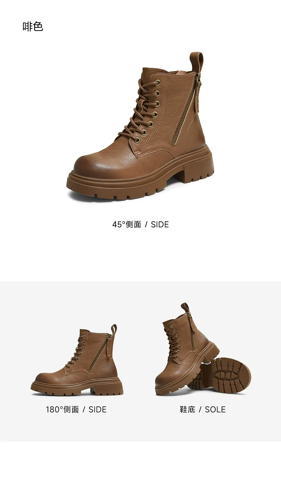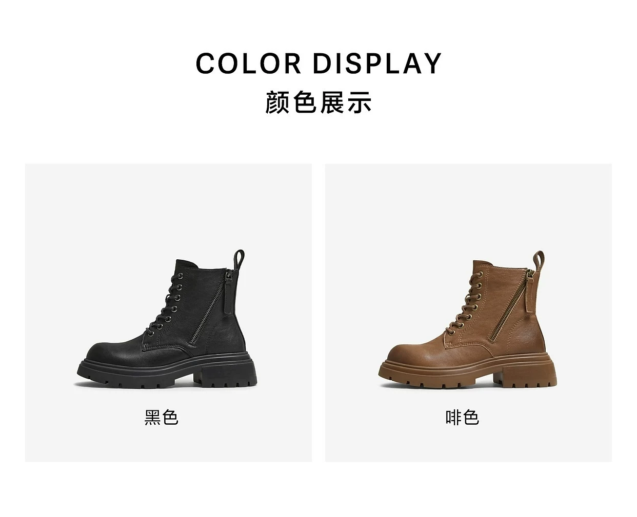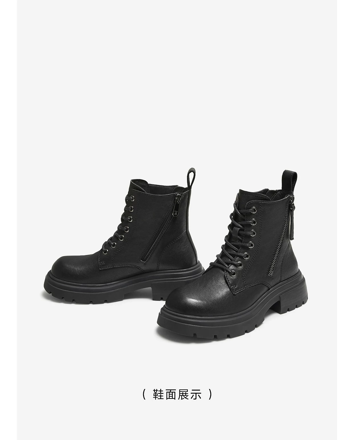 - Giày bốt TATA 2025 da cừu kiểu Martin màu đen thời trang đế dày tăng chiều cao kiểu ngắn CE201DD5