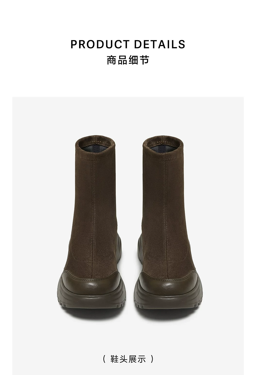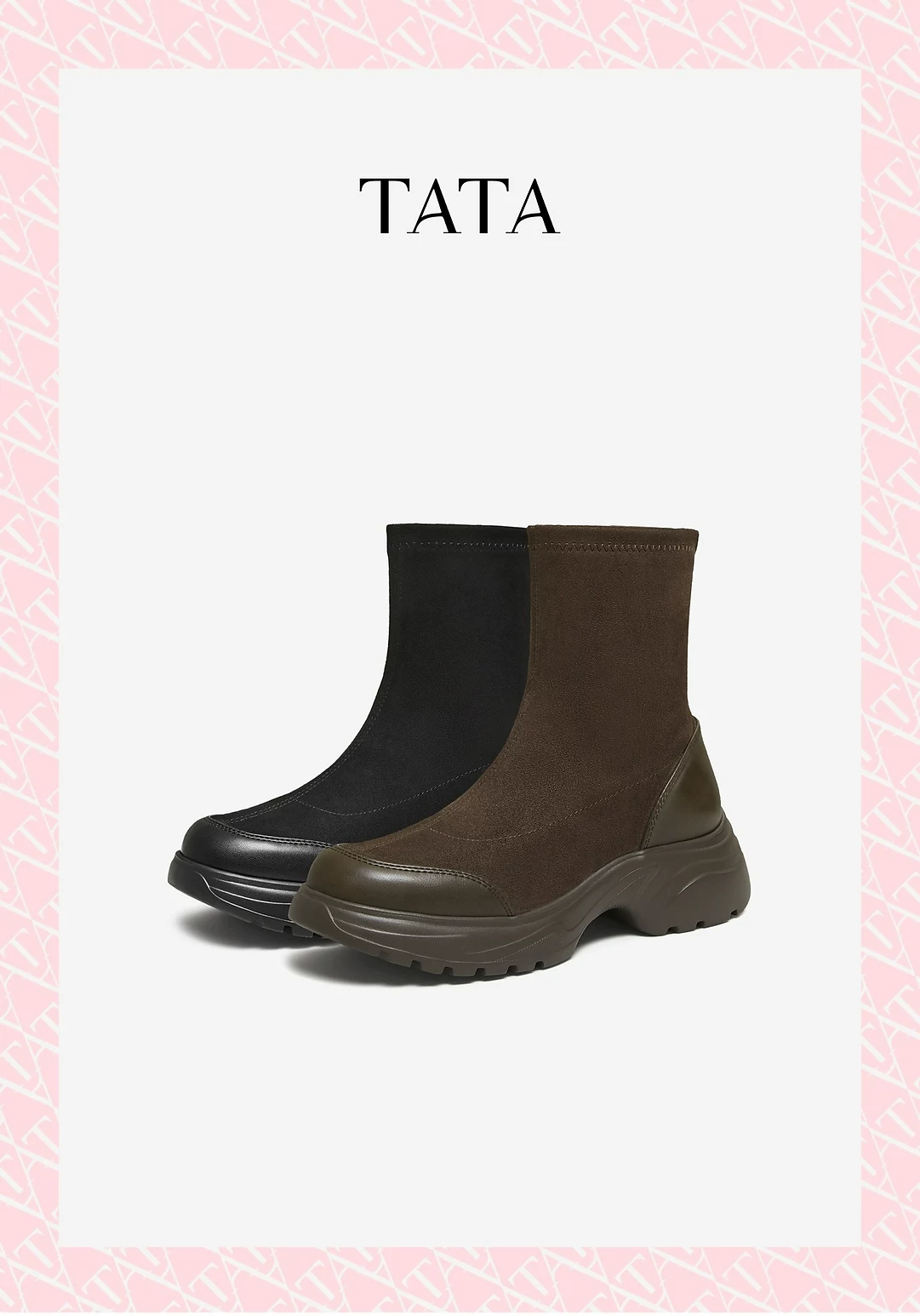 - Giày bốt TATA 2025 Mùa đông Giày bốt thời trang mới Giày bốt nữ thông thường Giày bốt đế dày đa năng Giày bốt co giãn 7PJ60DZ5