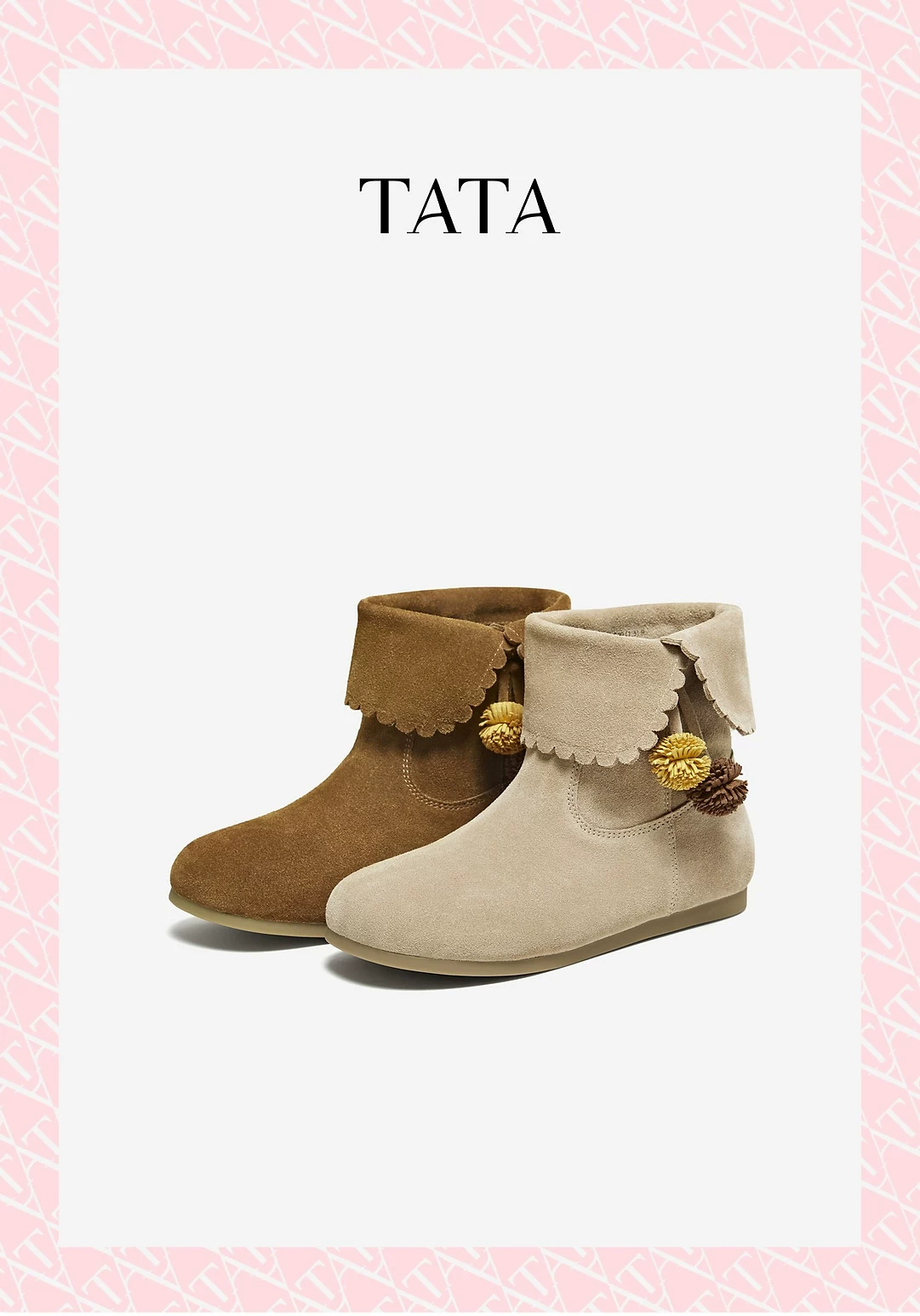 - Giày Bốt TATA 2025 Mùa Đông Mới Giày Bốt Thời Trang Đa Năng Giày Nữ Giày Bốt Ngắn Giày Bốt Phương Tây YVY01DD5