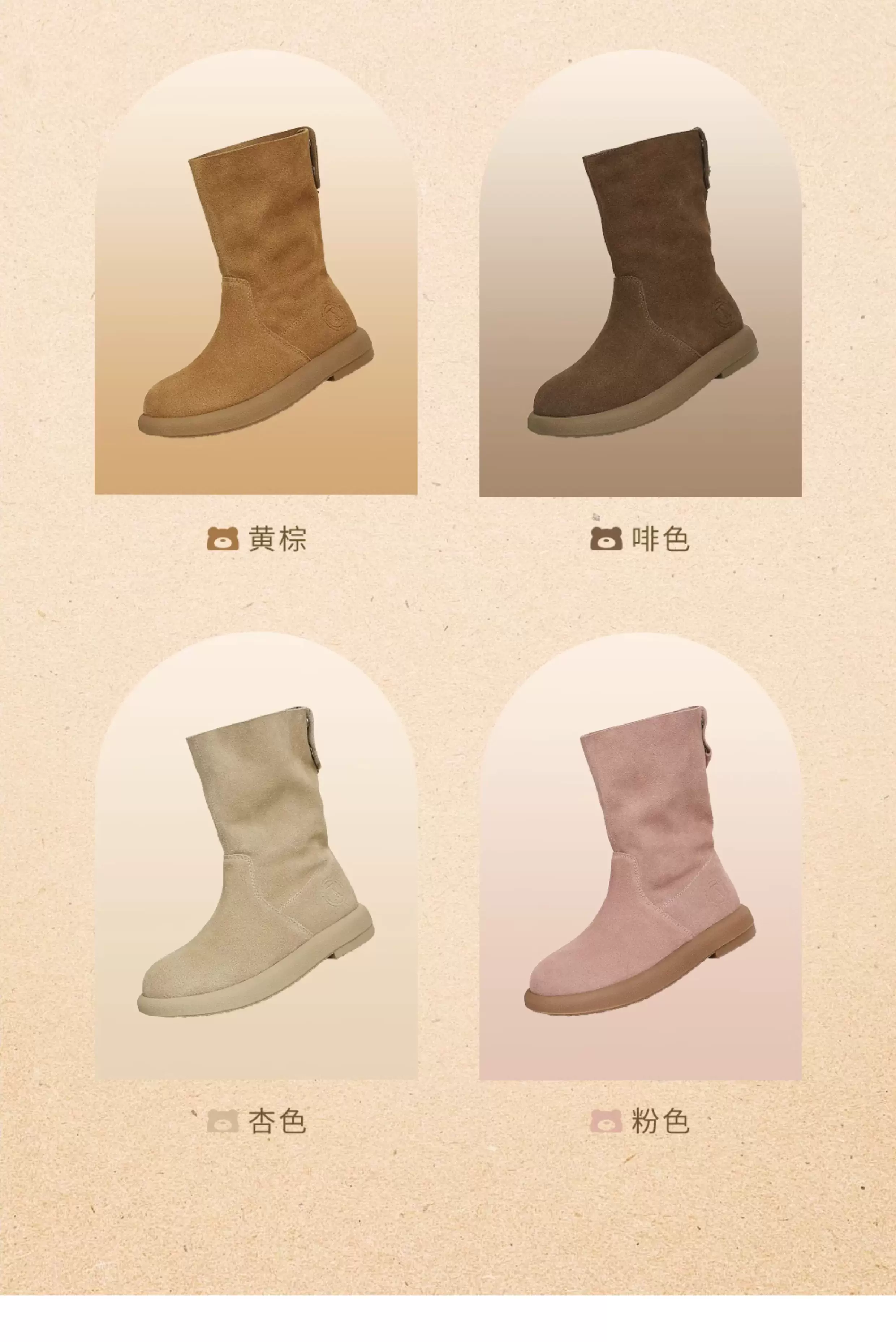 - Giày bốt TATA Bear 2025 Kiểu mới Giày bốt phương Tây lót lông cừu Giày bốt ngắn Giày bốt thời trang CGY01DS4