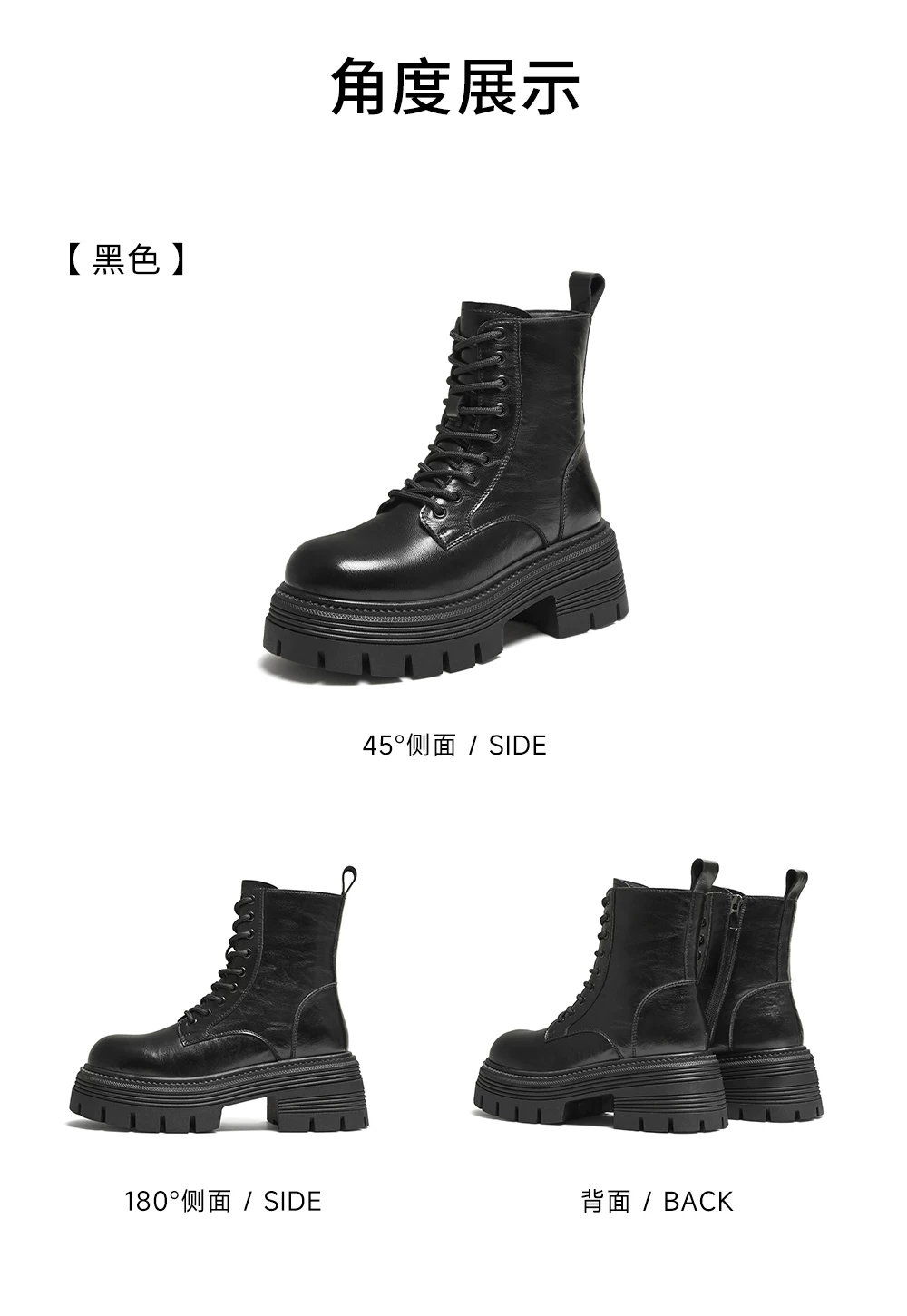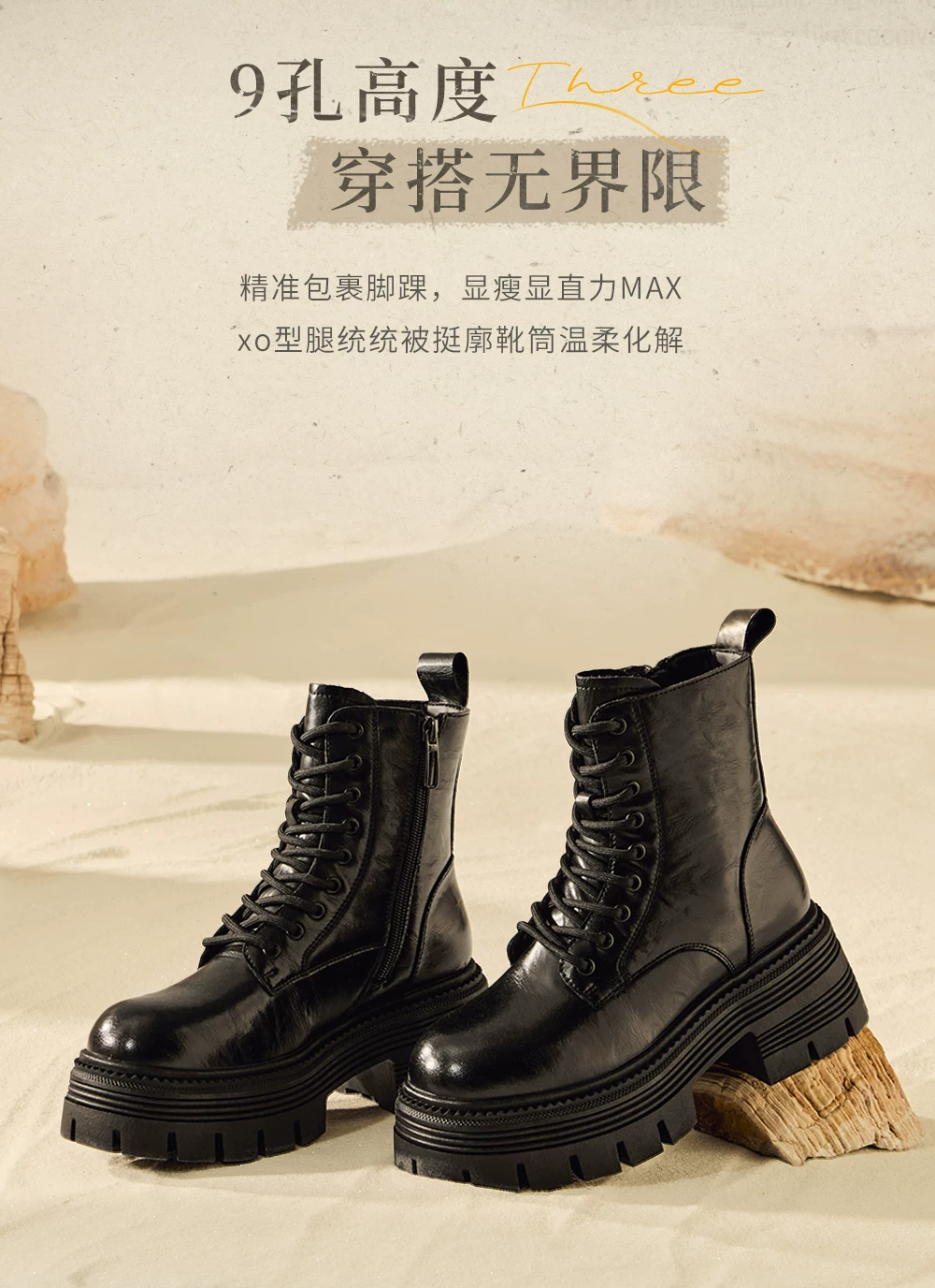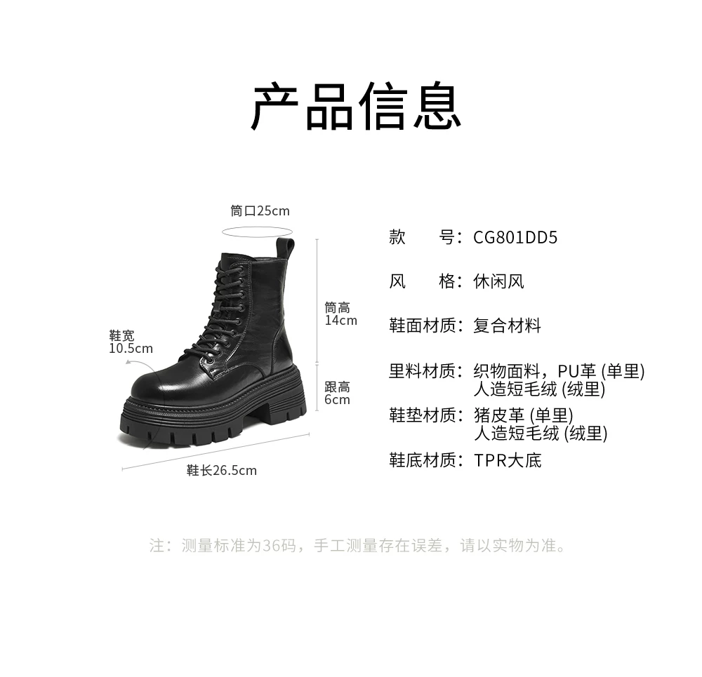 - Giày bốt TATA He She Cruiser Giày nữ Giày bốt đi làm Giày bốt nhiều lớp màu đen Giày bốt Martin lót lông Giày bốt ngắn CG801DD5