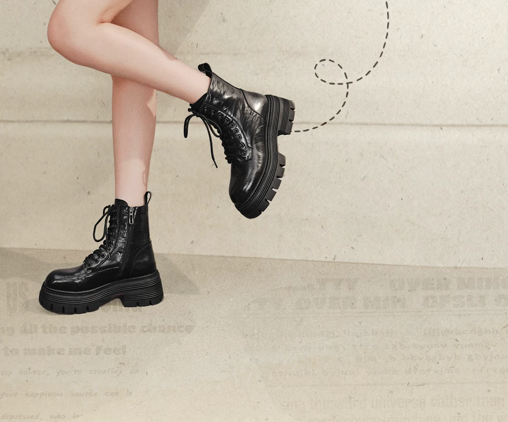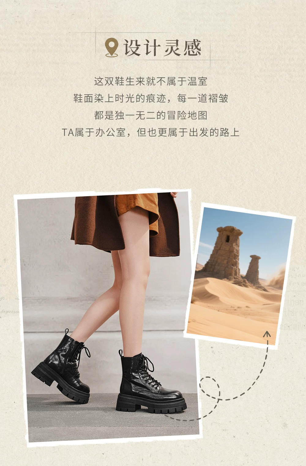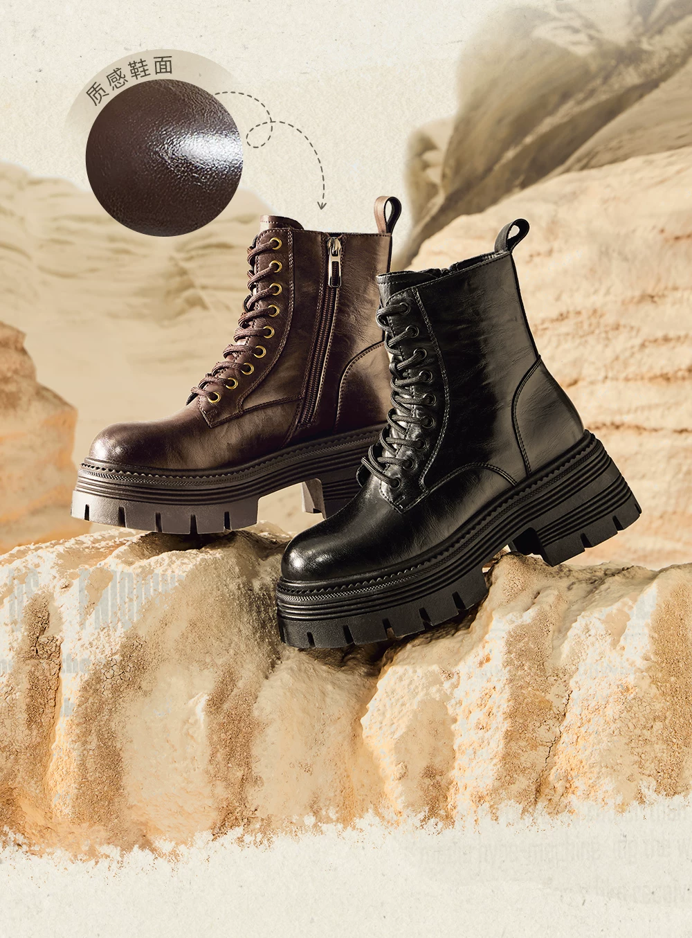 - Giày bốt TATA He She Cruiser Giày nữ Giày bốt đi làm Giày bốt nhiều lớp màu đen Giày bốt Martin lót lông Giày bốt ngắn CG801DD5