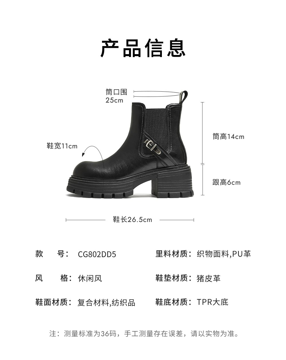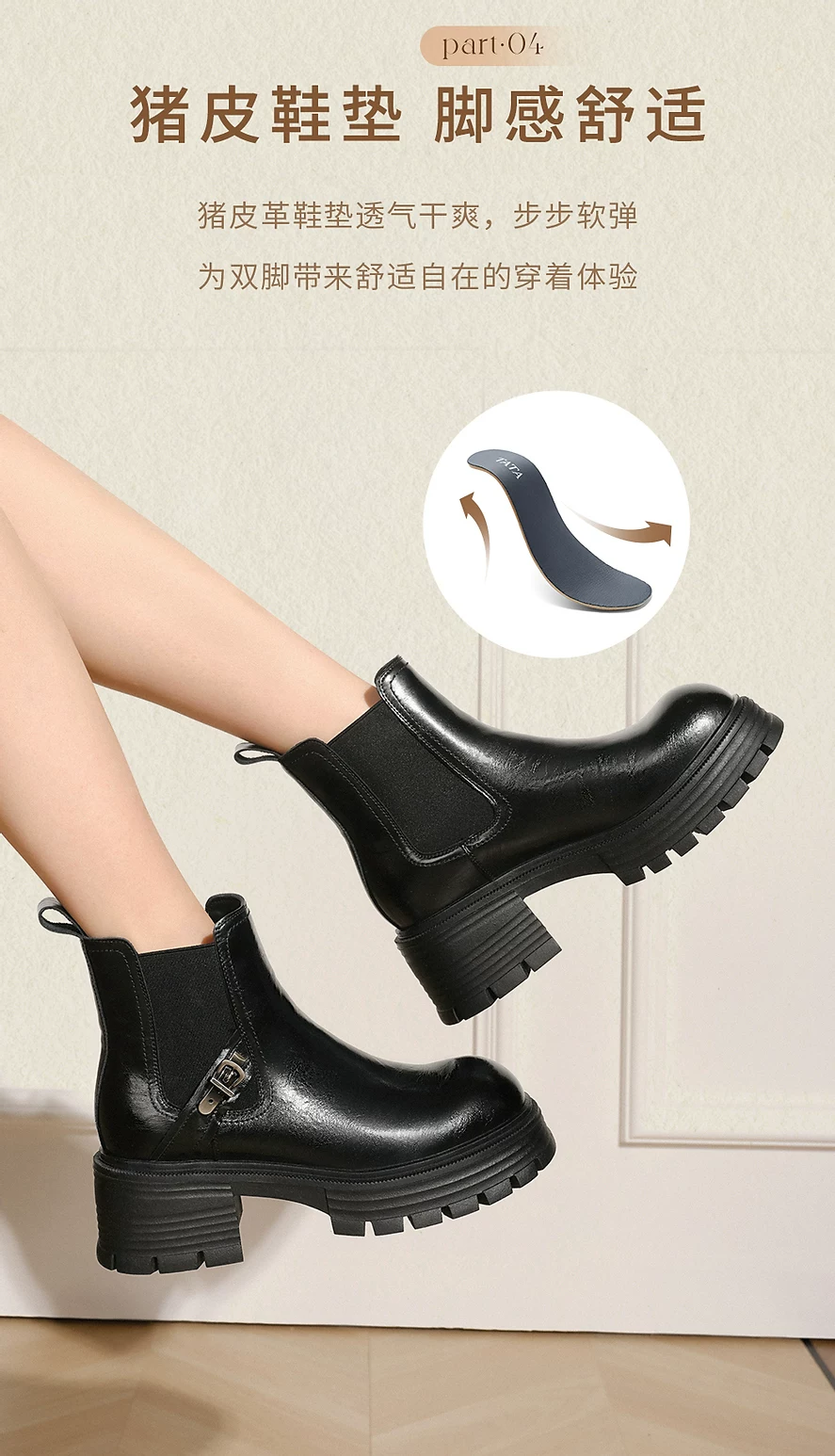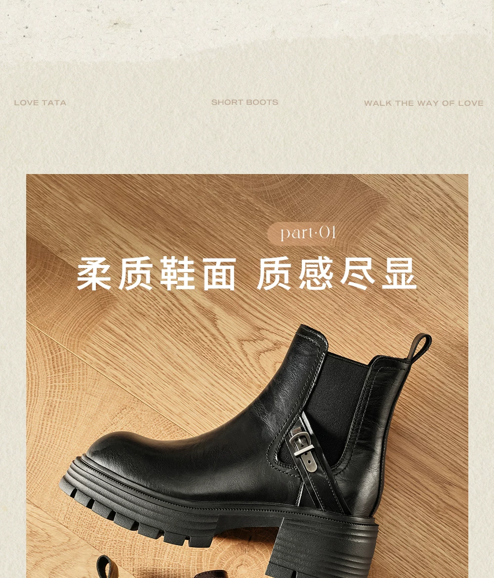 - Giày bốt TATA He She Cruiser Giày nữ Giày đi làm Giày bốt Martin nhiều lớp lót lông cừu Giày bốt ngắn phong cách Anh Quốc CG801DD5