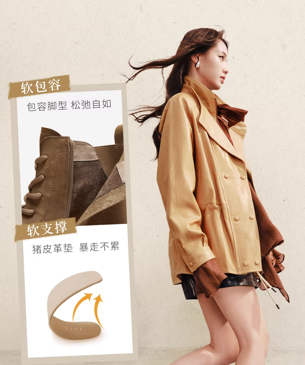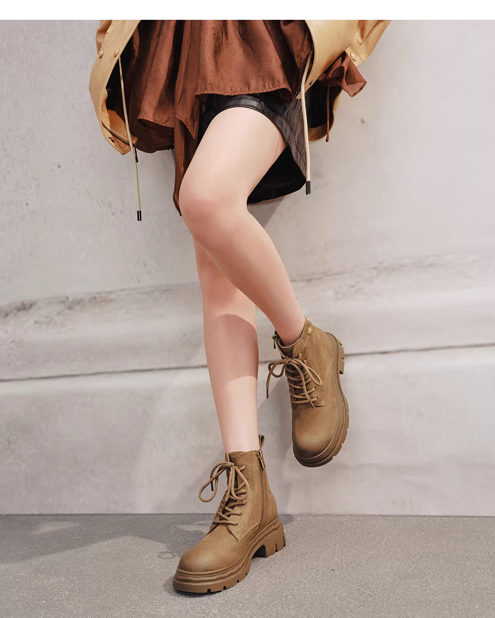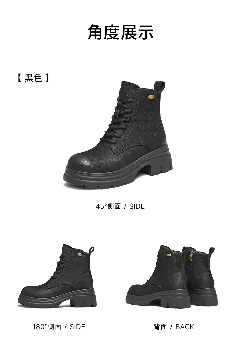 - Giày bốt TATA mùa đông 2025 mới, kiểu ngắn, đa năng, đế dày, đơn giản, kiểu Martin dành cho nữ CHK01DD5