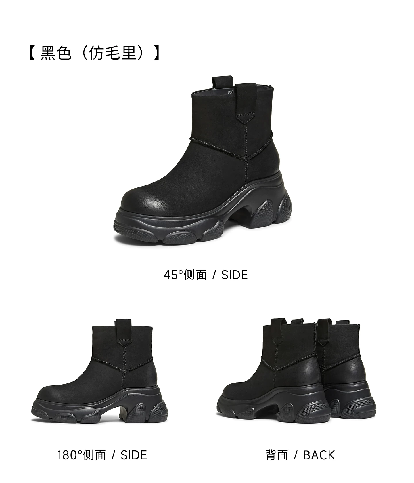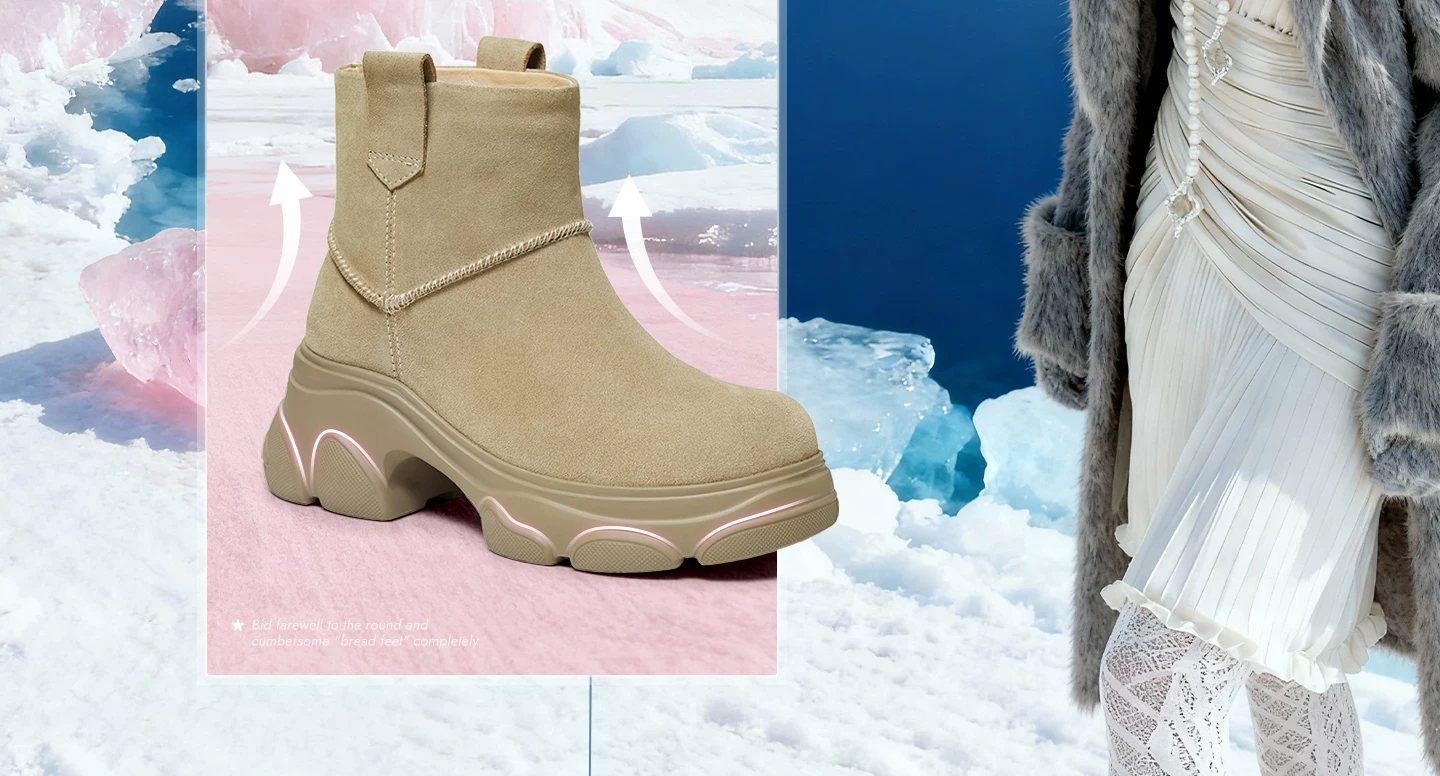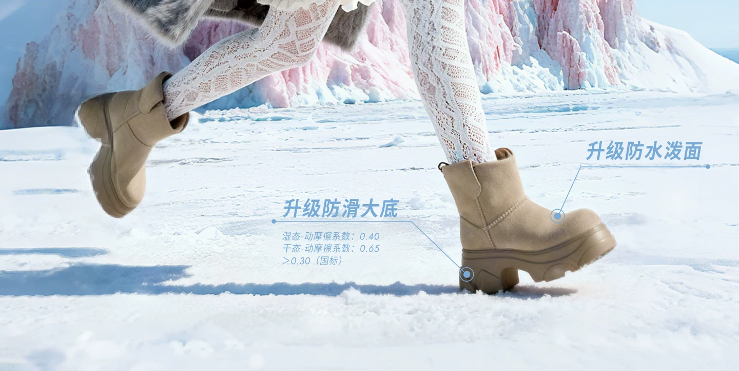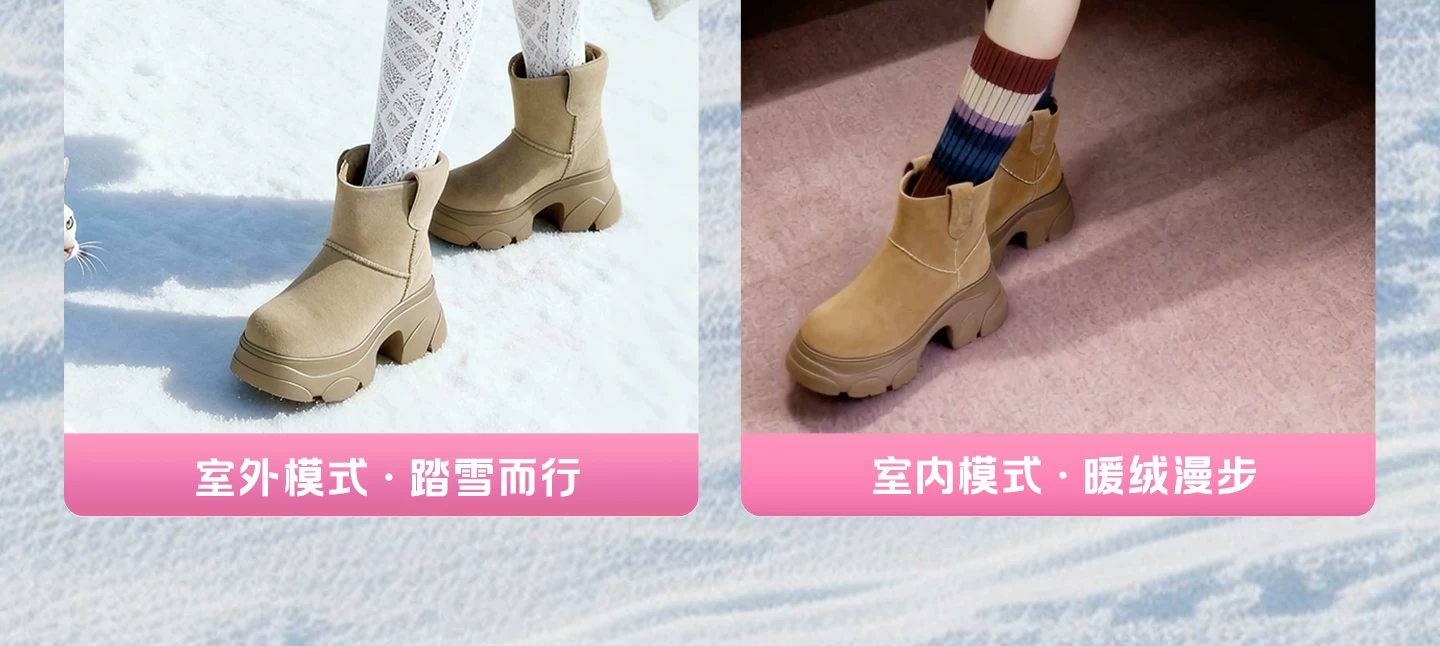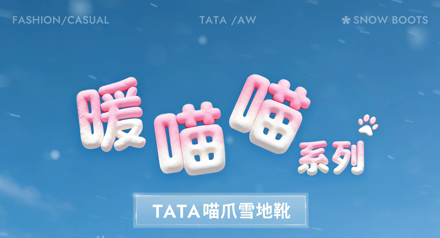 - Giày bốt TATA Warm Meow Meow có lót lông cừu Giày bốt cotton mùa đông đế dày Giày bốt cotton lông thú nữ CEG10DD5