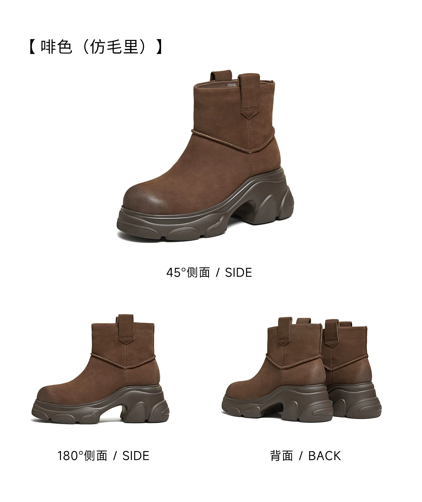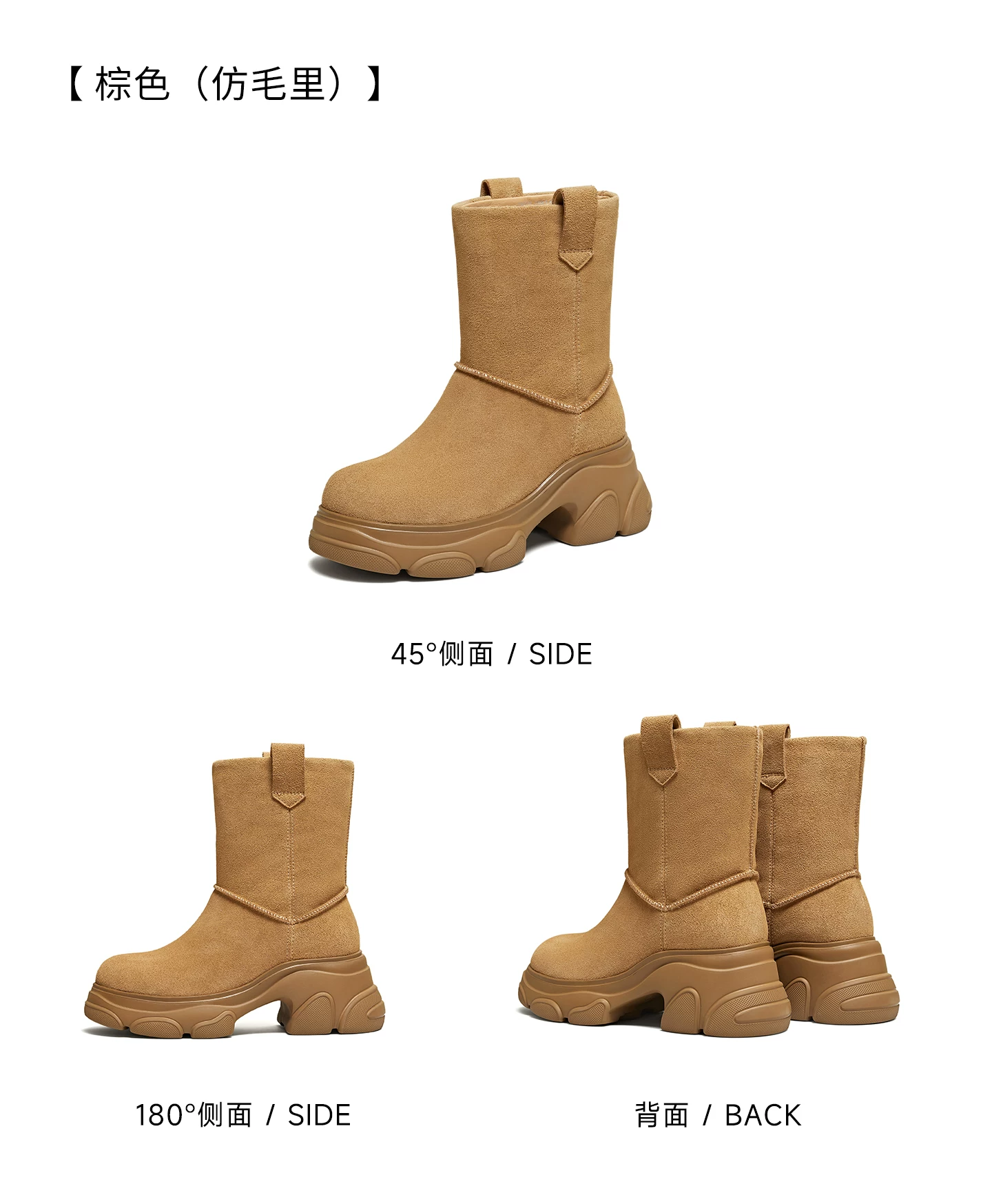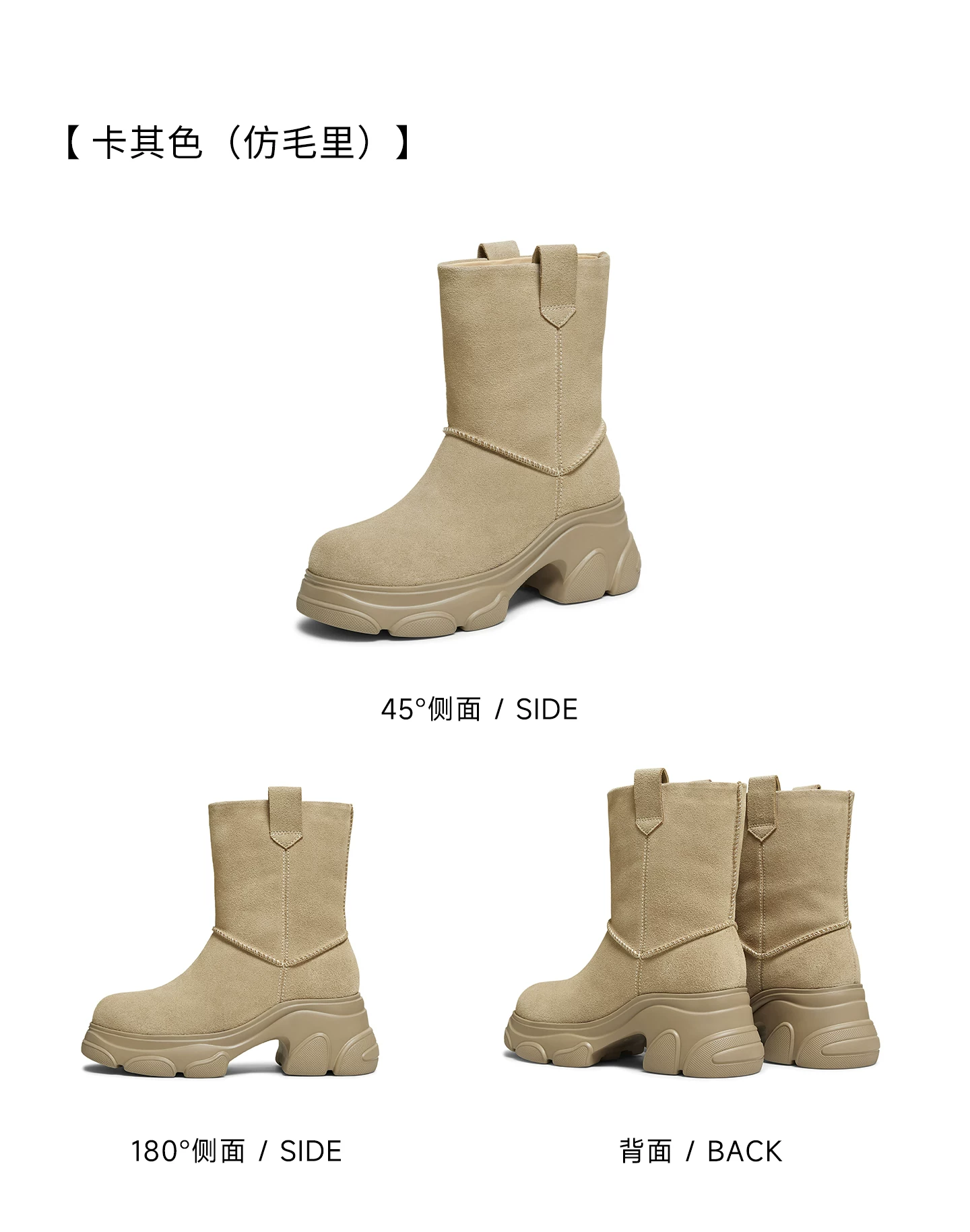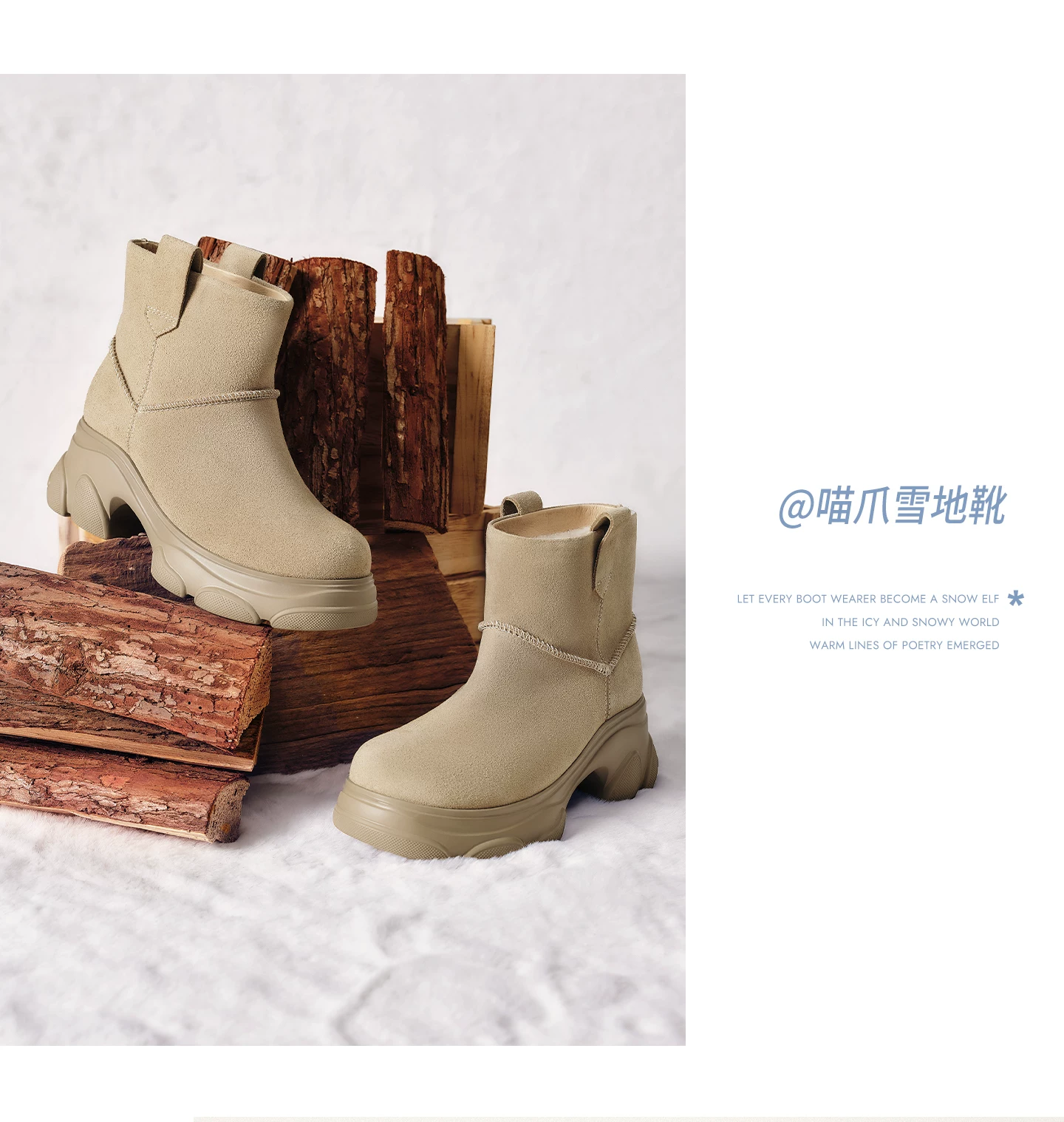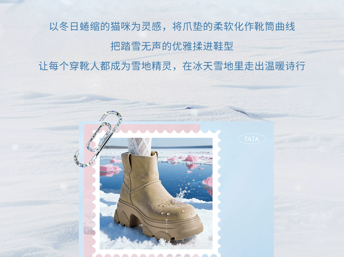 - Giày bốt TATA Warm Meow Meow có lót lông cừu Giày bốt cotton mùa đông đế dày Giày bốt cotton lông thú nữ CEG10DD5