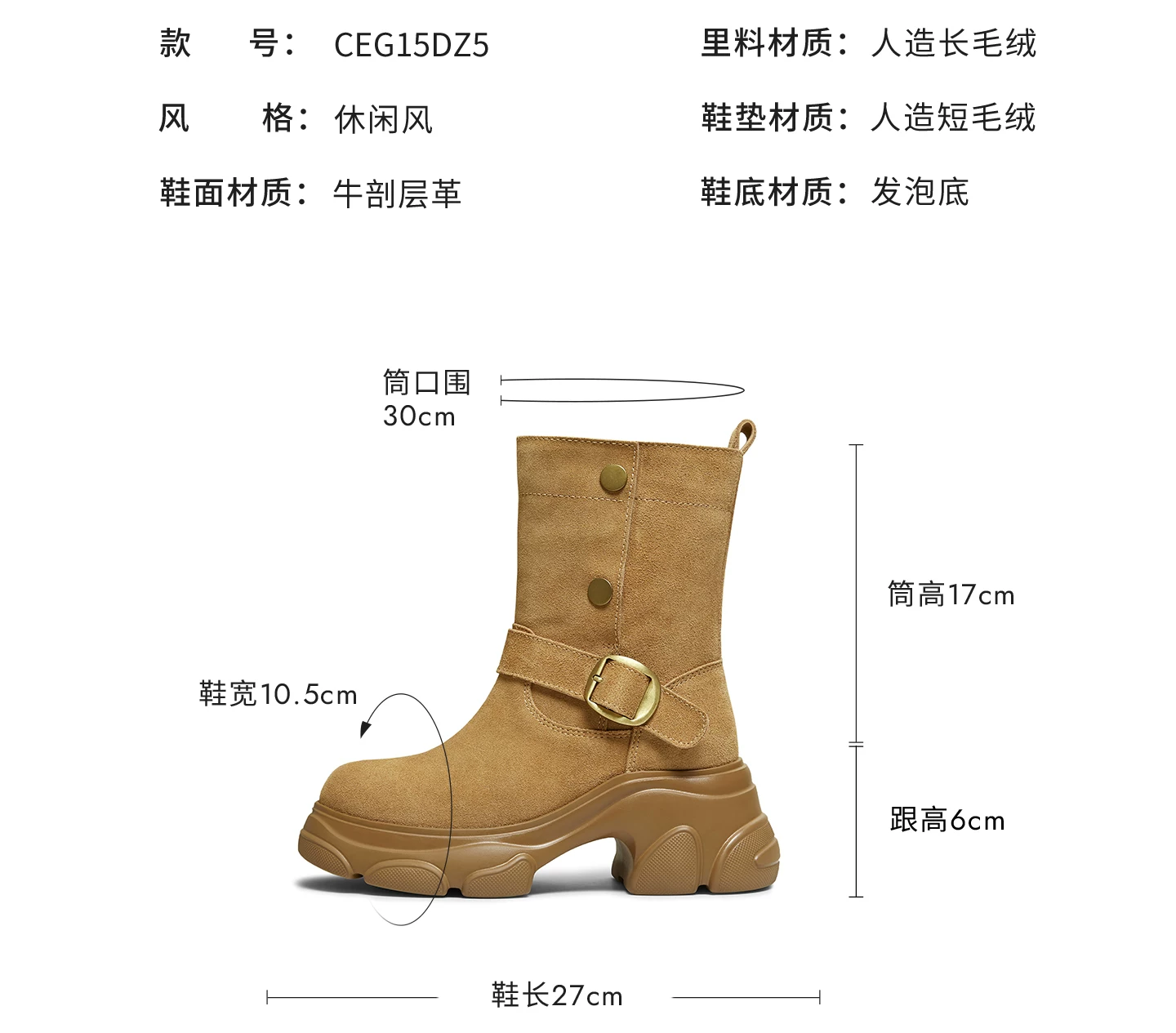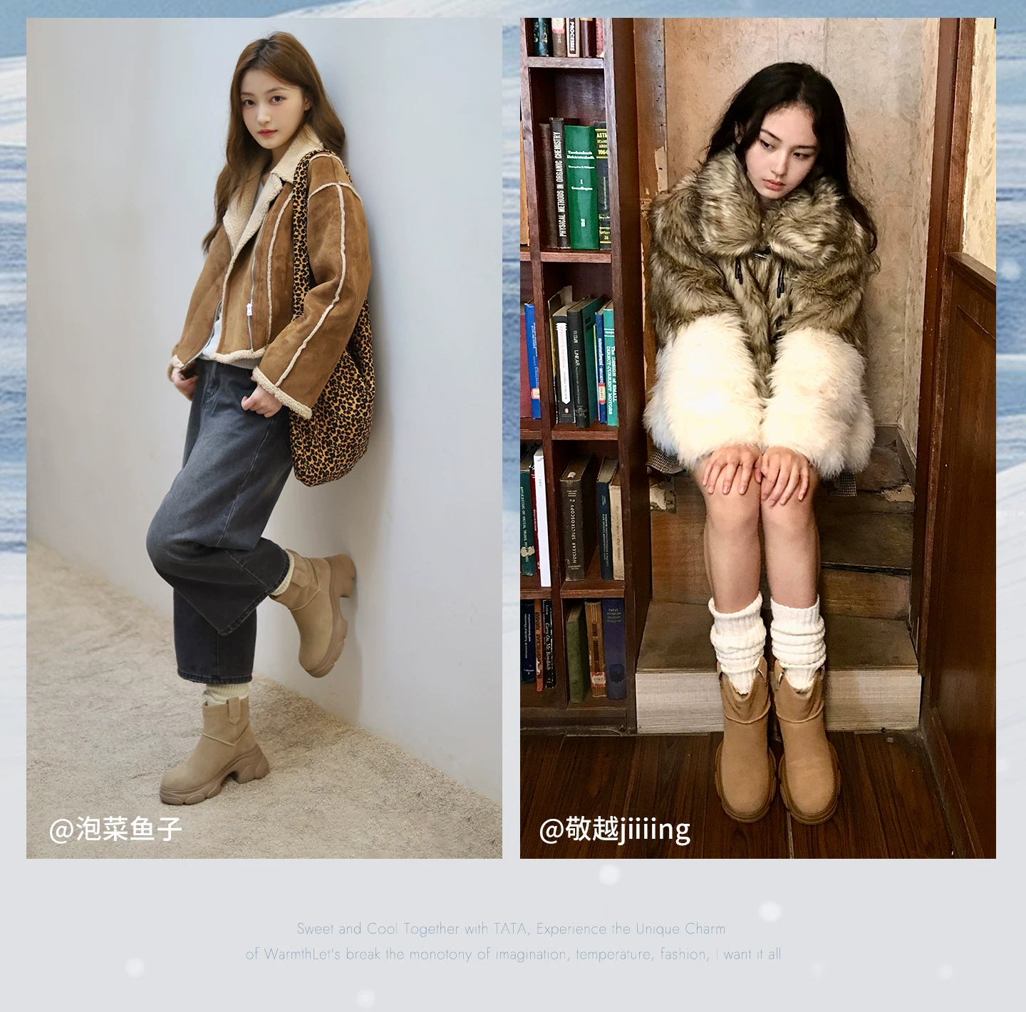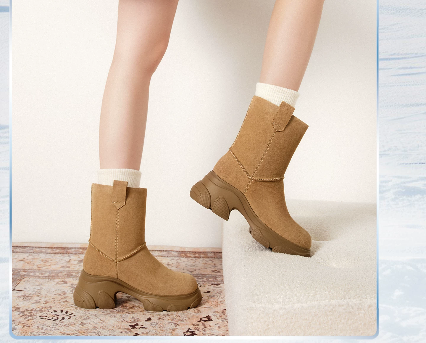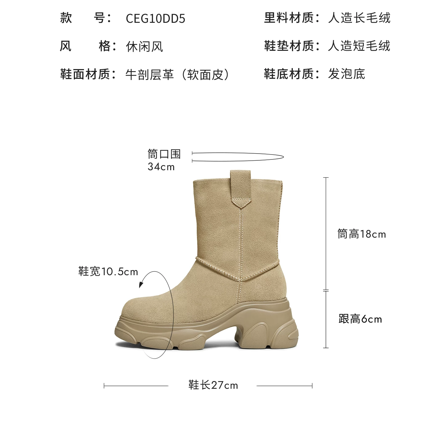 - Giày bốt TATA Warm Meow Meow có lót lông cừu Giày bốt cotton mùa đông đế dày Giày bốt cotton lông thú nữ CEG10DD5