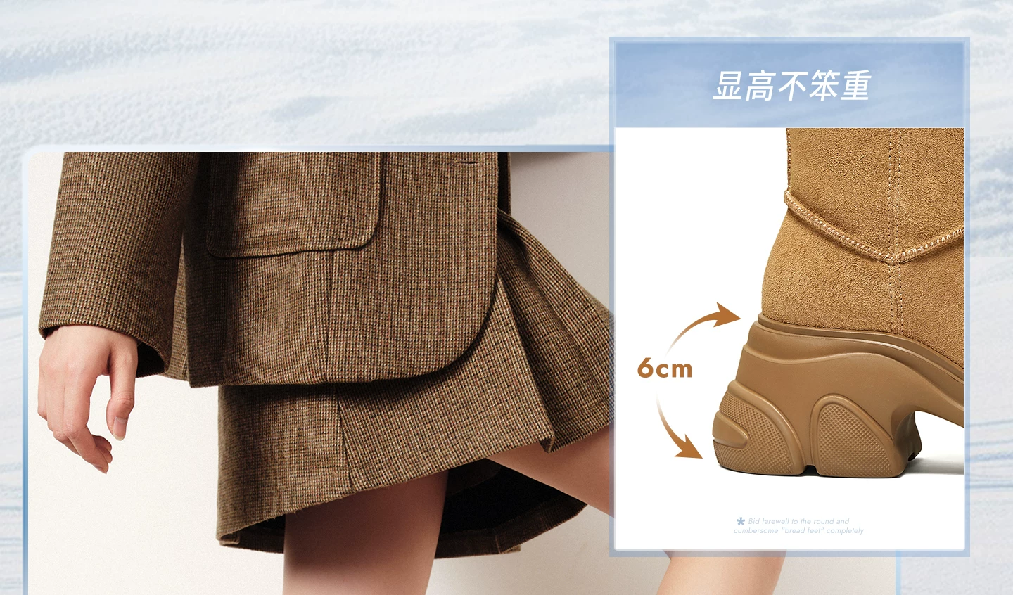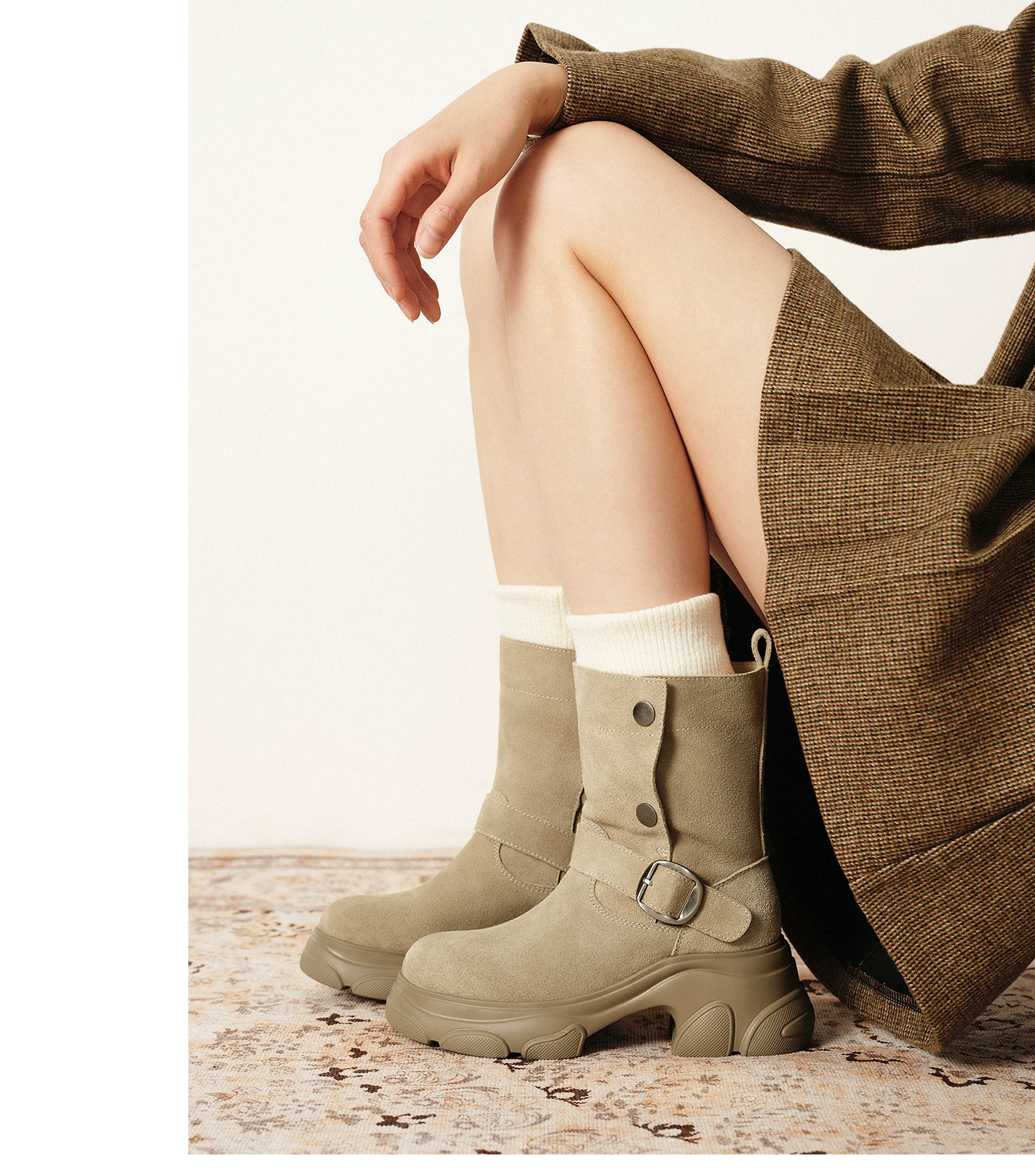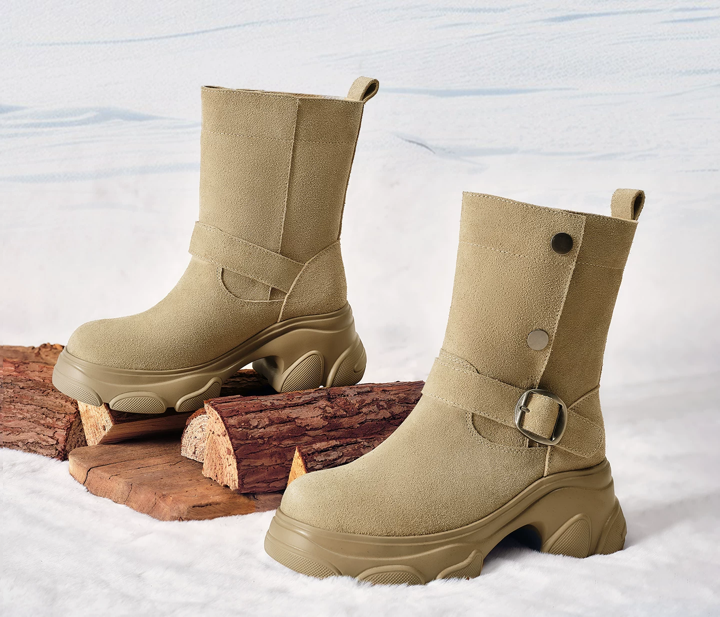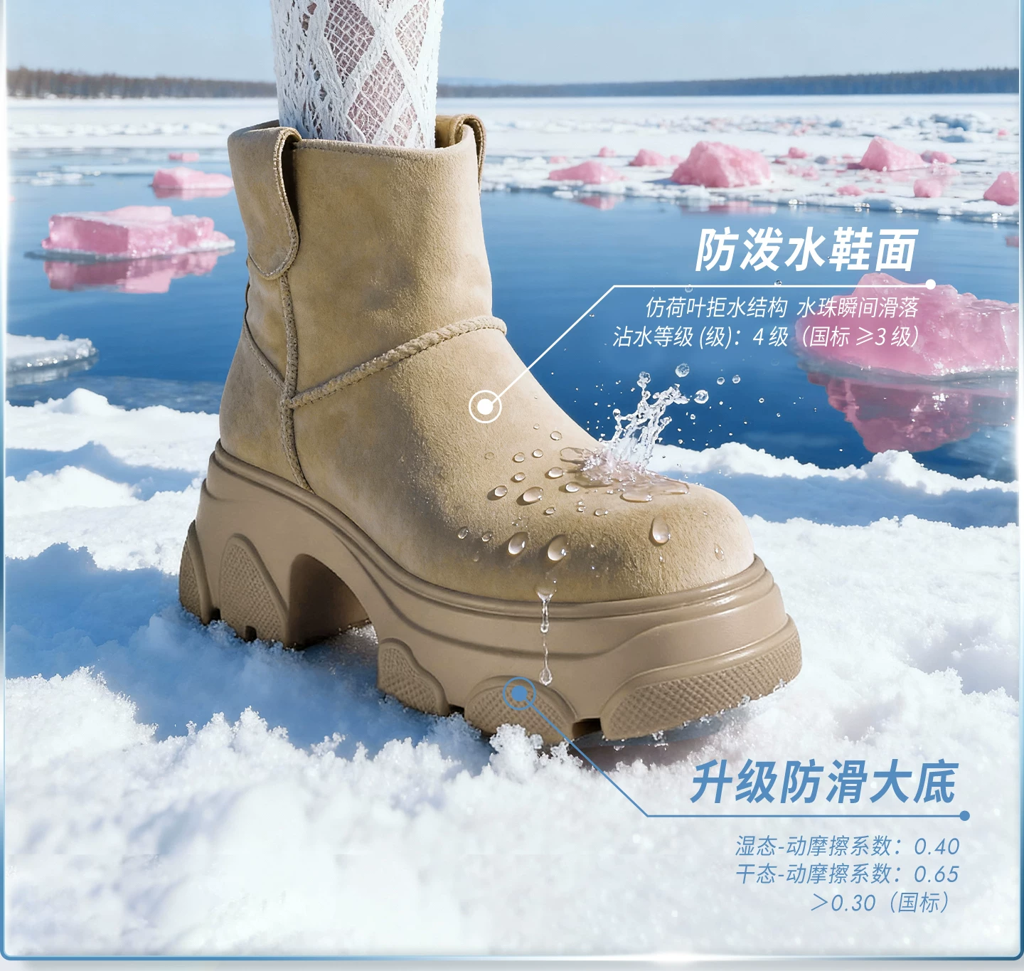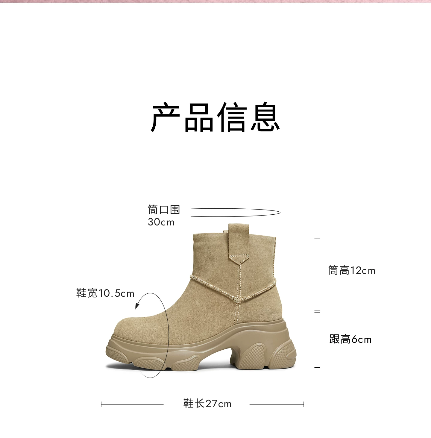 - Giày bốt TATA Warm Meow Meow có lót lông cừu Giày bốt cotton mùa đông đế dày Giày bốt cotton lông thú nữ CEG10DD5
