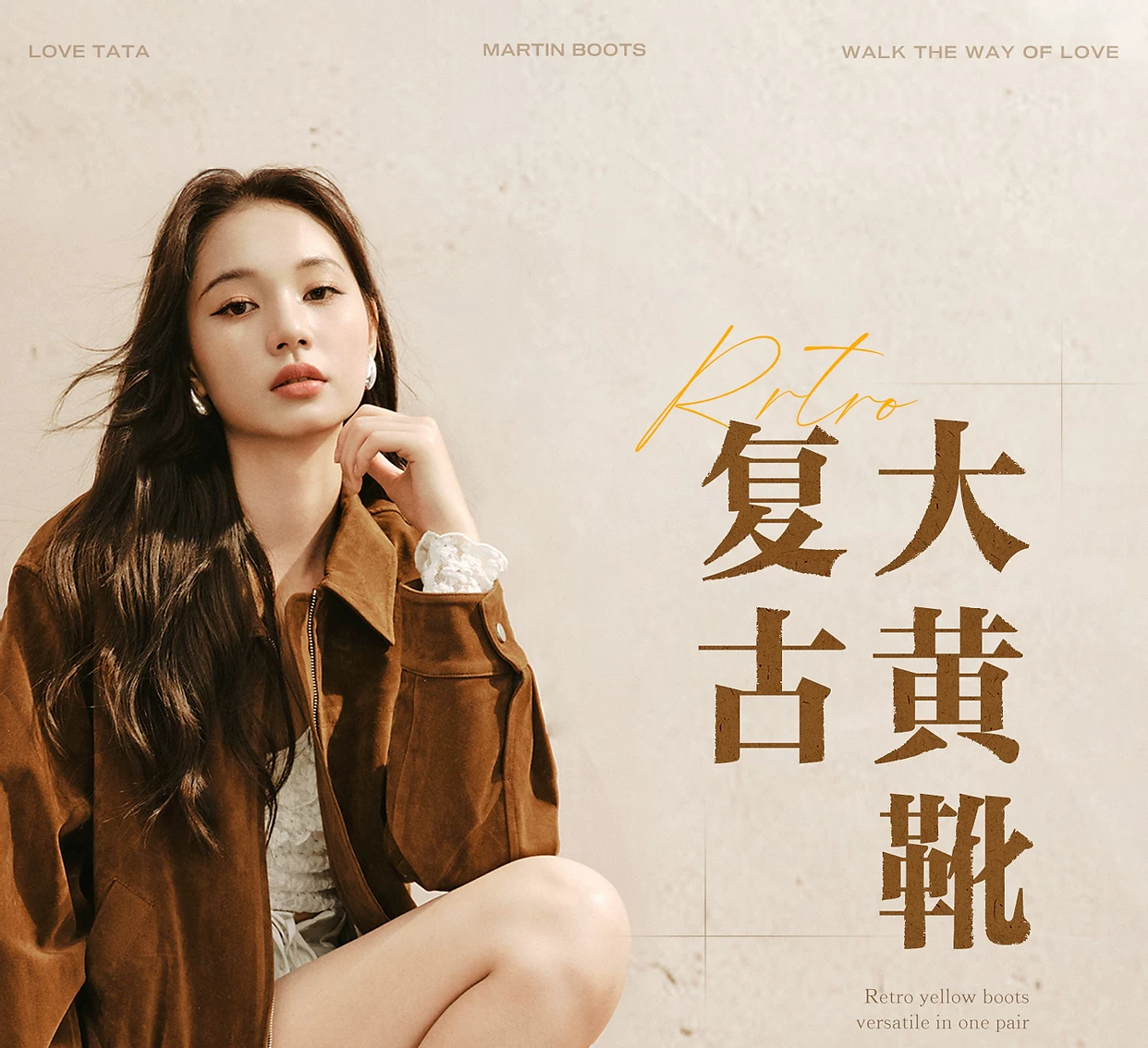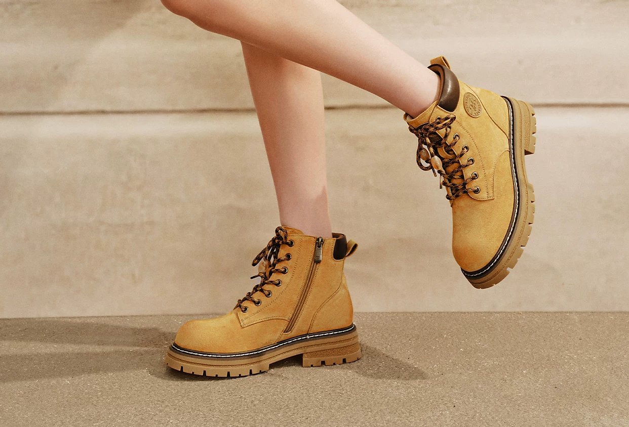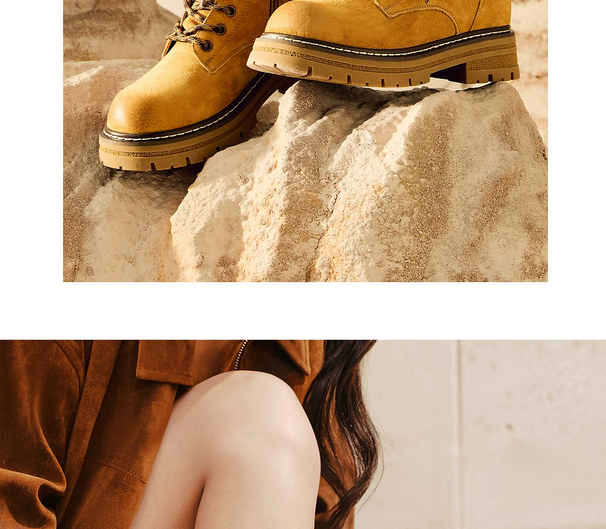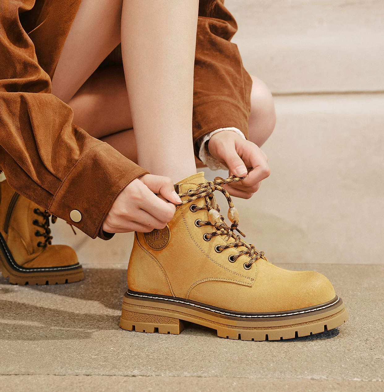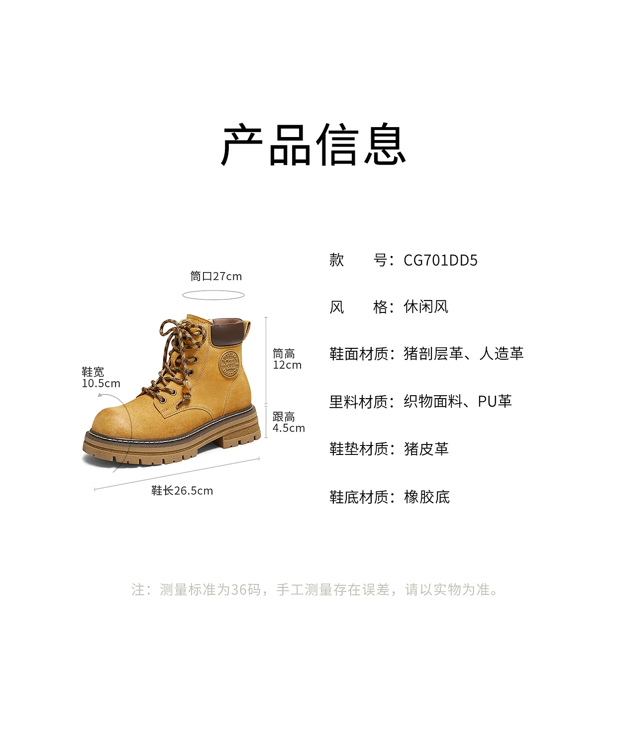 - Giày bốt TATA Western Boots Giày bốt nữ màu vàng cổ điển Da thật Giày đi bộ đường dài đa năng Giày bốt ngắn CG701DD5