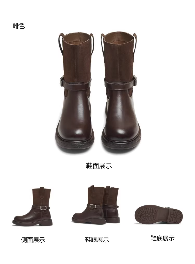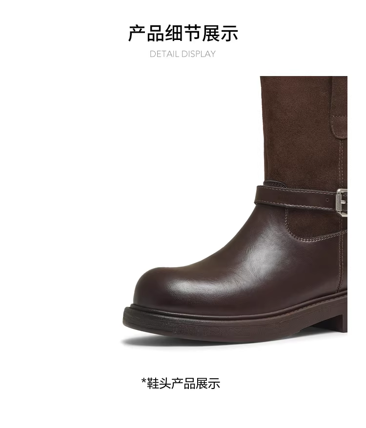 - Giày bốt thời trang đế dày kiểu cổ điển Tianmeiyi, giày bốt thun nữ, giày lười da, bốt ngắn mùa đông 2025 kiểu mới