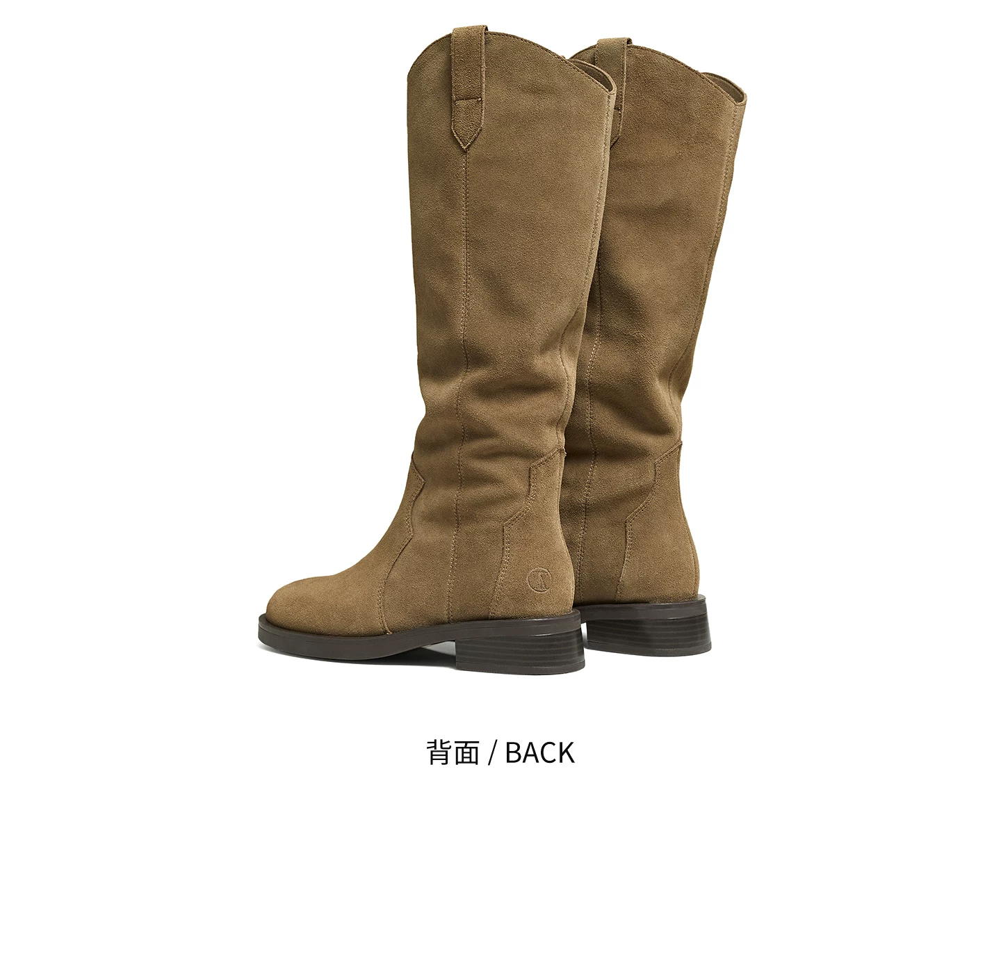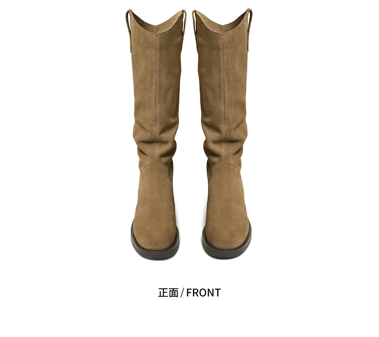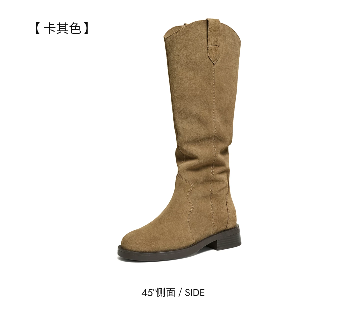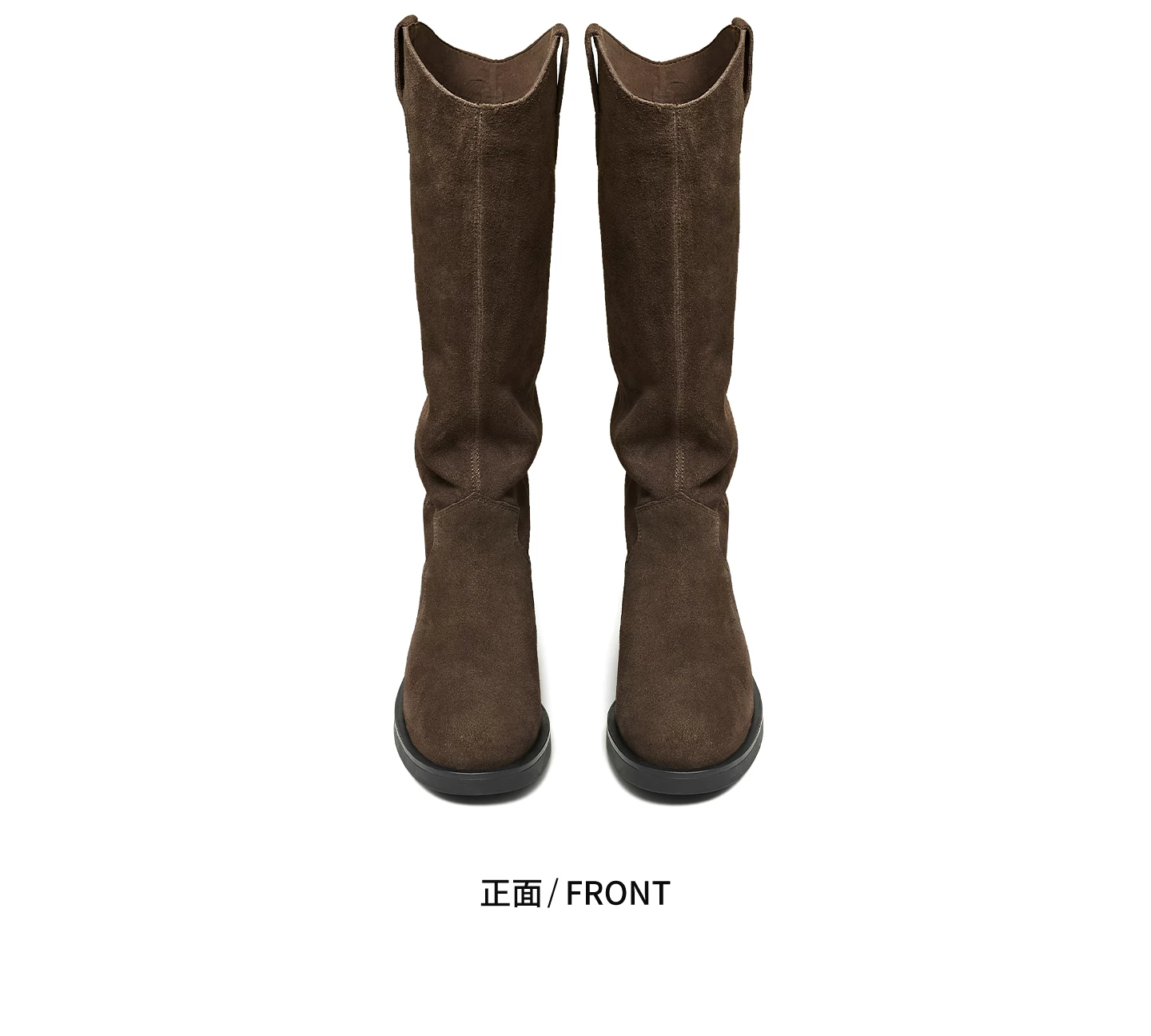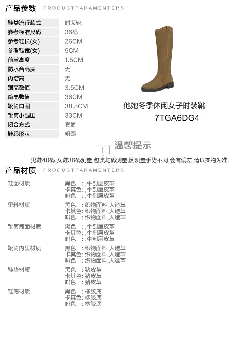 - Giày bốt thời trang TATA Giày bốt dài phong cách Anh quốc Giày bốt nữ màu nâu V-cut da thật Giày bốt phương Tây mùa đông 7TGA6DG4