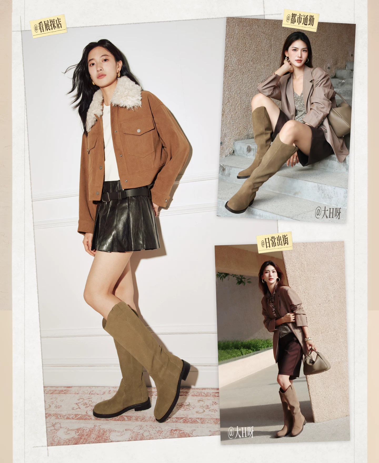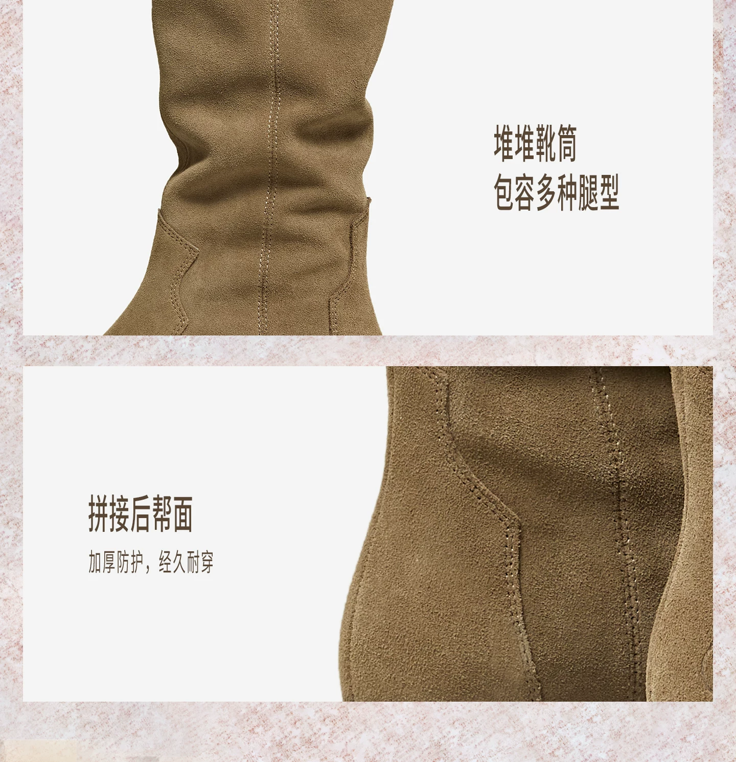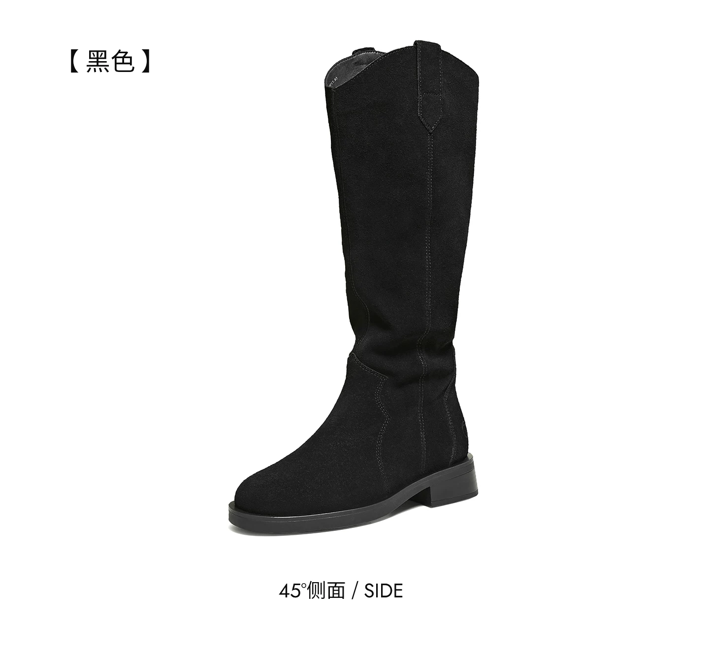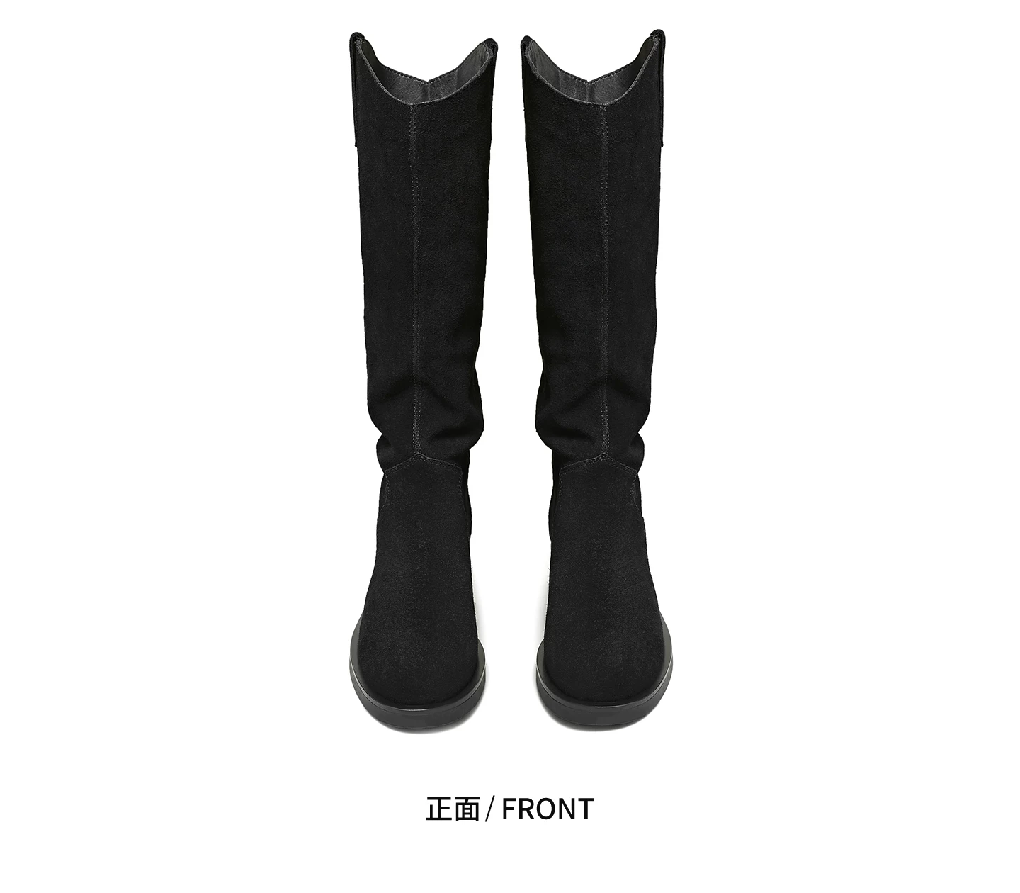 - Giày bốt thời trang TATA Giày bốt dài phong cách Anh quốc Giày bốt nữ màu nâu V-cut da thật Giày bốt phương Tây mùa đông 7TGA6DG4