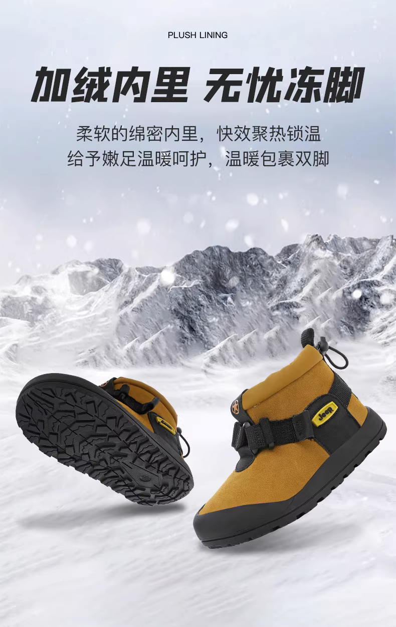 - Giày bốt trẻ em Jeep mùa đông 2025 mới, lót lông cừu giữ ấm, giày cotton da không thấm nước, giày thể thao, ủng cotton cỡ lớn