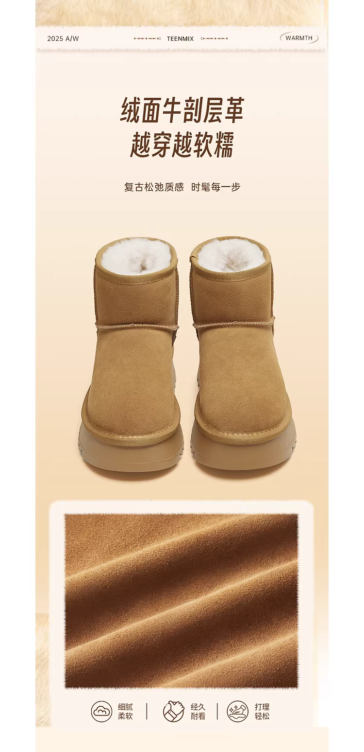- Giày bốt tuyết ấm lót lông cừu đế dày tăng chiều cao Tianmeiyi dành cho nữ, kiểu cổ ngắn retro, mẫu mới mùa đông 2025 KXD37DD5