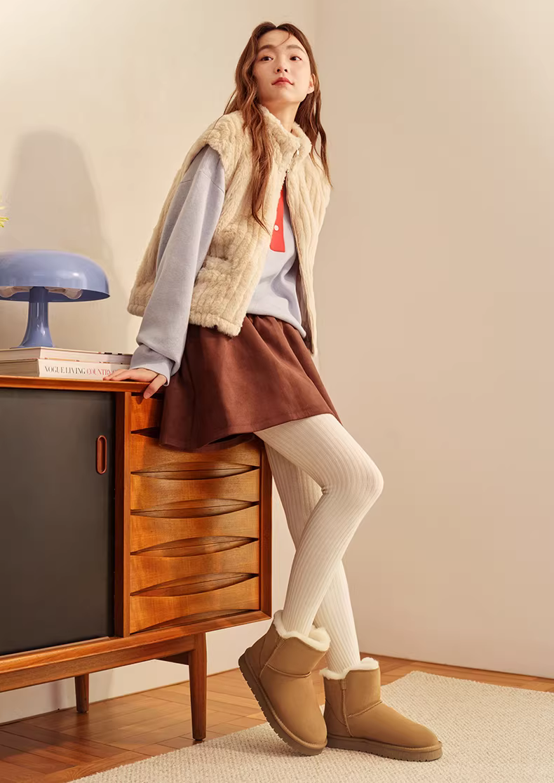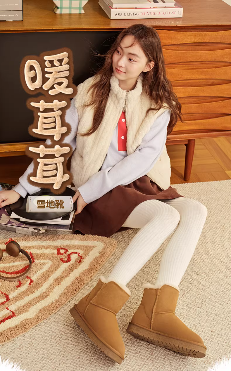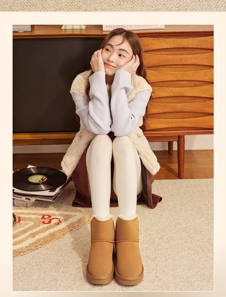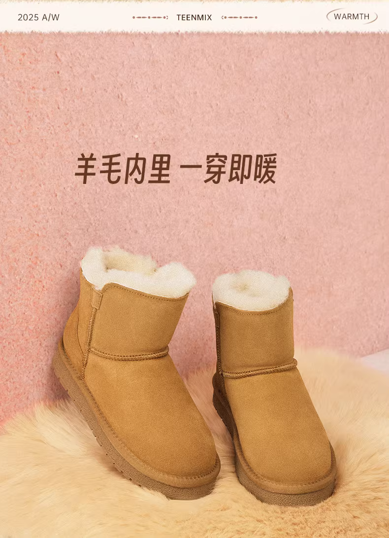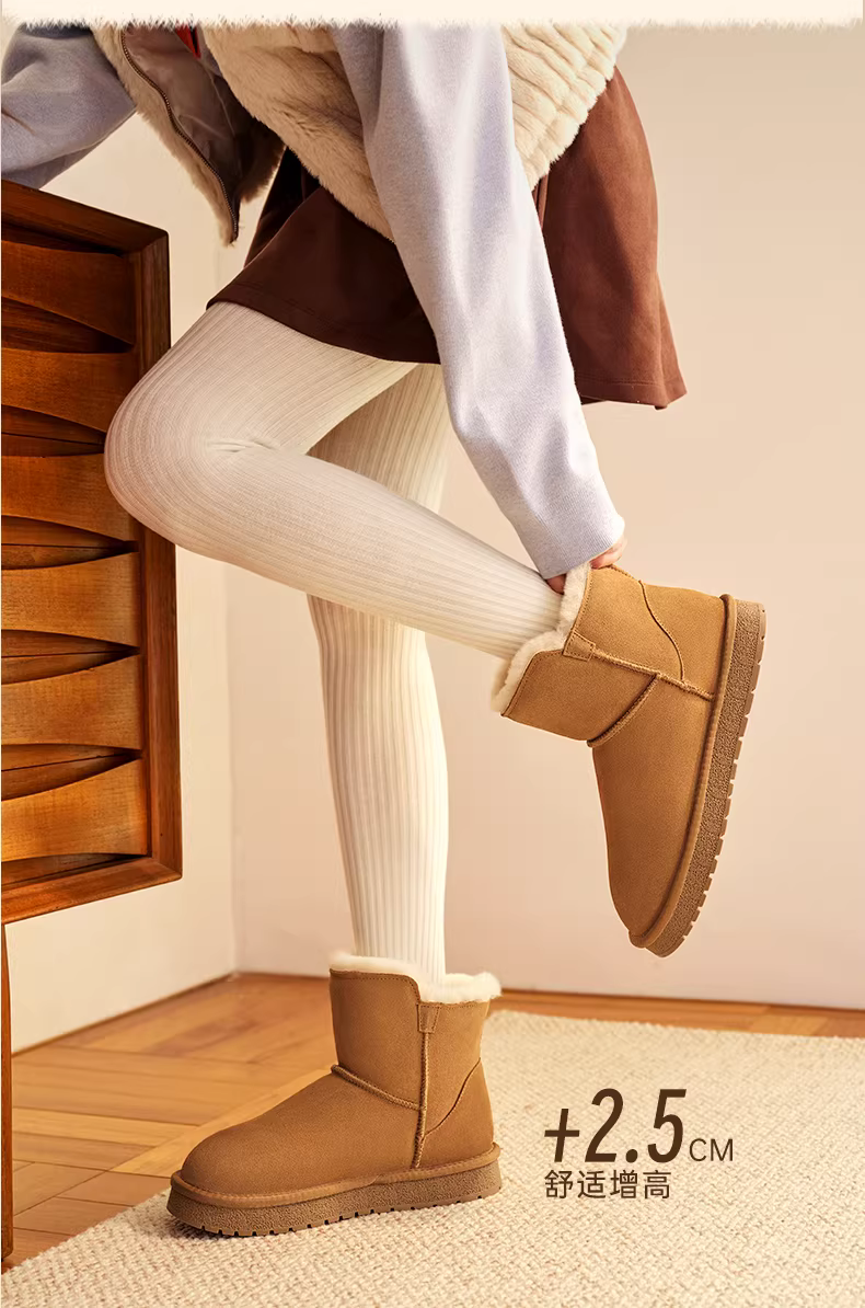 - Giày bốt tuyết ấm lót lông cừu đế dày Tianmeiyi kiểu lười, giày bông nữ, bốt ngắn mùa đông 2025 mẫu mới CNA45DD5
