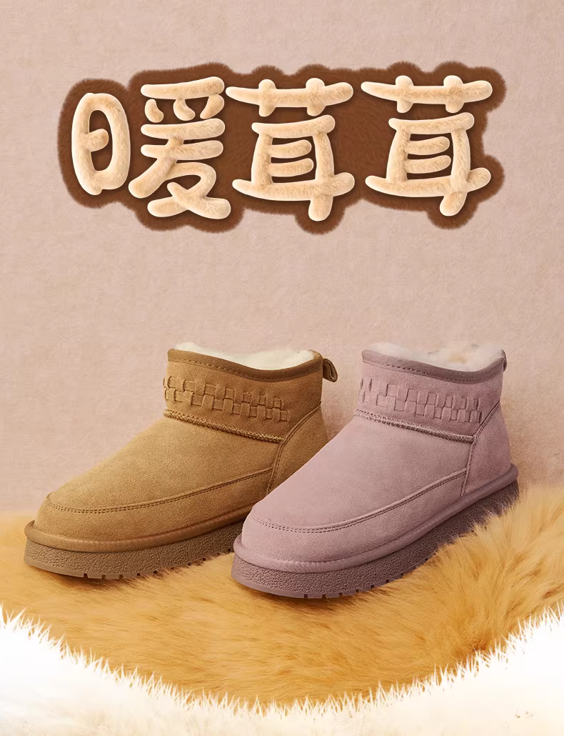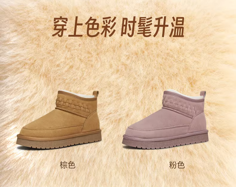 Giày bốt tuyết ấm lót lông cừu kiểu cổ điển Tianmeiyi, đế dày, chất liệu cotton, giày bốt ngắn nữ, kiểu dáng thường ngày, mẫu mới mùa đông 2025, mã CNA46DD5