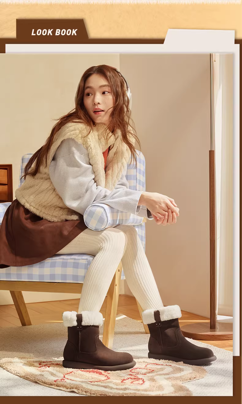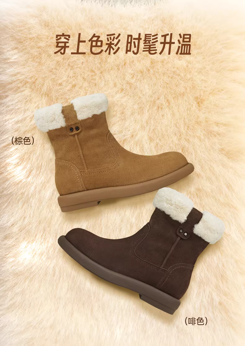 - Giày bốt tuyết ấm lót lông cừu kiểu cổ điển Tianmeiyi, giày bốt ngắn nữ, giày cotton đế dày phong cách thường ngày, mẫu mới mùa đông 2025 BK213DZ5