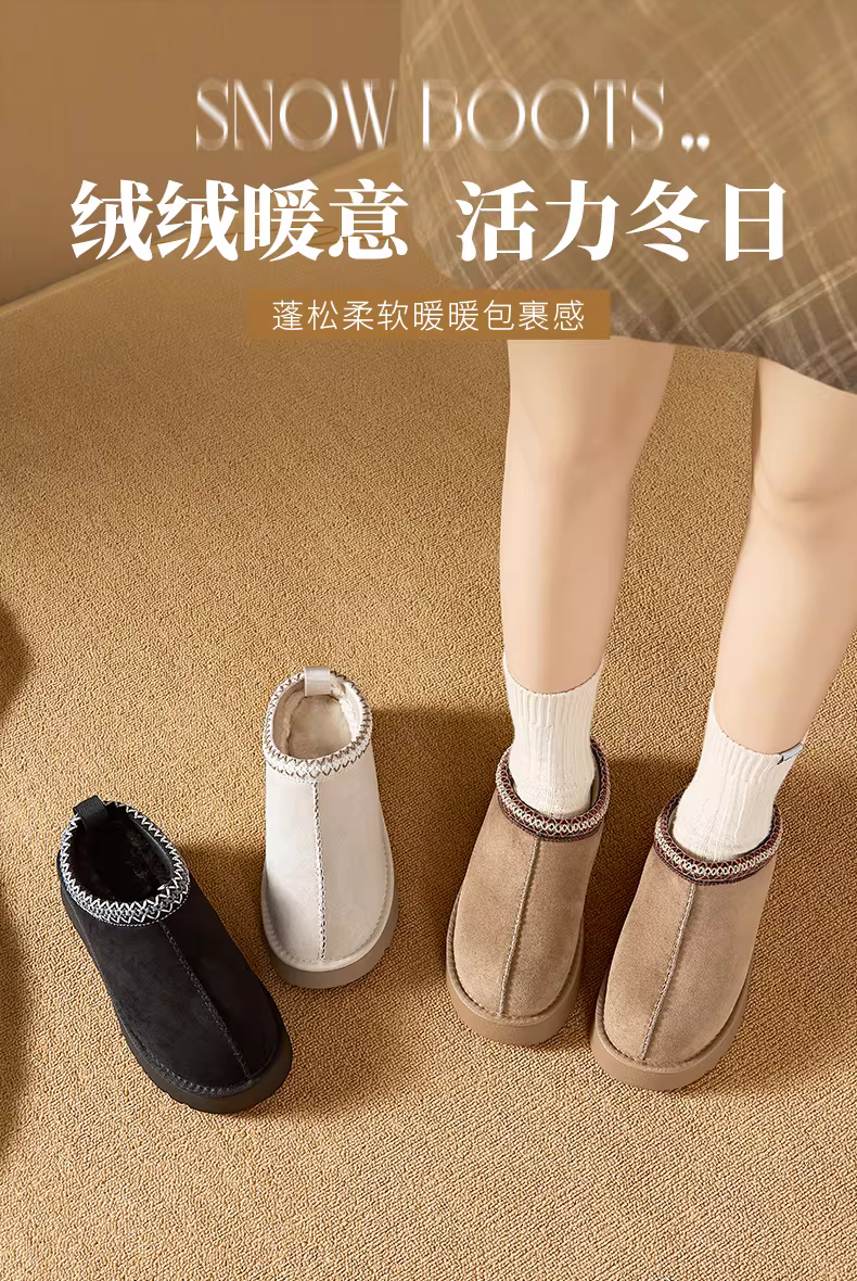 - Giày bốt tuyết đế dày Dadong kiểu nửa dép dành cho nữ, giày mùa đông ngoài trời mới năm 2025, giày lót lông ấm áp bằng vải cotton.
