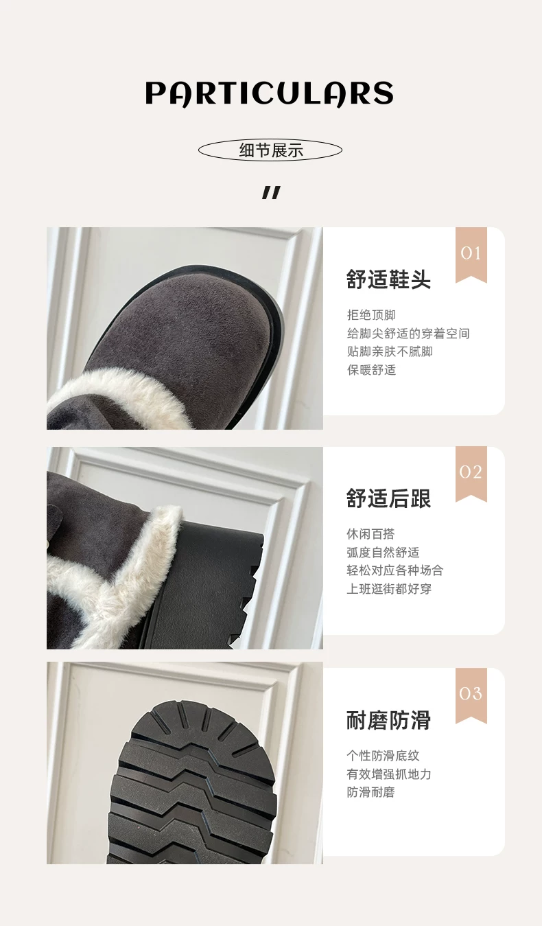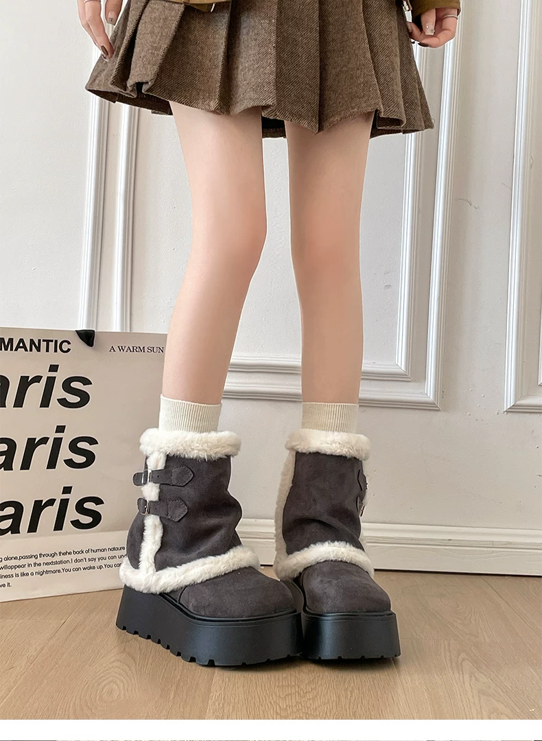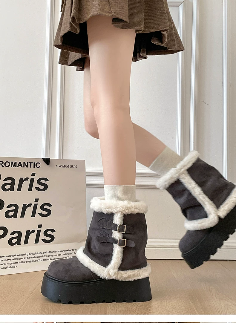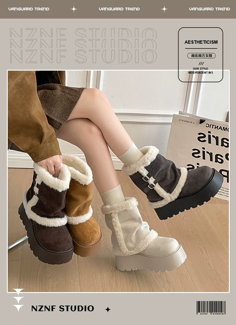 - Giày bốt tuyết đế dày lót lông cừu cổ điển màu nâu dành cho nữ, giày cotton kiểu Birkenstock tăng chiều cao mùa đông mới năm 2025.